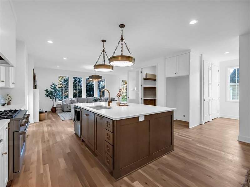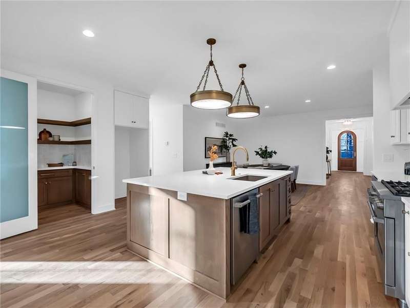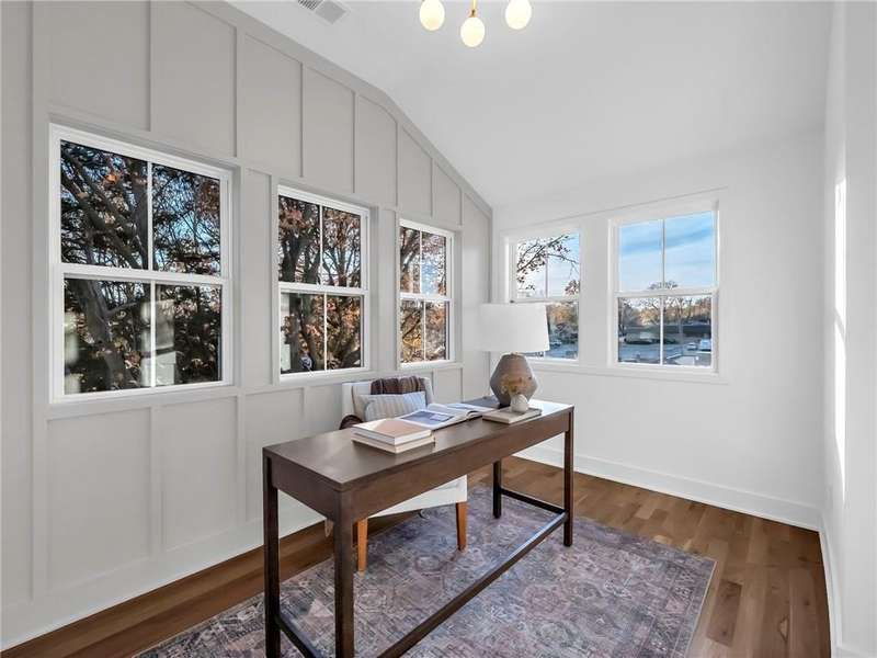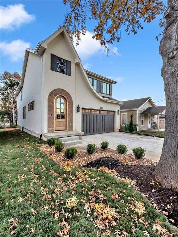 Exceptional value for new construction in highly sought-after northeast Johnson County, within the SM East school district. This home is fully finished and ready to go as of 11/17/25. Just one block from Woodside Health Club, local shops, restaurants, coffee shop, Westwood Park, etc. Less than a mile to the Country Club Plaza, with easy access to Westport, KU Med Center, and more. The eye-catching exterior features an arched front door with a custom layered brick surround, acrylic stucco, black windows, a curved roofline, and shutters. This custom-designed two-story home by Chris George Custom Homes offers hardwood floors throughout the main level, a convenient mudroom/drop zone off the garage, an open kitchen with an oversized island and walk-in pantry and a spacious dining area. The living room includes a fireplace and dry bar—ideal for entertaining. Upstairs, generously sized secondary bedrooms with vaulted ceilings offer ample space. A private home office at the rear of the home can also serve as a fifth non-conforming bedroom, playroom, or nursery. The primary suite features vaulted ceilings, a spacious 260 sq. ft. bedroom and a massive 166 sq. ft. walk-in closet. The laundry room connects directly to the primary closet and hallway for optimal convenience. The finished lower level includes a fourth bedroom, full bathroom, and secondary living space, with plumbing ready for a future wet bar. Notable Features include 36" gas range with custom cabinet hood, ceiling-height cabinetry with soft-close drawers, solid core interior doors, 8' tall doors on the main level, custom trim details, inset hardwood floor vents, LVP flooring in the lower level, battery backup sump pump, sprinkler system and more.