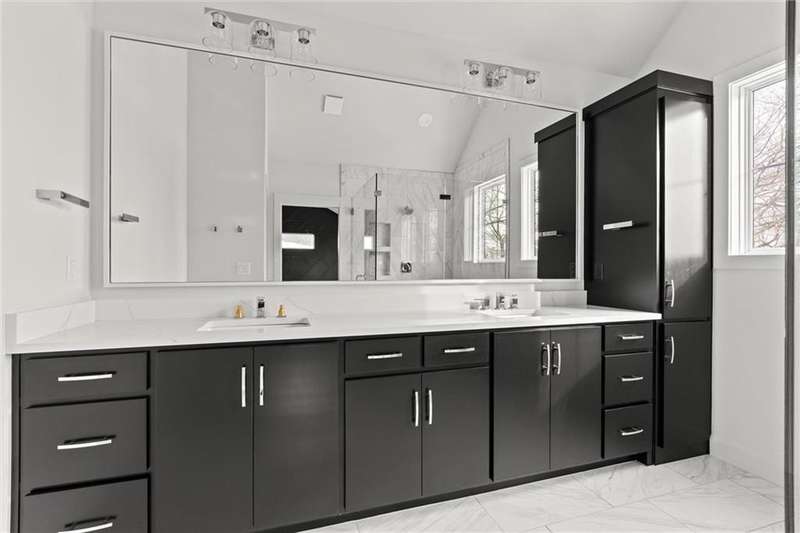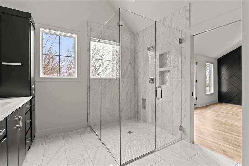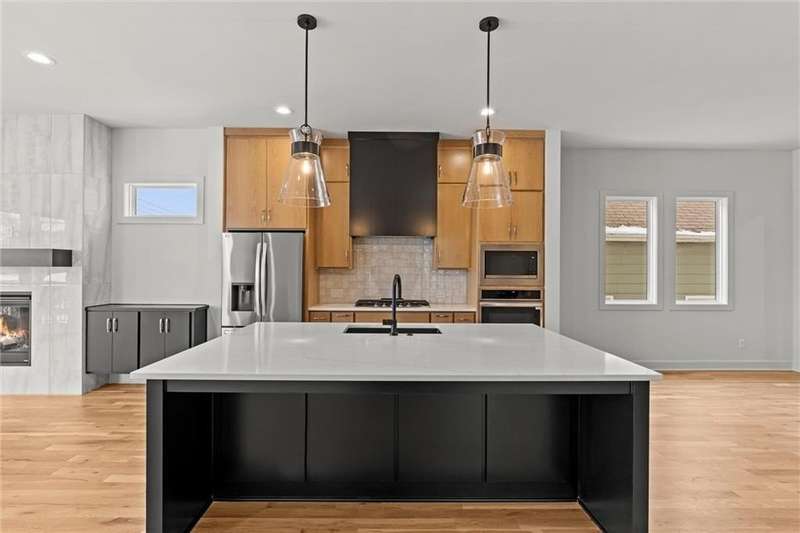 Exceptional value for new construction in highly sought-after northeast Johnson County, within the SM East school district. Just one block from Woodside Health Club, local shops, restaurants, coffee shop, Westwood Park, etc. Less than a mile to the Country Club Plaza, with easy access to Westport, KU Med Center, and more. Estimated completion: Mid October 2025. The eye-catching exterior features an arched front door with a custom layered brick surround, acrylic stucco, black windows, a curved roofline, and shutters. This custom-designed two-story home by Chris George Custom Homes offers hardwood floors throughout the main level, a convenient mudroom/drop zone off the garage, an open kitchen with an oversized island and walk-in pantry and a spacious dining area. The living room includes a fireplace and dry bar—ideal for entertaining. Upstairs, generously sized secondary bedrooms with vaulted ceilings offer ample space. A private home office at the rear of the home can also serve as a fifth non-conforming bedroom, playroom, or nursery. The primary suite features vaulted ceilings, a spacious 260 sq. ft. bedroom and an oversized 166 sq. ft. walk-in closet. The laundry room connects directly to the primary closet and hallway for optimal convenience. The finished lower level includes a fourth bedroom, full bathroom, and secondary living space, with plumbing ready for a future wet bar. Notable Features include 36" gas range with custom cabinet hood, ceiling-height cabinetry with soft-close drawers, solid core interior doors, 8' tall doors on the main level, custom trim details, inset hardwood floor vents, LVP flooring in the lower level, battery backup sump pump, sprinkler system and more. Note: Listing photos are of a similar home built in Westwood last year and are for reference only. Plans, specifications, and finish details for this home are available upon request.