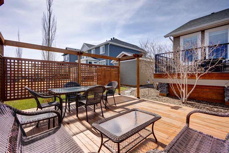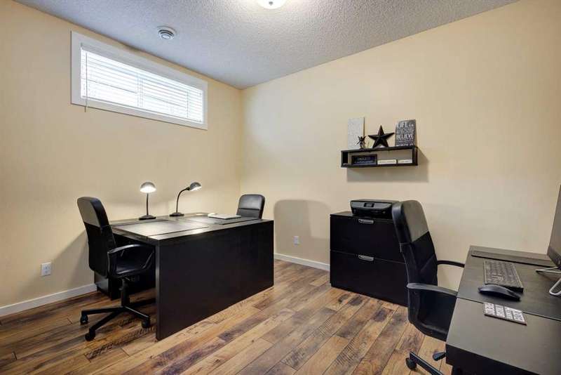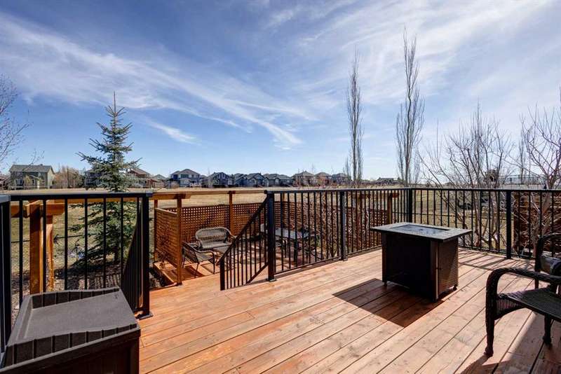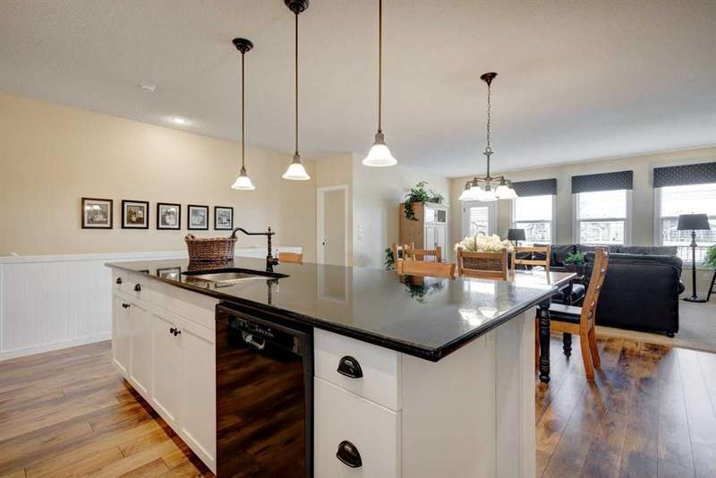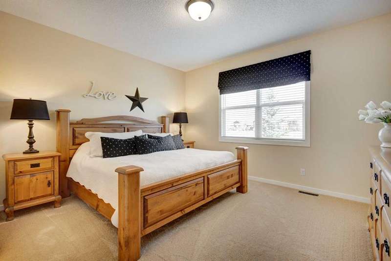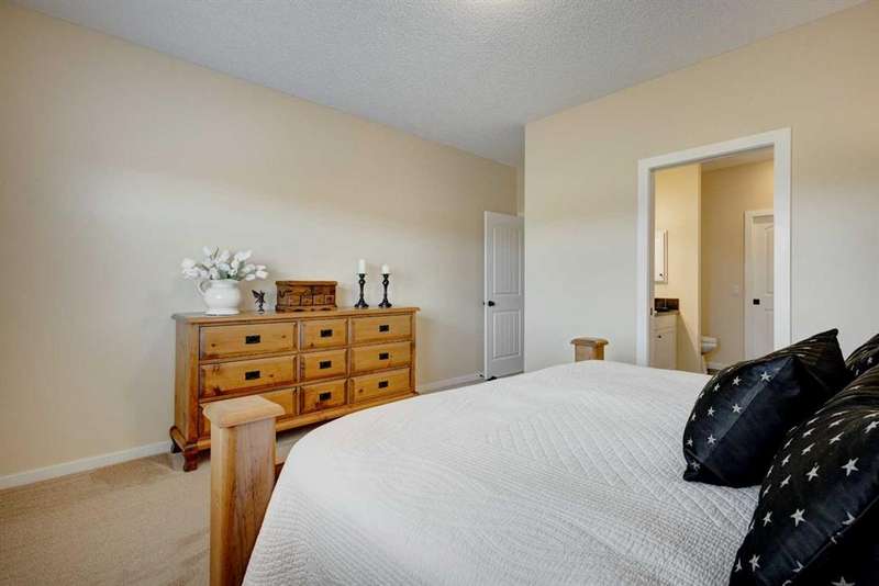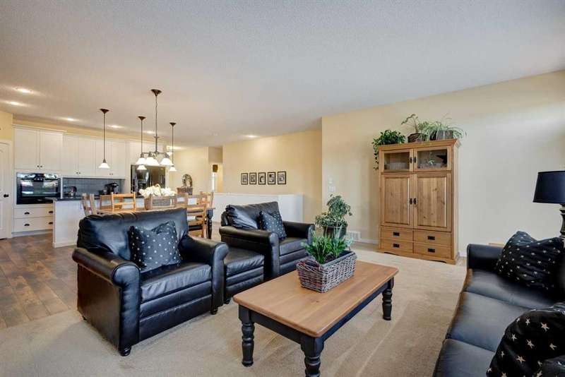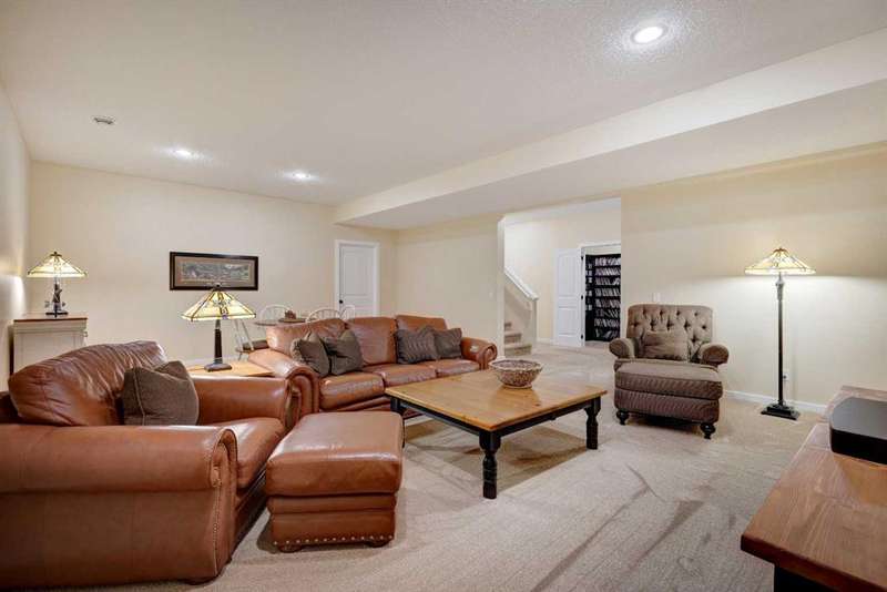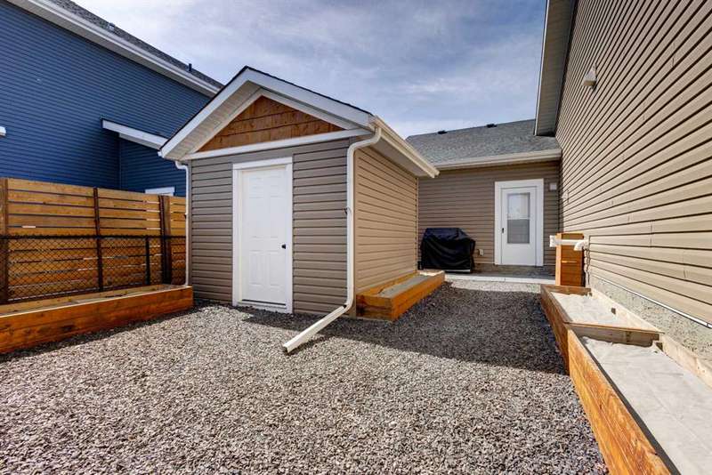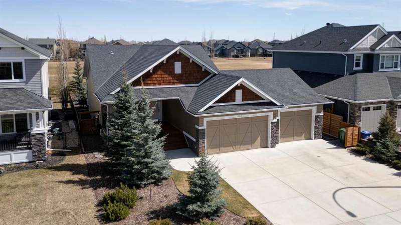 Back on the market due to financing. Welcome to a stunning executive bungalow that blends timeless design with modern upgrades, all set against the picturesque backdrop of the Boulder Creek Golf Course. Built by Stepper Homes, this beautifully maintained Wellington model offers over 3,000 square feet of luxurious living space, including a fully developed basement and a rare triple front attached garage. From the moment you arrive, the curb appeal will capture your attention—with an expansive covered front porch, flawless landscaping, and a quiet crescent location, this home radiates pride of ownership. Step inside to discover a spacious and inviting layout where every detail has been meticulously cared for by the original owners. At the heart of the home is a gourmet kitchen featuring a wealth of crisp white cabinetry, sleek granite countertops, upgraded black appliances, and a corner pantry—perfectly designed for hosting family gatherings or quiet evenings in. The open-concept main floor also offers a generous dining space and a cozy living room with a gas fireplace, where expansive windows frame breathtaking views of the first fairway—and even the northern lights on clear nights. Two bedrooms are located on this level, including a spacious primary suite at the rear of the home, complete with a spa-inspired ensuite featuring dual sinks, a double-wide shower, and ample vanity storage. A second full bathroom is located near the front bedroom, making it ideal for guests. The oversized, tiled mudroom off the garage includes a built-in bench, storage cubbies, and the laundry area—making everyday organization a breeze. Luxury vinyl plank flooring & 9' ceilings add elegance throughout the main level. Downstairs, the lower level expands your living space with a massive rumpus room, a dedicated tech or reading nook, two additional large bedrooms, and another full bathroom. Whether you're entertaining, working from home, or simply relaxing, this lower level adapts to your lifestyle with ease. Outside, the backyard is just as impressive as the interior. Backing onto the golf course, it features mature trees and shrubs, two 10x10 storage sheds, a private lower patio with privacy screens, and a large upper deck—ideal for relaxing or entertaining in total serenity. Additional highlights include a new hot water tank (2024), newer dishwasher, cooktop, washer and dryer (2021), and a workshop space in the third bay of the garage—all permitted and inspected. The furnace has been regularly serviced every two years. This is not just a home—it’s a lifestyle, and it’s completely turnkey. Don't miss your chance to own one of Boulder Creek's most impeccably kept residences.