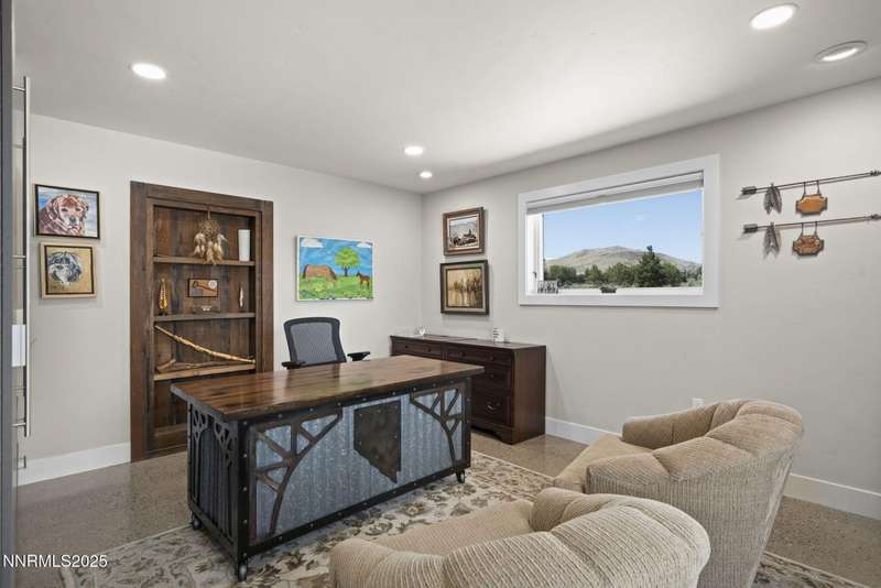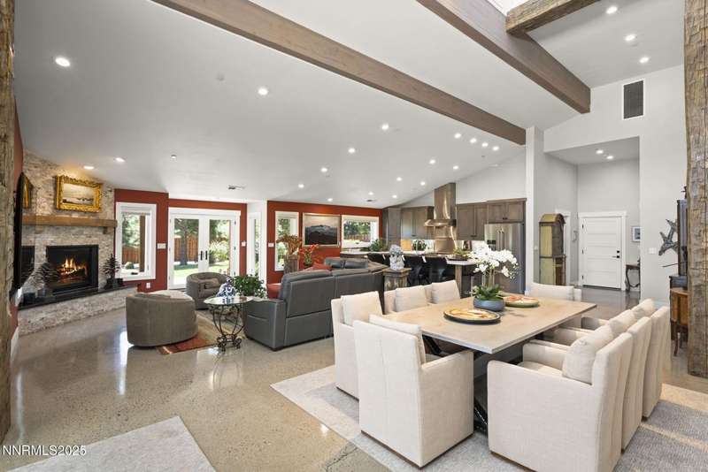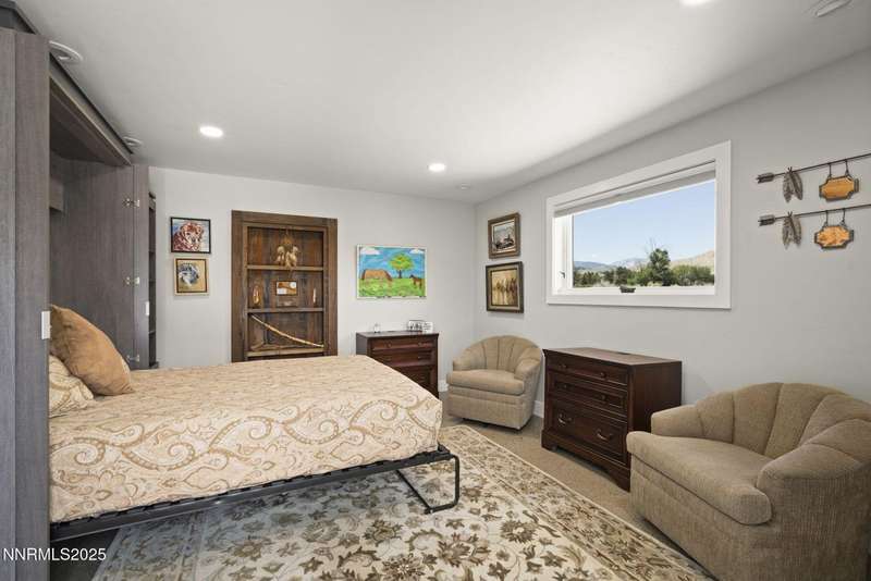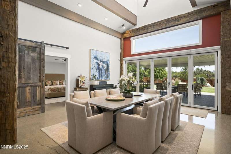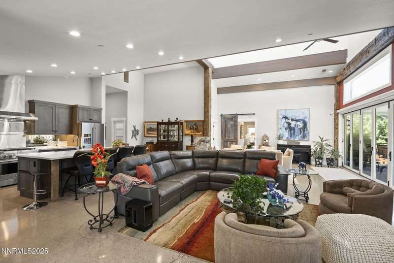 An extraordinary estate gracing 3.1 gated, level acres in the prestigious westside of Carson City. This property offers privacy, freedom, and flexibility with stunning Sierra and valley views and no HOA. This one-of-a-kind 6,000 square foot barn conversion seamlessly blends western character with modern luxury in an artfully reimagined space. Although originally constructed in 1946, this residence underwent a complete transformation, stripped to the studs and masterfully reimagined from a former barn into a stunning custom home. Every element was thoughtfully upgraded, including all-new plumbing, electrical, HVAC, windows, and high-end finishes throughout. The result is a seamless blend of timeless character and modern luxury. Bathed in natural light, the open-concept great room creates a sense of volume and ease, with soaring ceilings, exposed beams, and a seamless flow perfect for relaxed living or refined entertaining. Impeccable finishes, bespoke details, and designer touches elevate every inch from the gourmet kitchen to the expansive custom wall-to-wall glass door framing the back patio and landscaped grounds. The private primary suite is a sanctuary, featuring a spacious walk-in closet, spa-inspired bath, and direct access to the serene backyard. An extraordinary blend of art and architecture, this home is as much a gallery as it is a home. Set amidst meticulously maintained grounds, the property features thoughtfully curated landscaping that doubles as a living canvas, where sculptural elements and botanical design create moments of beauty at every turn. Pathways wind through lush greenery and hand-selected art installations, offering a tranquil and inspiring retreat. Every outdoor space has been designed with intention, framing the home with a sense of serenity and timeless sophistication. Perfect for the collector, the gardener, or anyone seeking elevated, artful living.Ideal for RV, car, or horse enthusiasts, and those seeking peace, space, and Nevada's tax advantages, the property includes a 6-car garage plus dedicated motorcoach and RV parking with hookups. A private gated driveway leads to the beautifully landscaped grounds with walking paths, 50 mature trees, and wide-open areas perfect for dogs and outdoor enjoyment.Just minutes from shopping, golf, top-rated medical facilities, and Lake Tahoe, this rare opportunity offers the ultimate in quiet, elevated living-where your lifestyle sets the rules.