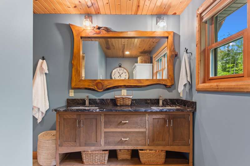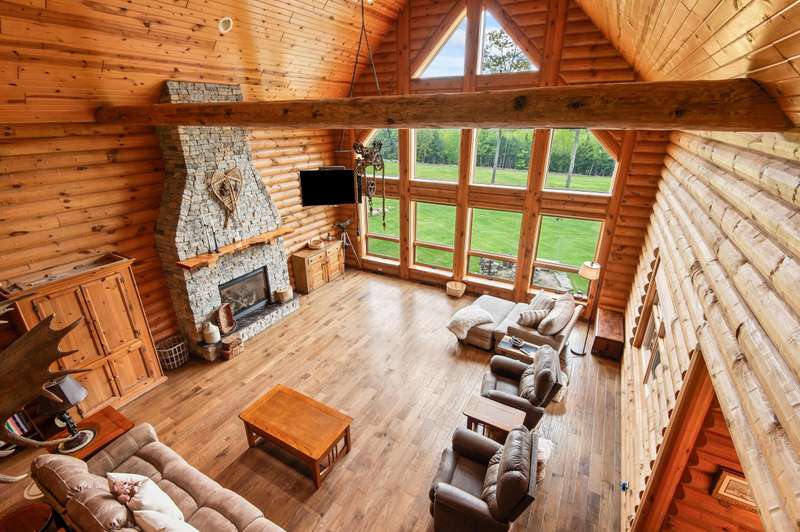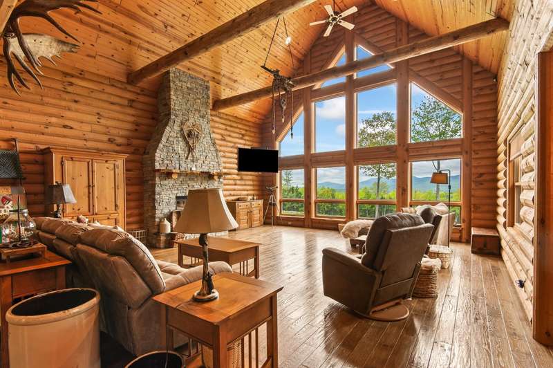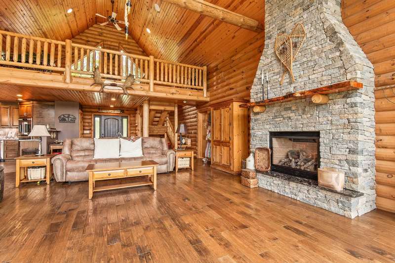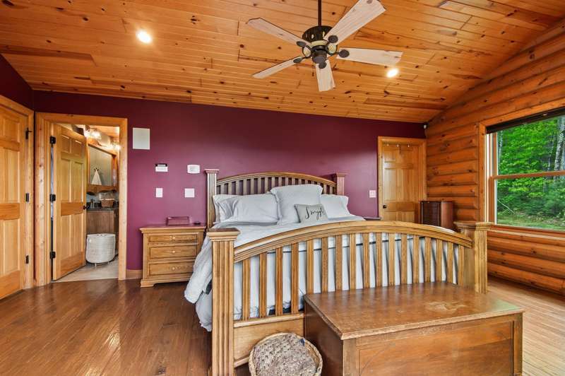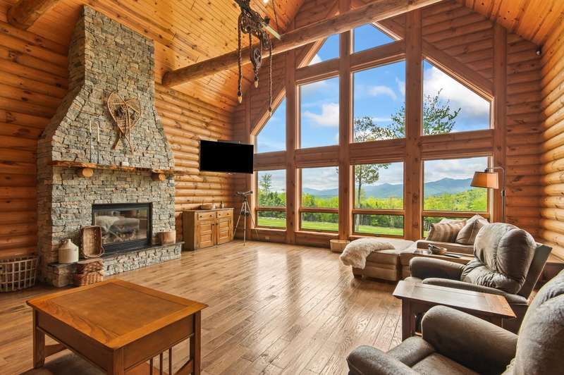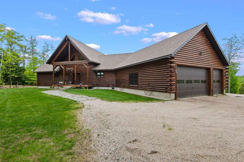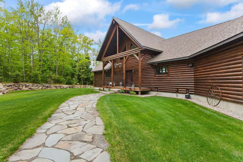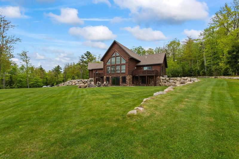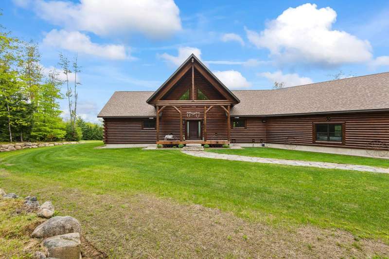 Escape to your own private retreat in Madison, NH! This stunning 3-bedroom, 2.5-bath contemporary log home sits on 5.6 acres of open fields with panoramic mountain views and year-round beauty. Offering the perfect blend of rustic charm and modern luxury, this property provides both privacy and convenience, located just minutes from North Conway Village, shopping, dining, and ski areas. Inside, you’ll find custom woodwork throughout, a magnificent covered porch entry, and a gourmet chef’s kitchen with a huge center island, spacious walk-in pantry, and first-floor laundry. The first-floor primary suite is a true retreat, featuring a spa-like bath with a massive tile shower, walk-in closet, and a private deck overlooking Mt. Chocorua. The great room is designed for entertaining, with soaring ceilings, a dramatic stone hearth and gas fireplace, and a wall of windows framing the mountain scenery. Upstairs offers additional bedrooms and flexible space for family or guests. Modern amenities include central A/C, radiant heat, standby generator, oversized garage, and storage for all your toys. Whether you’re seeking a year-round residence or a vacation getaway in the White Mountains, this home has it all.