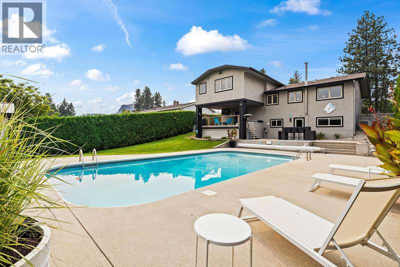 Welcome to 2245 Somerset Road, a beautifully updated 5-bedroom plus den, 4-bathroom split-level private residence in the highly sought-after West Kelowna Estates neighbourhood. Offering over 2,500 sq.ft. of thoughtfully designed living space on a well maintained 0.28-acre lot, this home balances modern finishes with everyday functionality, and an outdoor pool for our Okanagan summers! The heart of the home is a chef’s kitchen, complete with an oversized professional-grade refrigerator, expansive quartz island, custom cabinetry, and a dedicated beverage station with wine cooler, ideal for both entertaining and family living. The open concept living areas flow seamlessly to a recreation room that opens onto a deck with a hot tub overlooking the pool and private backyard oasis. The primary suite features a freshly updated ensuite, while ample sized bedrooms provide space for family and guests. Two versatile rooms on the lower level add flexibility for a home office, gym, or guest room. The walk-out lower level connects directly to the patio and pool area, creating an effortless indoor-outdoor lifestyle. With a recent renovation, resort inspired amenities (like heated bathroom flooring), and a prime exceptionally private location close to schools, shopping, and downtown Kelowna, this home offers the ultimate Okanagan living experience. (id:7434)