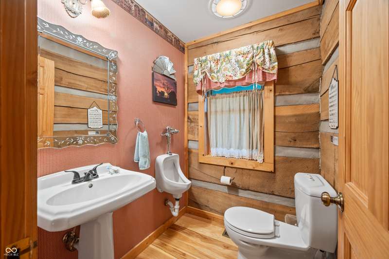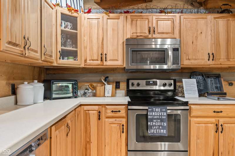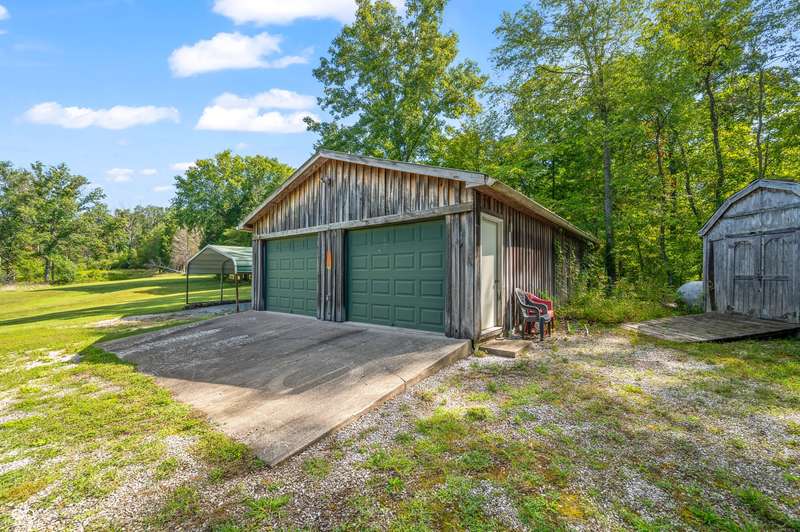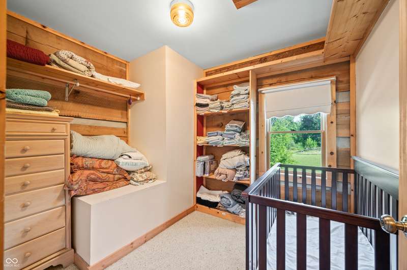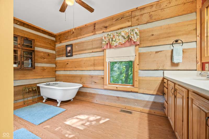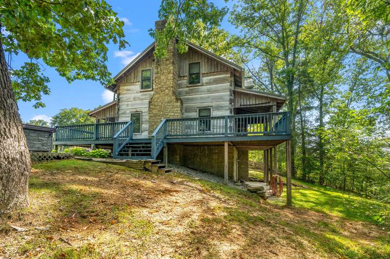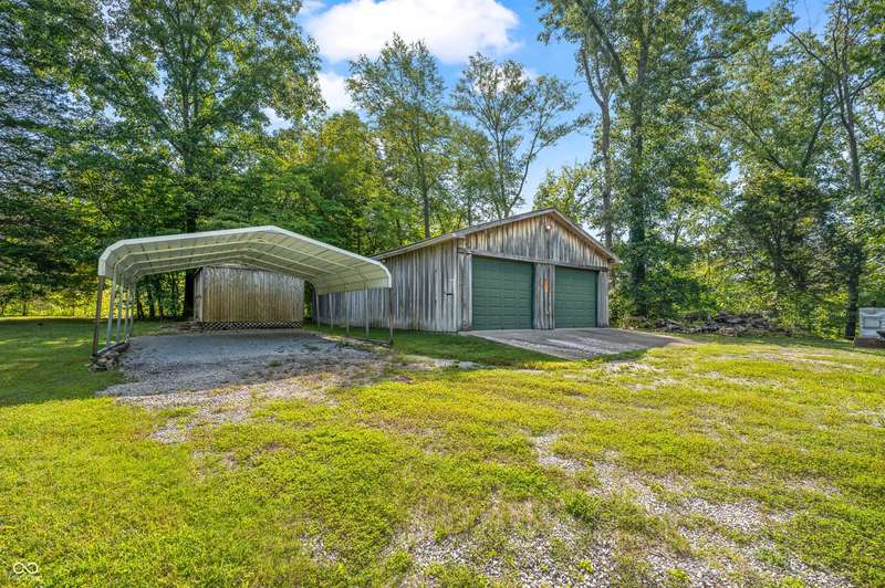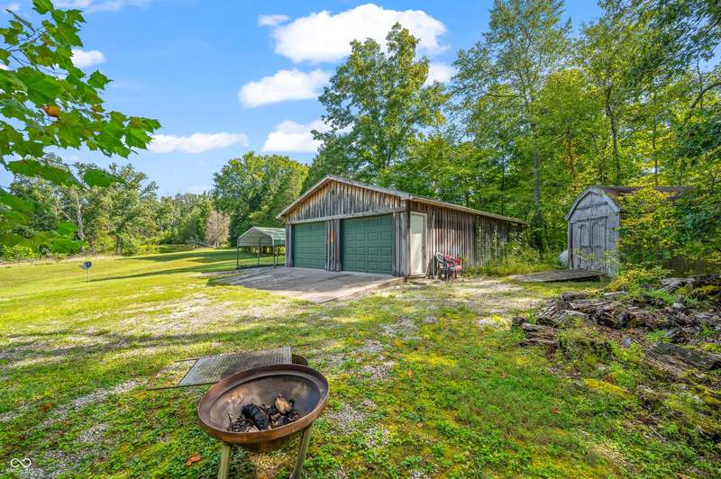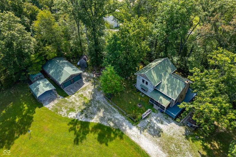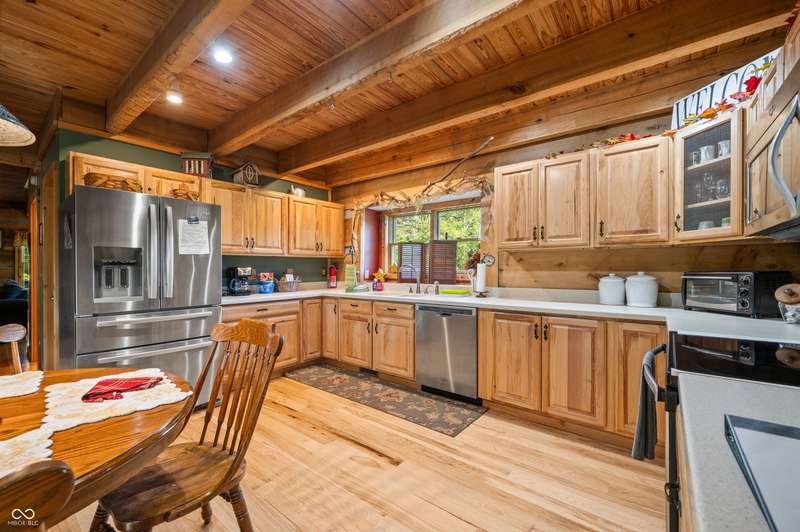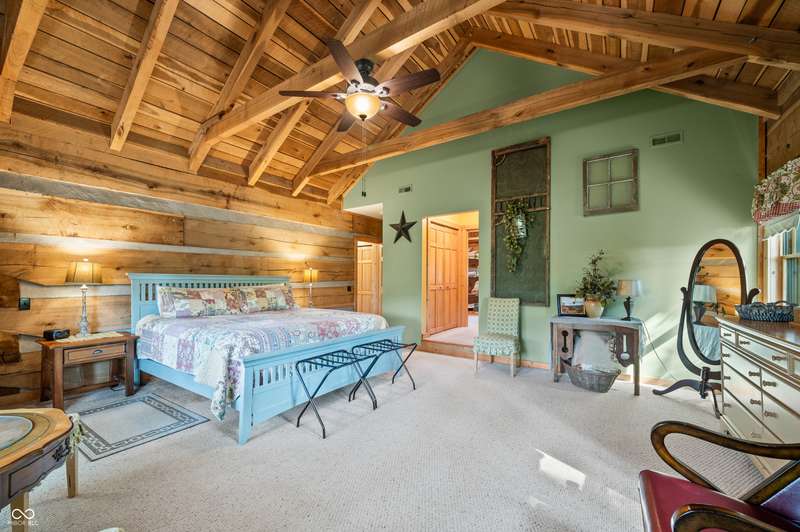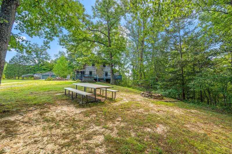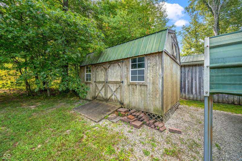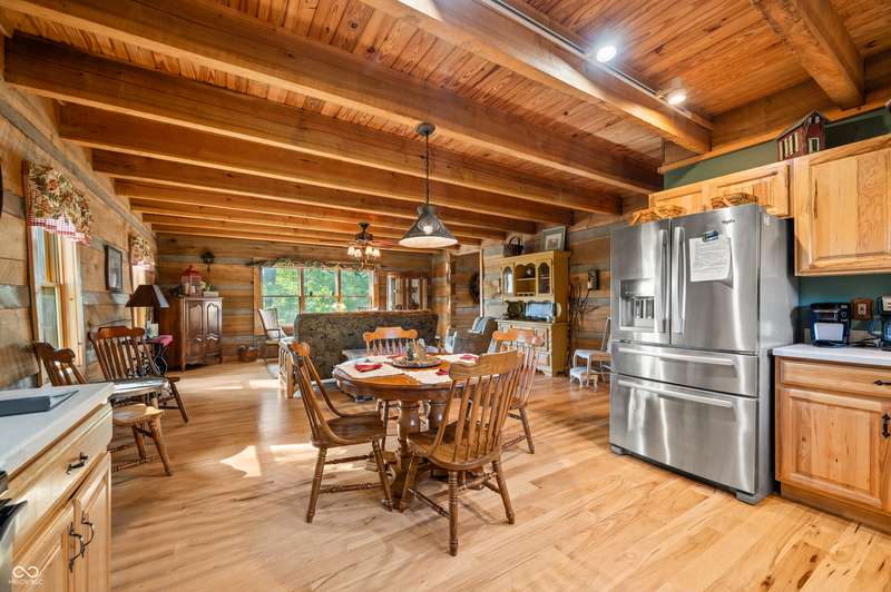Stonehead Ridge Log Cabin is a 4-guest tourist home located in the rolling hills of southern Brown County. Very private and buffered by woods. Open pasture type yard allows for outdoor pursuits, games and hobbies. Two bedrooms and two and a half baths. The wood-burning stove and Brown county stone hearth provide a calming focal point in the cozy living room. The spacious primary bedroom suite with a cathedral wood ceiling includes a full bath with shower and soaker tub along with a flex space for use as a walk in closet, nursery or office. The second bedroom has an en suite full bathroom with a tub and shower. Well appointed kitchen with beautiful cabinets, solid countertops, stainless steel appliances and pantry. Relax on the swing on the screened porch. The expansive deck with a hot tub offers spots for taking in the beauty of the natural surroundings. This cabin was constructed from native 16" poplar, dovetail-notched logs and has a metal roof. An unfinished, full walk-out basement provides plenty of opportunity for additional living space. There is a four car garage and two bay carport for sheltering your vehicles and toys from the elements. There are two sheds for additional storage needs. Stroll through the woods or hike the trails located across the road at the Stone Head Nature Preserve. Very convenient to the historic town of Story, Brown County State Park Horseman's Camp and the village of Nashville. Live here full time or as an investment property. The choice is yours!