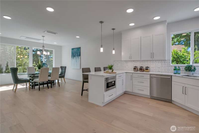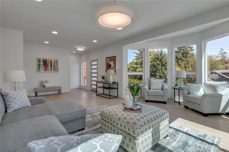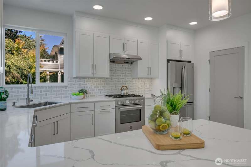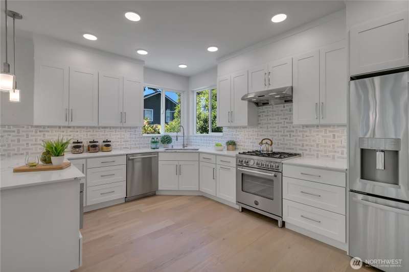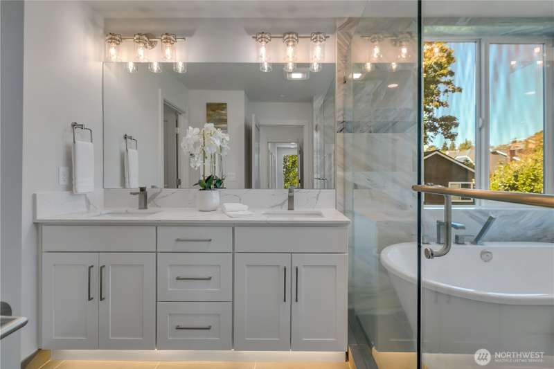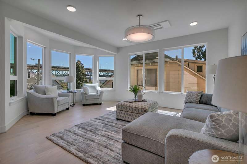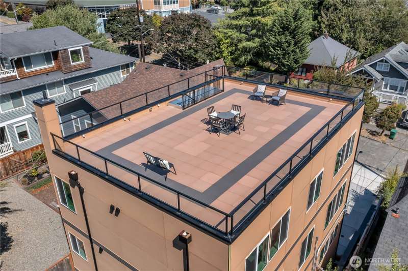 Luxury 2023-built 2-story Penthouse offering 2,620 sf, 4Br/3.25Bth, & massive rooftop deck with sweeping Lake Union, Ship Canal & Cascade views. Light-filled interiors feature high ceilings, hardwood floors, & chef’s kitchen with Bertazzoni gas range, quartz counters, eating bar & walk-in pantry. Main flr guest bedroom & lavish 3/4 bath. Primary suite boasts spa-like 6-piece bath w/heated flrs, dual walk-in closets & serene vistas. Bow window design outlining views in living room & 2nd bedrm w/double closets. Includes EV charger & tandem 2-car prkg. Prime Wallingford location near Gas Works Pk, Burke Gilman Trail, Fremont, Green Lake, JSIS, Children's, downtown, SLU, I-5 & Hwy 99. Close to dining, shops, & transit.82 Walkscore/81 Bikescore!