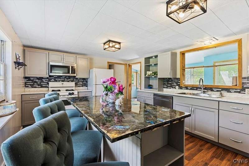 NEW PRICE! $90,000! Seller says bring me an offer! Live, Work and Play in the Adirondacks! Welcome to 6166 NYS Route 28 in Indian Lake, (Circa 1887), featuring some historical charm, a large living room with gas fireplace, dining room, newly renovated and updated kitchen with island, three season enclosed porch with hot tub, 1st floor laundry room, 4 bedrooms, renovated full bath & addtional 1/2 bath, large 2 car garage with storage, (believed to be the town blacksmith shop back in the day), updated heating system, hot water tank, roof, & some new windows, large lot with grass field, close to snowmobile trail access, walking distance to Adirondack Lake, and fiber optic internet. Some additional work still needs to be done, mainly painting, trimming, and possibly some flooring. Roll up your sleeves and bring your imagination to make this your year round Adirondack Getaway! Schedule your showing today!