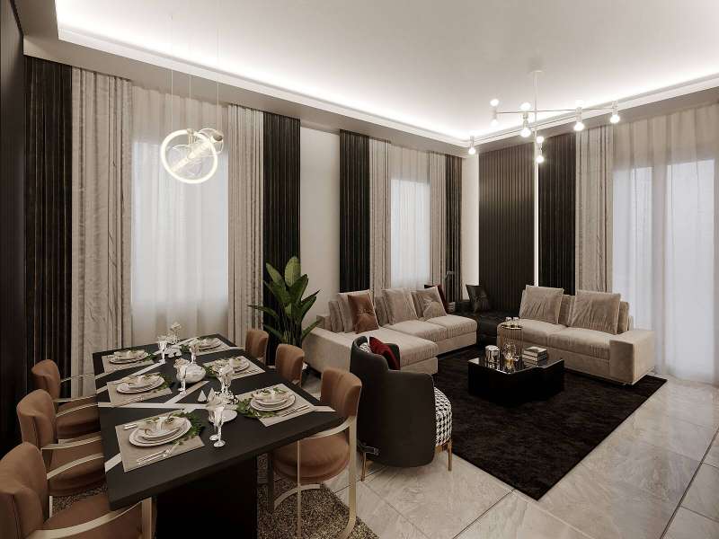The properties for sale in Antalya Gazipasa are situated in a complex within a natural environment. The complex is located 350 m from the busiest seafront street in the region. Also, it is 1.2 km from the state hospital, 1.3 km from Gazipasa Airport and the closest beach, and 1.4 km from the intercity bus terminal.