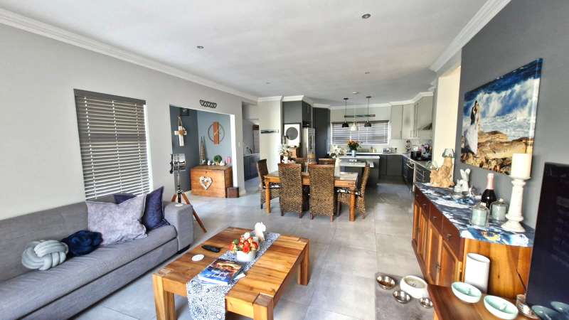 Exclusive Mandate Step into a refined lifestyle with this beautifully crafted 3-bedroom, 2-bathroom home, situated in a secure and vibrant lifestyle estate. This residence is the perfect synergy of design, space, and contemporary luxury—ideal for families, professionals, or savvy investors. Ideally positioned just a short stroll from the estate’s exclusive wellness amenities—including a fully equipped private gym and a resort-style swimming pool The main bedroom offers a serene retreat, complete with a stylish en-suite bathroom, custom American shutters, and a remote-controlled ultra-quiet ceiling fan for ultimate comfort. Two additional spacious bedrooms are served by a beautifully appointed full bathroom, ensuring both function and elegance. At the heart of the home lies a modern open-plan kitchen, finished with sleek cabinetry and high-end fittings. The addition of a separate scullery enhances functionality and keeps the living space clutter-free—ideal for effortless entertaining and everyday convenience. The adjoining open-plan lounge and dining area flows seamlessly to the outdoors, capturing natural light and creating a vibrant, welcoming atmosphere. Entertain with ease in the fully walled private garden, complete with a built-in braai area—perfect for relaxed weekends or intimate evening gatherings under the stars. Further elevating this home is the extra-size double garage with direct home access, offering generous space for vehicles, storage, laundry or a workshop setup. Located within a secure, access-controlled estate, this home promises peace of mind and a premium lifestyle with a strong sense of community and well-maintained surroundings.