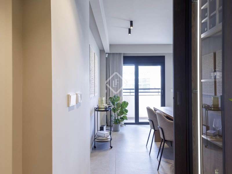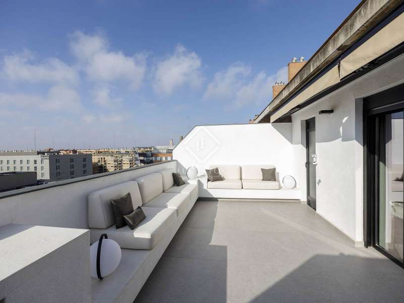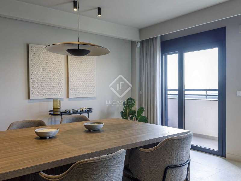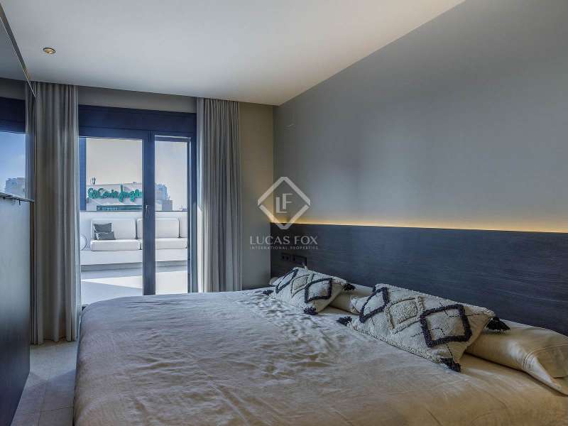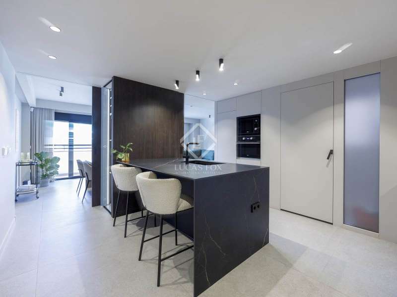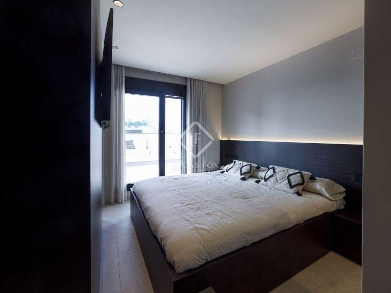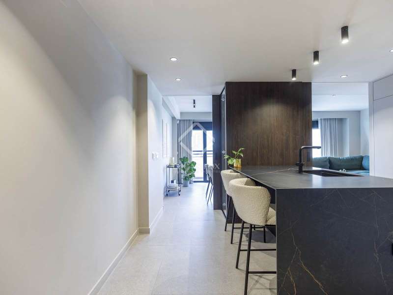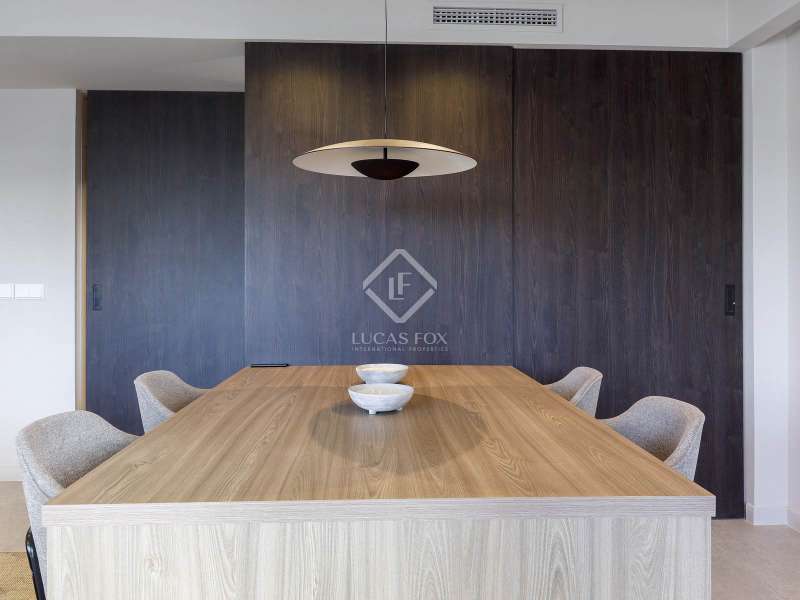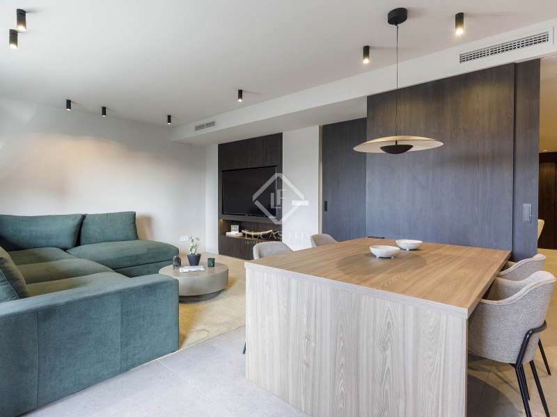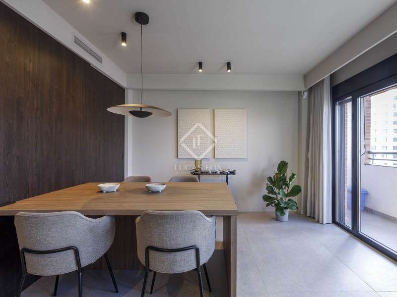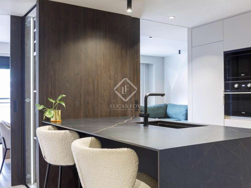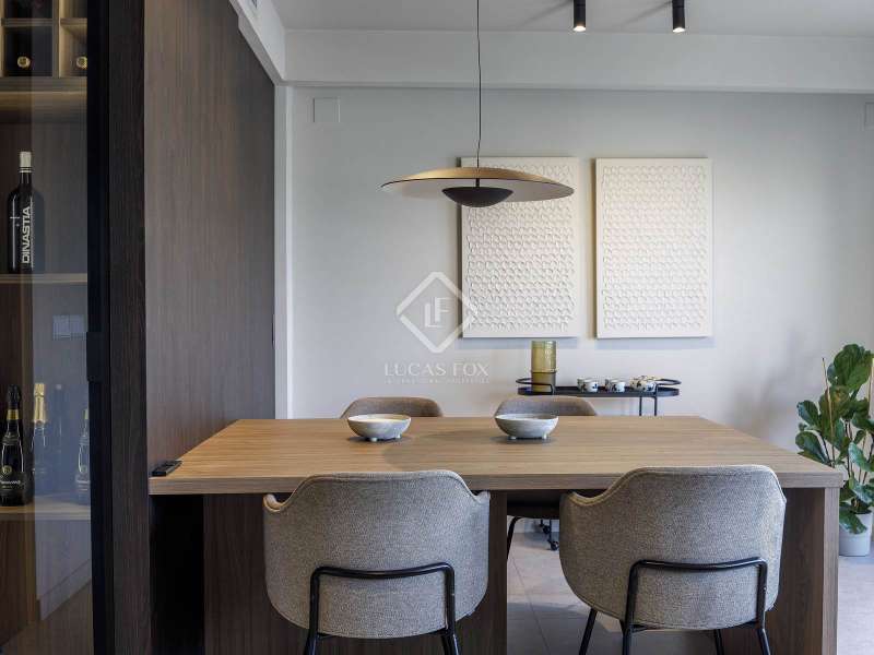 Lucas Fox presents this sophisticatedly renovation penthouse in the City of Sciences, one of the most coveted areas of Valencia. The property is spread over two floors with elevator access to both. On the ground floor, there is a living room and a high-quality kitchen with an island, which can be separated if desired, and a comfortable balcony. There is also a bedroom and a full bathroom . Upstairs, there are two double bedrooms, one with a private bathroom, as well as a second full bathroom . Finally, there's a fabulous sunny terrace with a barbecue, perfect for gathering with friends or simply enjoying the Valencian sun. The building complex features a large communal area with a pool and gardens, ideal for children. Two parking spaces are also available for the property. In addition, the building is next to the Juan Antonio Samaranch Sports Complex, a huge sports complex with a swimming pool and a wide range of tennis and paddle tennis courts. In short, a unique and complete property in the most cosmopolitan and touristic area, next to the City of Sciences designed by architect Santiago Calatrava.