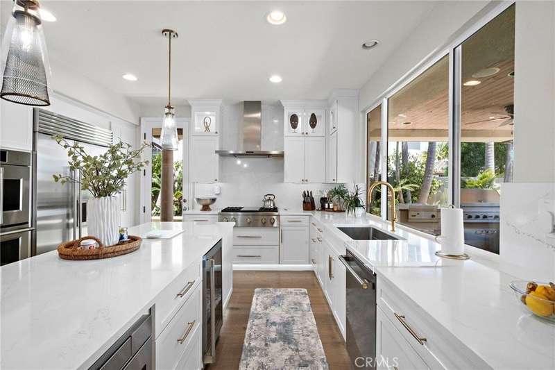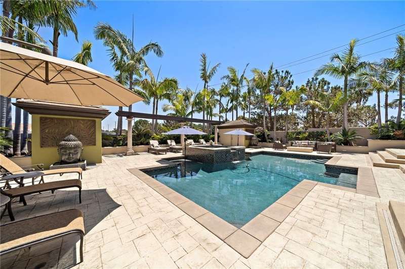 Exceptional one of a kind Edwards Hill Estate Property. This Ascot series Hamptons home boasts a massive 13,225 square foot lot creating your own private resort compound. The five car garage and driveway that will accommodate and additional five or more vehicles adds to the uniqueness of this home. Beautifully designed and upgraded throughout with rich wood flooring flowing throughout the living space. Crisp contemporary kitchen was just remodeled and features sleek quartz counters and a large center island. Lux white cabinetry with designer selected hardware. Built in Sub Zero refrigerator and high end Monogram series appliances. The family room is open to the kitchen and looks out through new four panel bi folding doors to your Tropical Paradise. The rear grounds of the home make you feel like you are at a five star resort. The Pebble Tec salt system pool and spa was just completely redone. Fabulous Barbeque area with multiple accoutrements and thoughtfully designed seating area. The main living space of the home offers high volume ceilings and attractive windows that let in tons of natural sunlight. There is a conveniently located downstairs bedroom with its own En suite bath. Ascend up the grand staircase to your primary suite sanctuary. Palatial in scale with a lovely sitting area, fireplace and private balcony. The primary bath is spa inspired and is complete with soaking tub and separate shower. A sizable walk in closet with multiple built ins complete the space. There are three additional generously size bedrooms upstairs with two of them offering En suite baths. This home is located in the highly desirable Seacliff area that offers access to the Equestrian Center and horse trails. The private Huntington Club Golf course is just around the corner affording multiple opportunities for sports and recreation. Come live the California Coastal Lifestyle at its finest!
