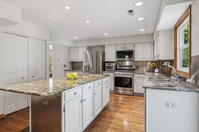 This 4-bedroom, 3.5-bath home in the highly sought-after Astor Place Subdivision offers a perfect blend of comfort, style, and modern living. Located in award-winning District 102 and Stevenson High School, it provides a functional and inviting layout ideal for everyday living and gatherings. The main level features an open, light-filled floor plan with hardwood floors, a brick fireplace, formal dining room, and a bright breakfast area. The gourmet kitchen includes white cabinetry, granite countertops, a stainless-steel backsplash, oversized island, and newer stainless-steel appliances. Upstairs, the primary suite offers an updated ensuite bath with a double vanity and glass-door shower, along with three additional bedrooms and a full bath. A vaulted-ceiling great room addition and finished partial basement with full bath expand the living space. Two newer HVAC systems and water heaters ensure year-round comfort, while the professionally landscaped, park-like backyard on an oversized lot with two patios provides a private outdoor retreat, perfect for relaxation and entertaining. This home combines thoughtful design, modern updates, and top-tier schools, making it an exceptional place to live. Schedule your private tour today and experience Buffalo Grove at its finest.