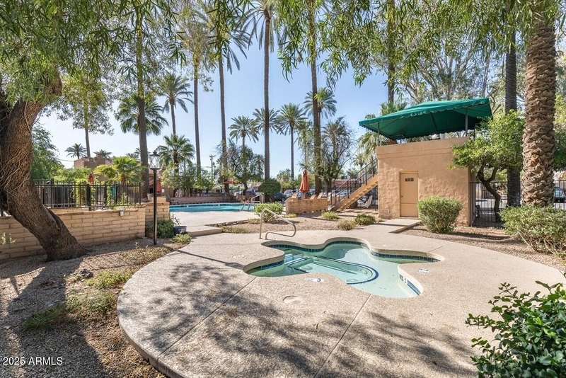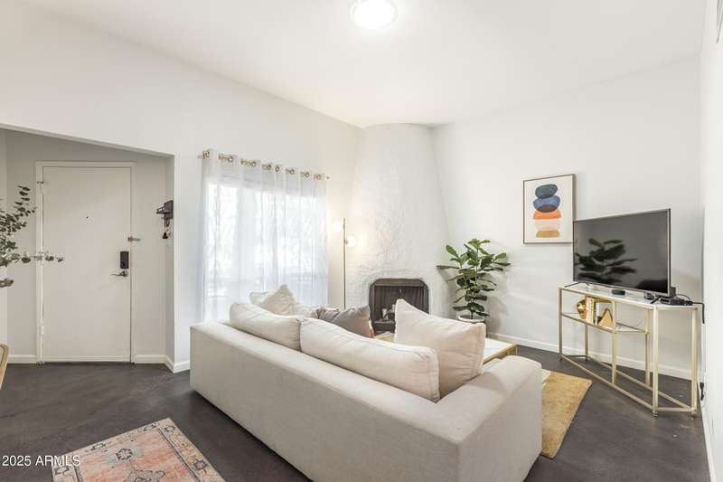 Desert living in a palm grove oasis. Once a working date farm, Palma Viva is now a hidden enclave with history and charm. Inside, classic details like a beehive fireplace and concrete floors mix with modern updates, including updated kitchen and bathroom, tall ceilings, tiled shower, keyless entry, and a private patio with sun shade. Relax at the community pool beneath the palms, or step out to some of Phoenix's best dining, shopping, and nightlife just minutes away. The location bridges Arcadia and Arcadia Lite, making it easy to enjoy the canal for biking and walking, hikes up Camelback Mountain, or evenings at top local restaurants.