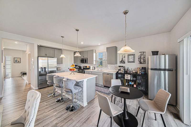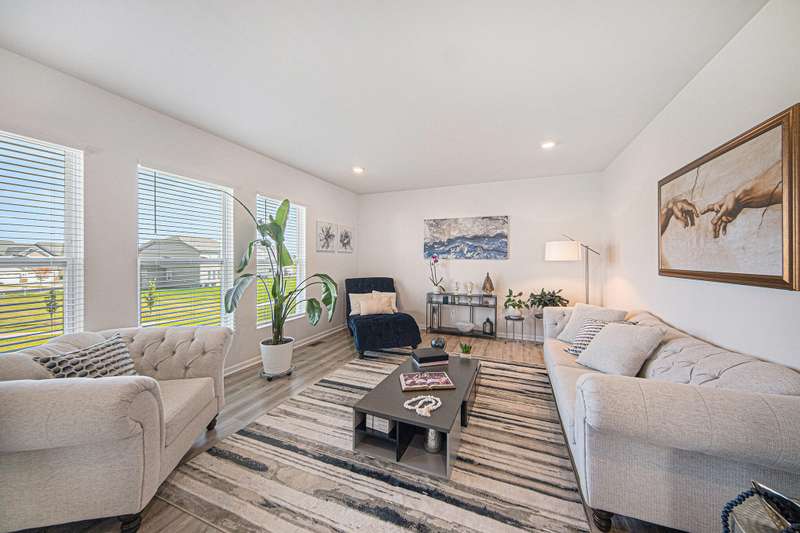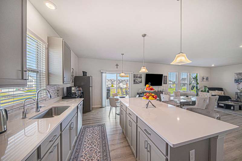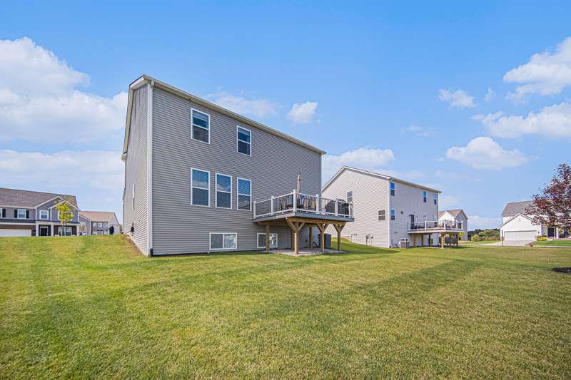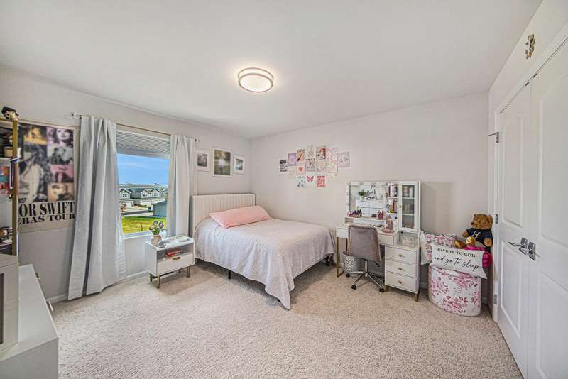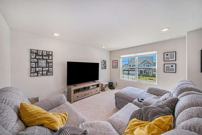 Welcome to this beautifully designed 3-bedroom, 2.5-bath home with a 2-car garage. From the charming front porch to the open-concept living areas, every detail invites comfort and style. The versatile flex room offers space for an office, gym, or playroom. The kitchen shines with quartz countertops, GE(R) stainless steel appliances, and a spacious walk-in pantry--perfect for everyday living or entertaining. Upstairs, discover a cozy loft, two bright bedrooms, and a large owner's suite with dual sinks, a walk-in shower, and a spacious closet. Step outside to enjoy a new deck, lush grass, and a convenient sprinkler system--ideal for relaxing and making lasting memories.