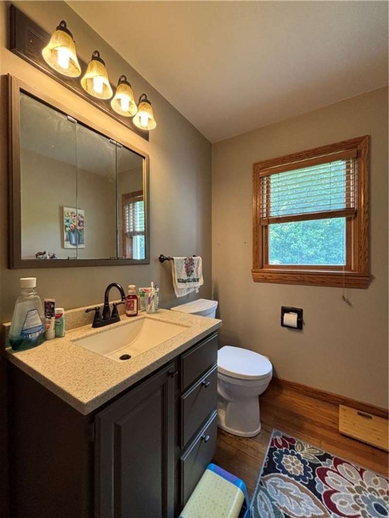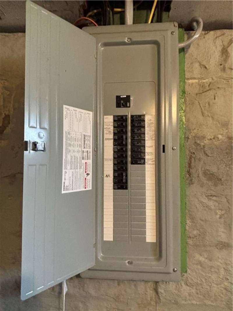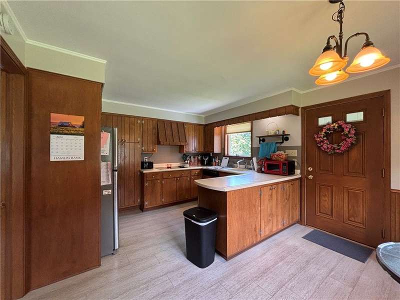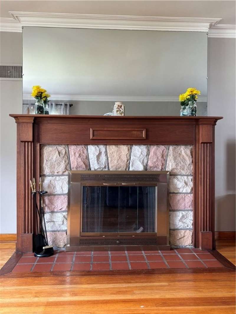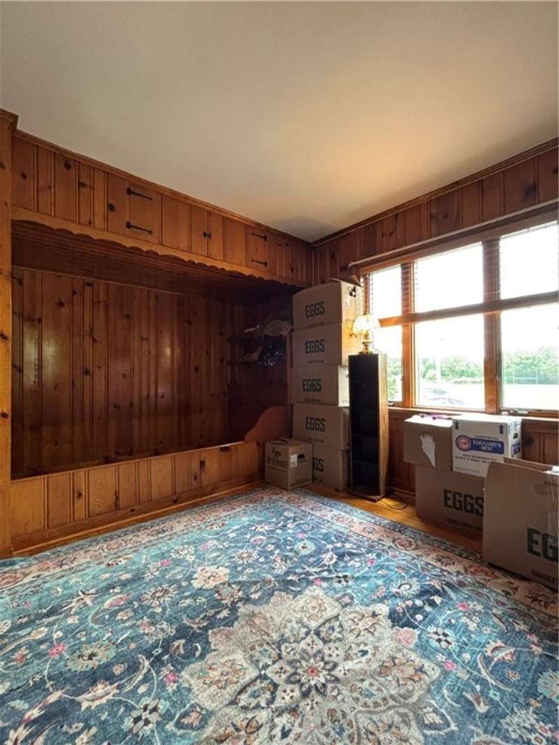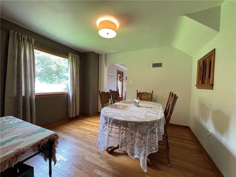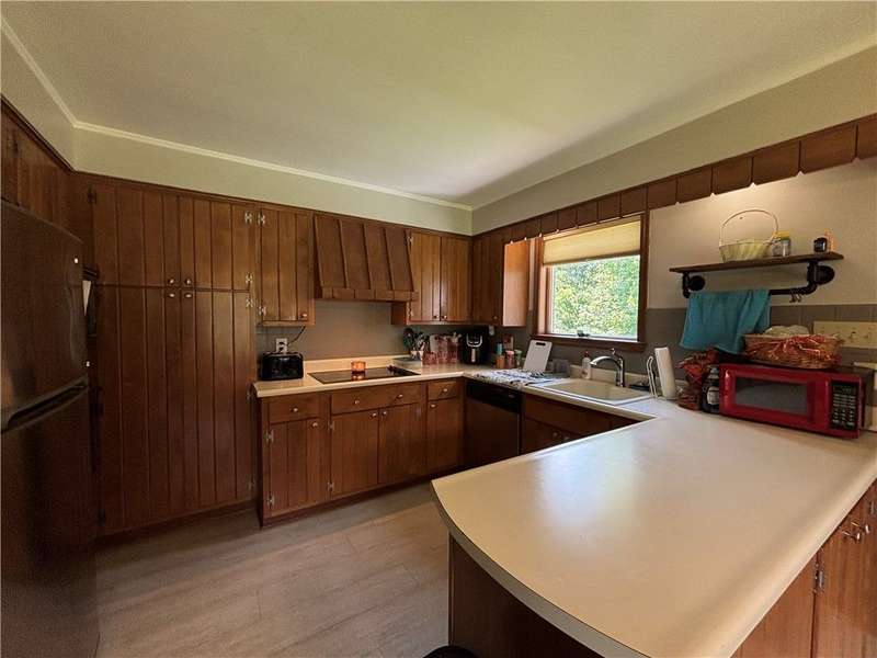 Classic Brick Cape Cod with integral garage, workshop and oversized yard in a prime location across from the elementary and middle school. This 3-bedroom, 2-bath home offers a perfect blend of functionality and room to grow. The cozy living room features a wood-burning fireplace framed in stone with a wood mantel allowing added warmth in crisp winter days. Gleaming hardwood floors run throughout the home adding timeless charm. The kitchen is both practical and bright, with a breakfast bar and plenty of space for a dining table plus a huge picture window overlooking the backyard and wooded area. Kitchen appliances are included plus the seller is offering a credit toward the replacement of the built-in wall oven/microwave. The versatile den or study includes a built-in desk and full wall of shelving?ideal for a home office, guest room, or even a fourth bedroom with a convenient half-bath just off the room.Upstairs you'll find three bedrooms, a full bathroom, and a bonus storage room?great for seasonal items or creative projects. The full basement boasts a second wood-burning fireplace and an integral garage with the washer, dryer, and dehumidifier included in the sale. The oversized yard feels like your own private park, bordered by a wooded area and a charming creek with a small footbridge. There's also a 14' x 40' workshop?perfect for hobbies, storage, or entertaining ?plus a 5' x 7' shed.