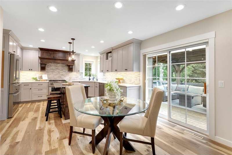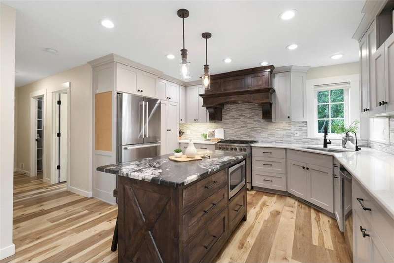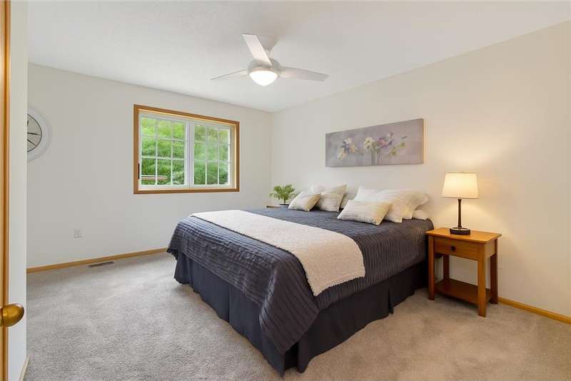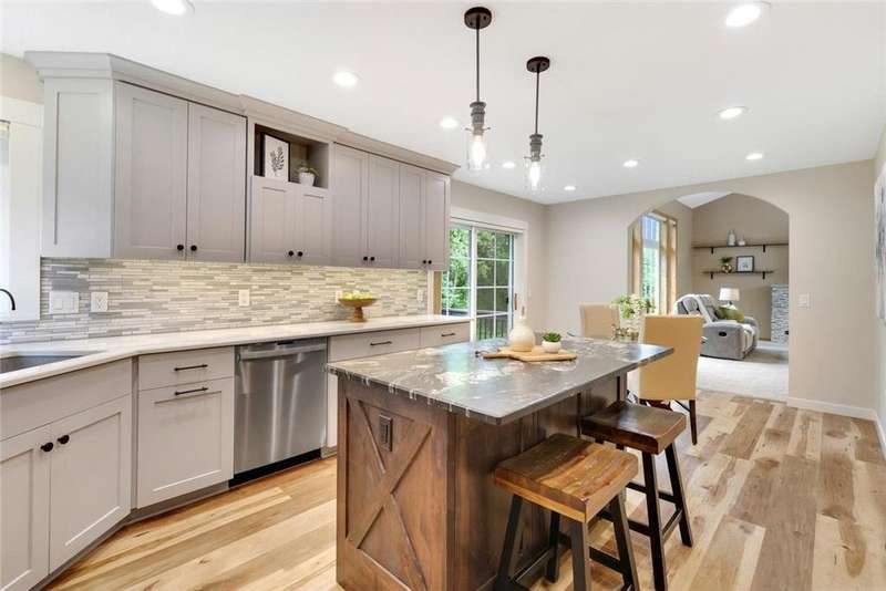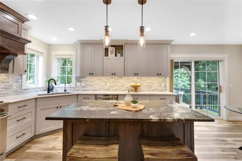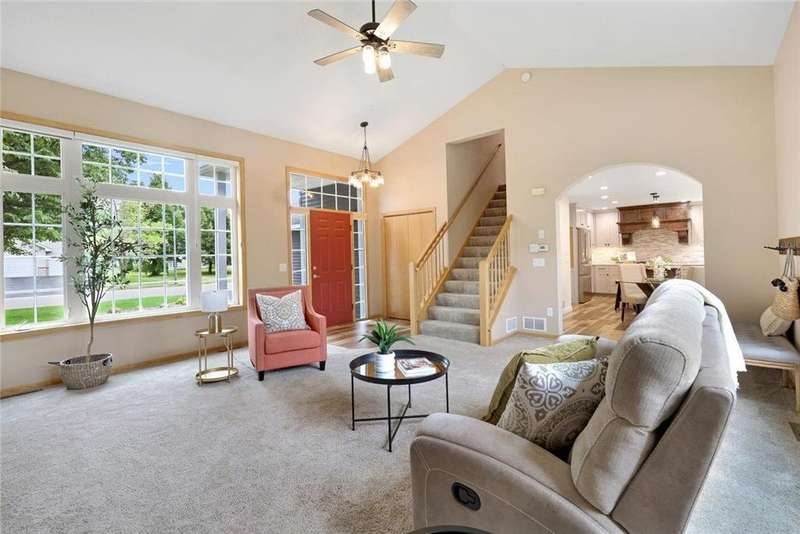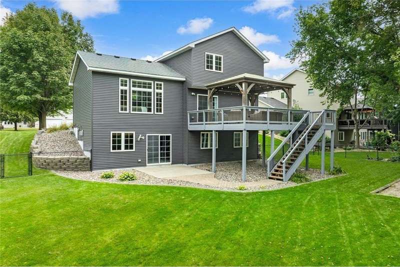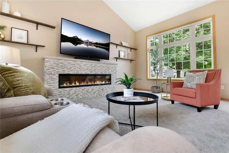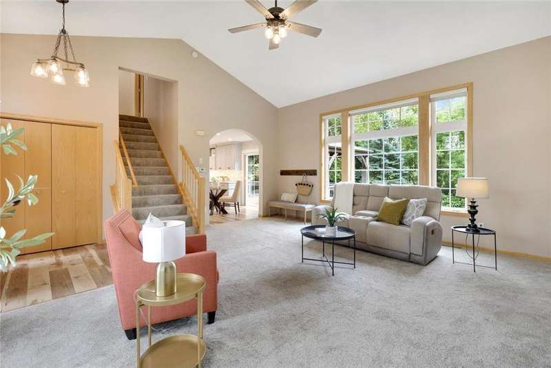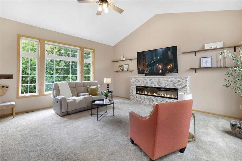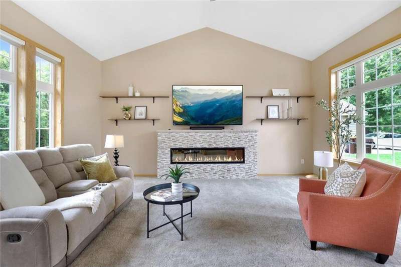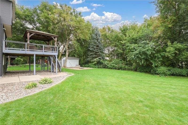 Step inside this beautifully updated home where style, comfort, and function all come together. The heart of the home is the top-of-the-line kitchen, showcasing custom cabinetry, stainless appliances, a statement hood over the range, tile backsplash, and a stunning soapstone island complemented by quartz perimeter countertops that are perfect for cooking and gathering. The vaulted great room impresses with its tiled fireplace and soaring windows that flood the space with natural light. A spacious main-level laundry and mudroom with built-in storage add everyday convenience. Upstairs, you’ll find three bedrooms, including a primary suite with a walk-in closet and private ¾ bath, along with an updated hall bath. The walkout lower level is designed for relaxation and entertaining with a cozy gas fireplace, built-in media cabinet, an additional bedroom, and another ¾ bath. Out back, enjoy a large deck with pergola, concrete patio, a fully fenced yard, and mature trees that create the perfect backdrop. A storage shed adds even more function. Recent updates include siding, many mechanicals, and new carpet in the upper-level bedrooms and lower level. This move-in ready home truly checks all the boxes—don’t miss your chance to see it!