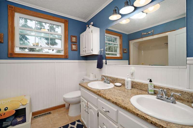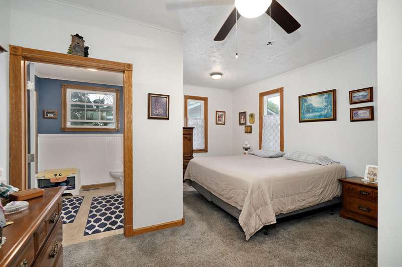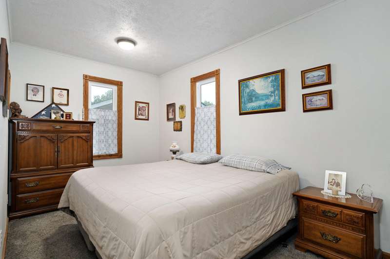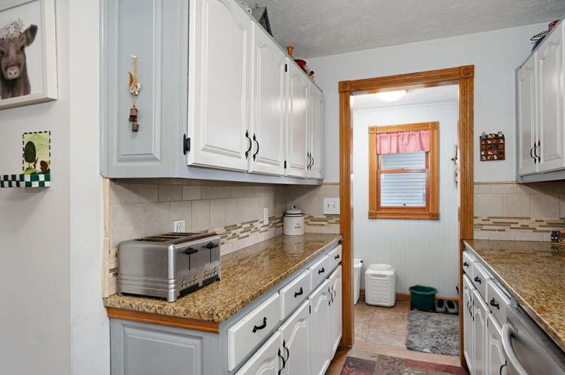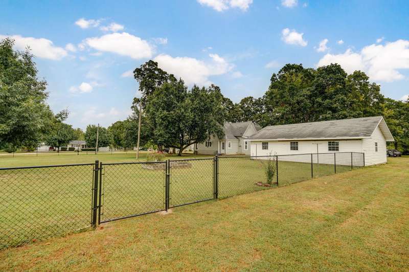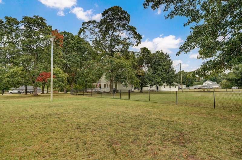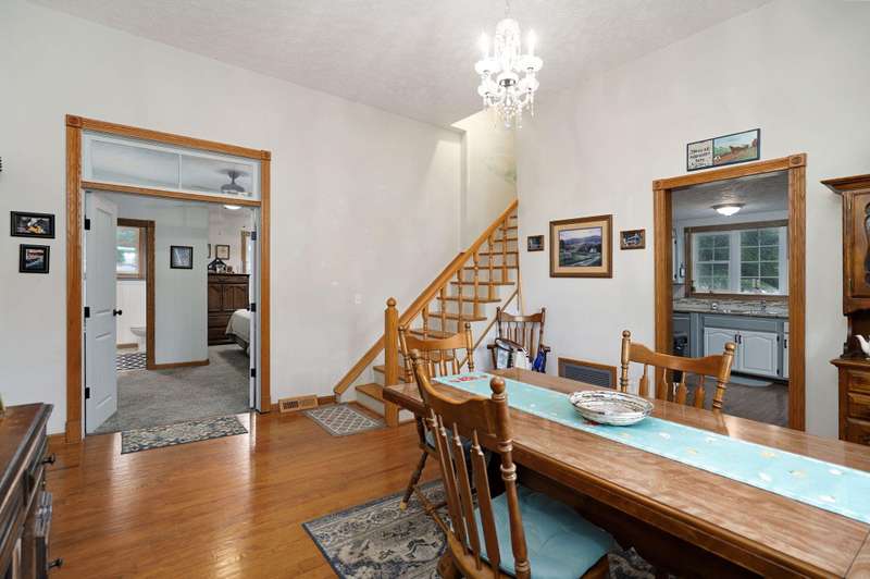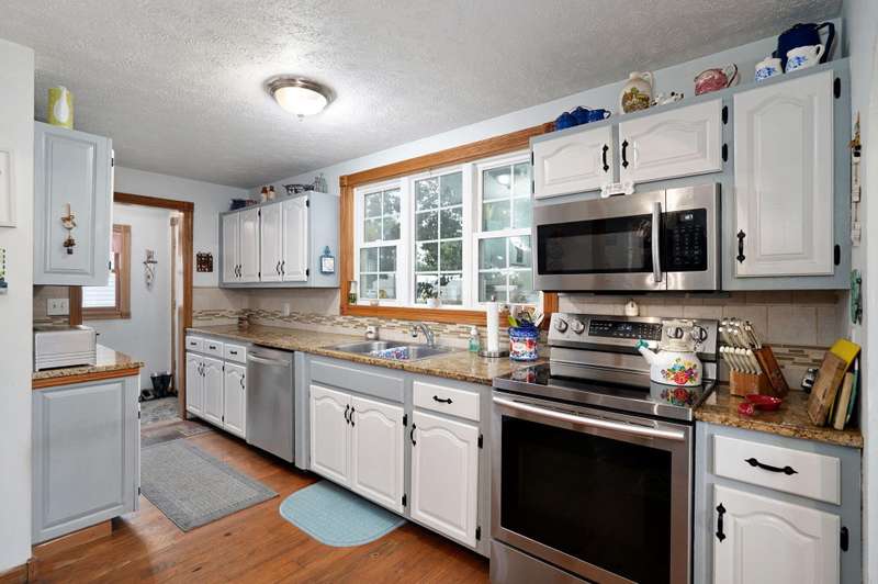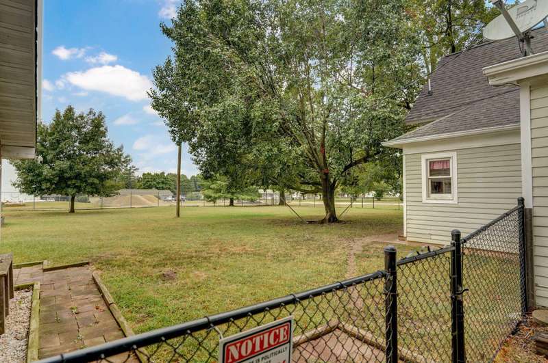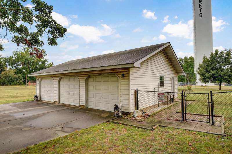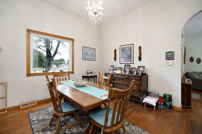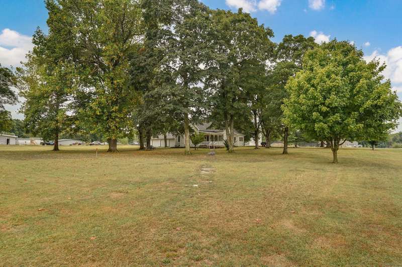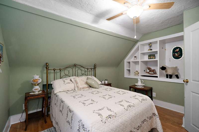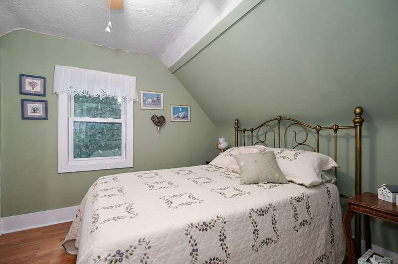 Beautiful home with an Amazing covered front porch overlooking almost 2 acres. Drink your morning coffee and watch the White squirrels. Beautiful wood floors. Granite countertops in the kitchen and bathroom / double sinks. Newer windows. Fresh paint. High ceilings gives it a great open feel. One bedroom upstairs. A fantastic breakfast nook with lots of windows. Also a Bonus room/office/reading nook with a skylight. Could also be a small bedroom or nursery. Basement has HVAC system and hot water heater also a sump pump. Makes for a great place for storage and shelter for storms. Fantastic detached three car garage with concrete floors and electric. Very nice cozy home. LARGE LOT.