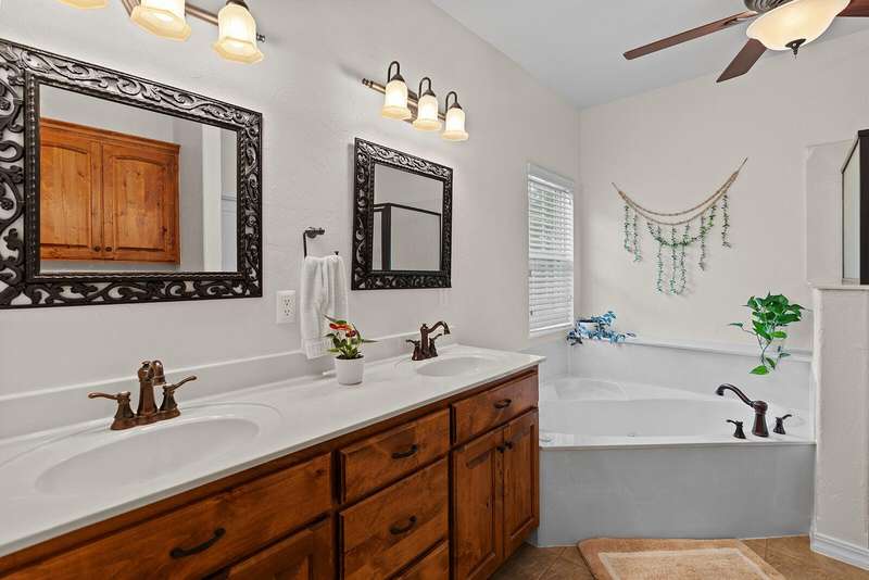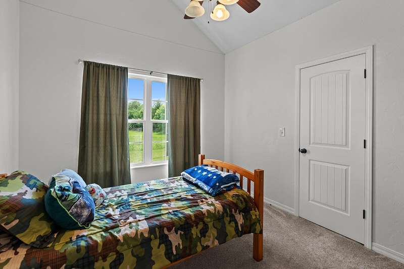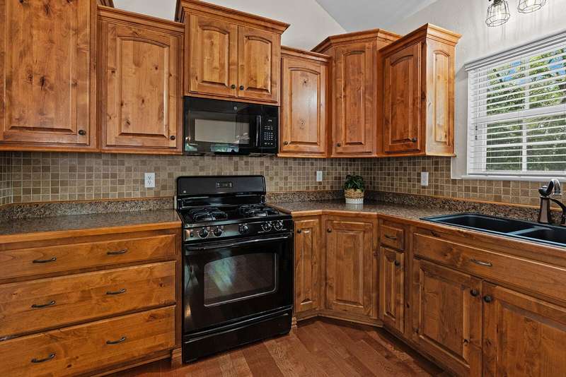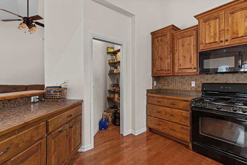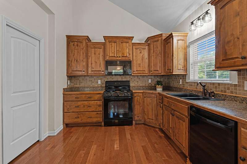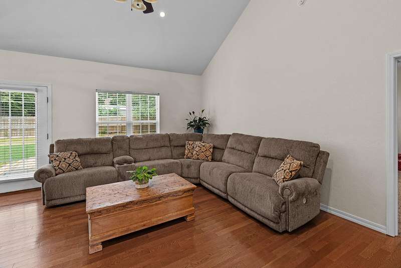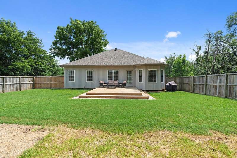 Enjoy peaceful country living in Ash Grove without sacrificing convenience in this well-maintained brick-front home! Nestled on a quiet dead-end street with an open field across the way, you'll love the privacy and small-town charm. Inside, vaulted ceilings in both the living room and kitchen create an airy, open feel, complemented by real hardwood floors and fresh paint throughout. The living room features a cozy gas fireplace, while the kitchen offers abundant cabinetry, gas range, walk-in pantry, and plenty of space for cooking and gathering. A large laundry/mud room adds extra functionality for everyday living. The spacious primary suite features high ceilings, a jetted tub, walk-in shower, dual vanities, and an oversized walk-in closet. Step outside to a newer deck and a fully privacy-fenced backyard perfect for relaxing or entertaining pets, friends and family. With a new roof and recently serviced HVAC, water softener, and water heater, this move-in ready home is ideal for anyone looking for an upgraded home just outside the city!