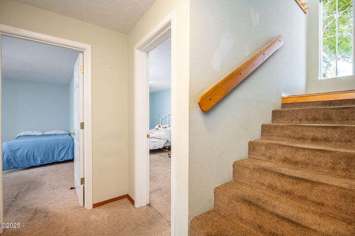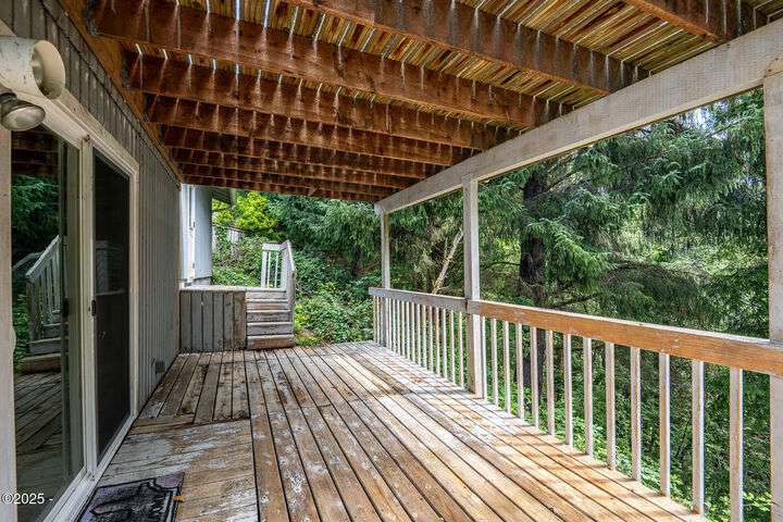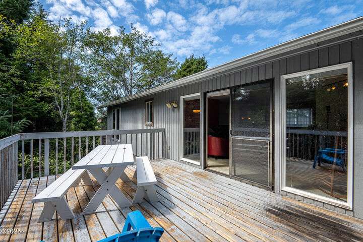 Newport Coastal Retreat! This 4-bedroom, 3 bath split-level home sits on nearly half an acre (.42) surrounded by towering Douglas firs and a gently sloping backyard that creates a serene, private setting. The attached 2-car garage provides convenience, while the upper and lower decks offer ideal spaces for outdoor entertaining or simply enjoying the peaceful forested views. Located just three blocks from the trailhead to the Pacific Ocean, you'll have easy access to miles of sandy beaches perfect for long walks, beachcombing, or taking in Oregon's breathtaking sunsets. A second trail leads through the forest to Big Creek Park, adding to the abundance of nearby recreation. Tennis courts are a short 10-minute stroll, and grocery shopping is just 5 minutes away. This Newport neighborhood benefits from a unique microclimate, often sitting outside the fog and wind zonesgiving you more sunny days to enjoy your coastal lifestyle.