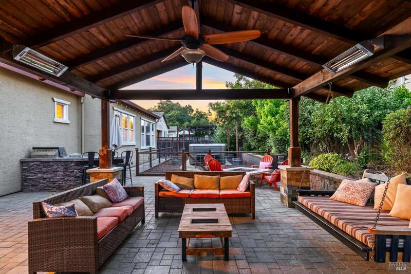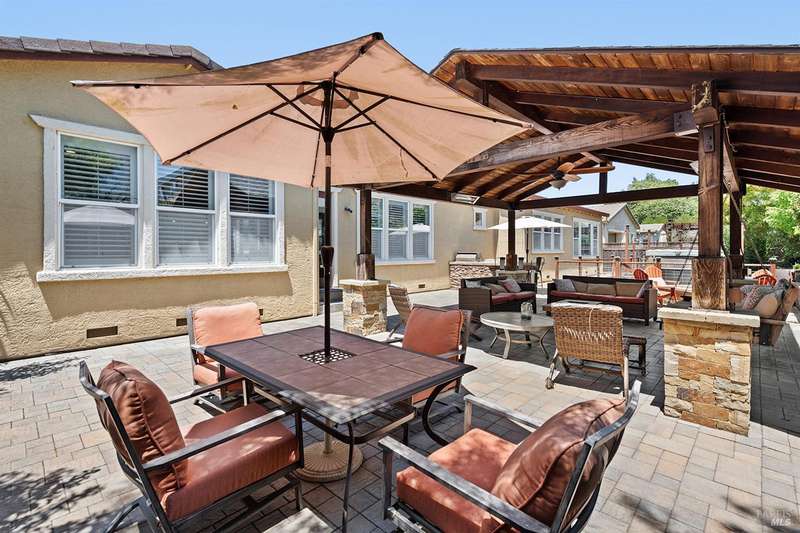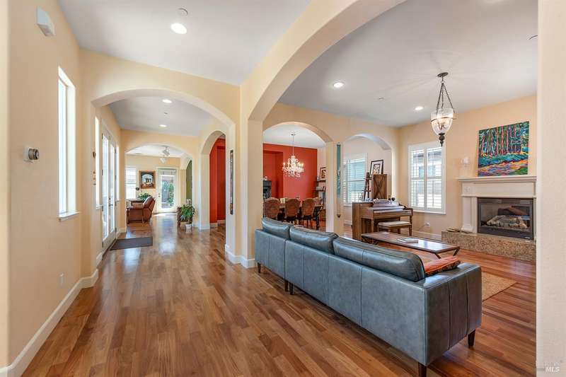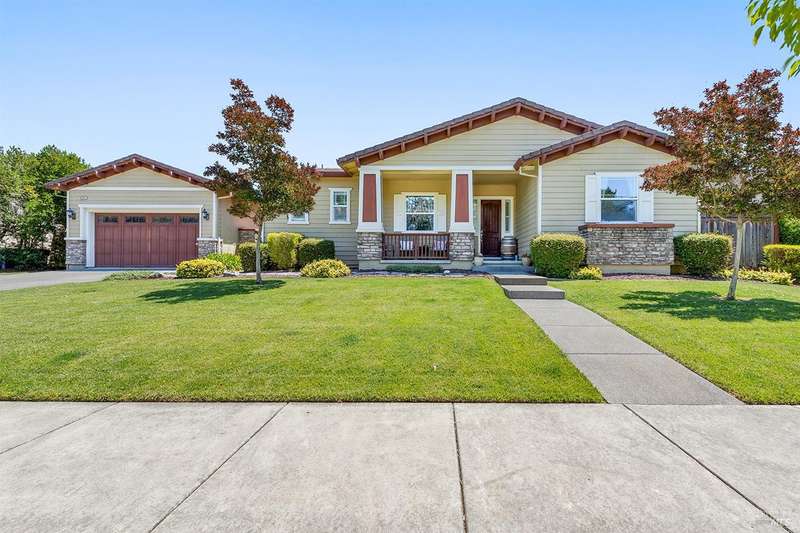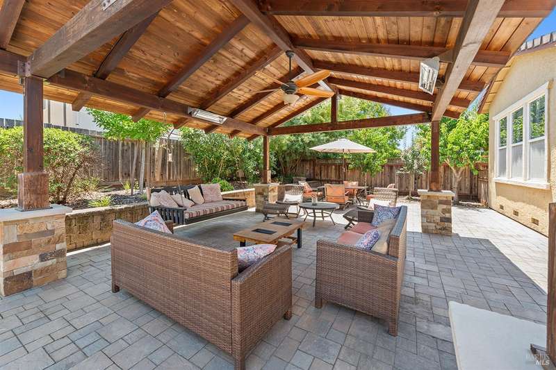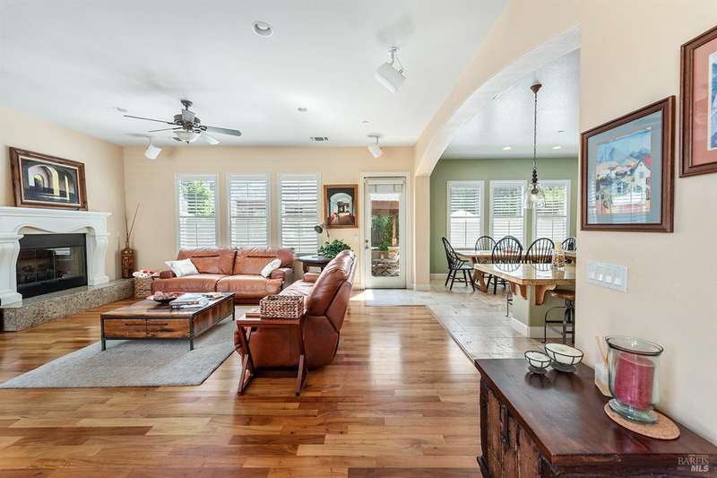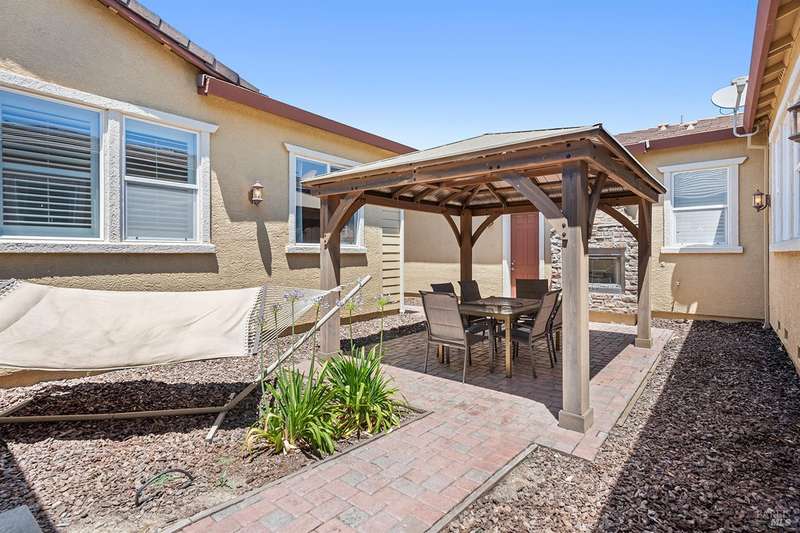 Welcome to an exceptional Windsor property, nestled in the highly sought-after Vintana Estates. This pristine single-level residence offers 4 spacious bedrooms, 3 full bathrooms across an impressive 3,300 square feet of living space and a 3 car garage, all situated on a generous third-acre lot. This semi-custom property combines refined architectural design with the serene beauty of its surroundings. Inside, sunlight floods the interior, accentuating bright paint, rich solid wood flooring, and an updated kitchen. The layout is designed for both comfort and privacy, with the primary suite thoughtfully separated from the secondary bedrooms in a dual-wing configuration. Step into the peaceful inner court yard with a cozy gas fireplace and pavered patio inviting year-round enjoyment. The professionally landscaped backyard completes this picture-perfect setting with a large built in pergola structure complete with fans, heaters, an outdoor kitchen, built-in gas fire-pit, swim spa, new fencing, and much more. Meticulously maintained and rarely available, this home is a standout opportunity in the heart of Windsor. Enjoy close proximity to the vibrant downtown, excellent schools, parks, shopping, dining, and more. Come experience the charm and elegance for yourself!
