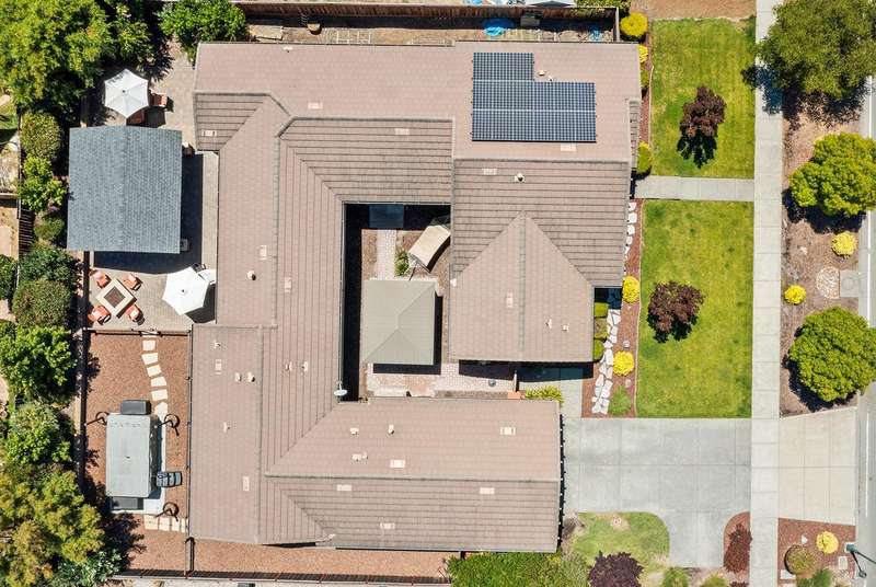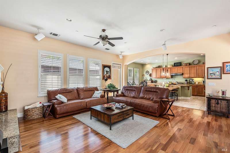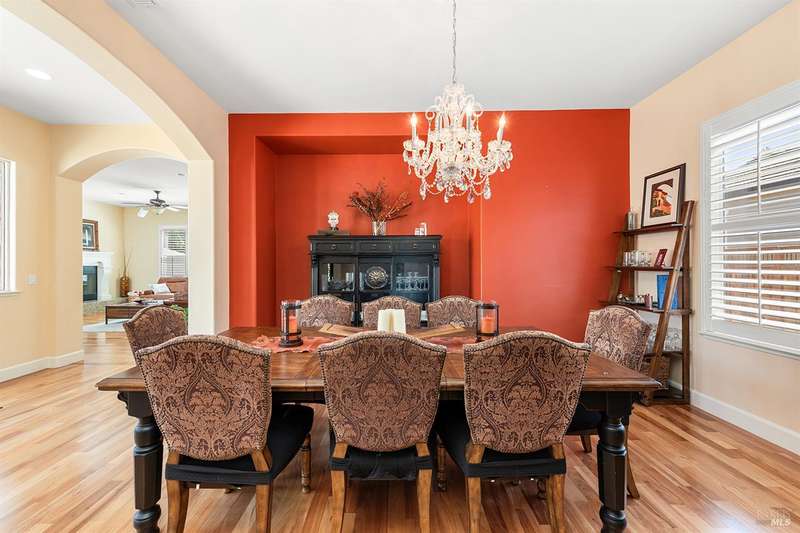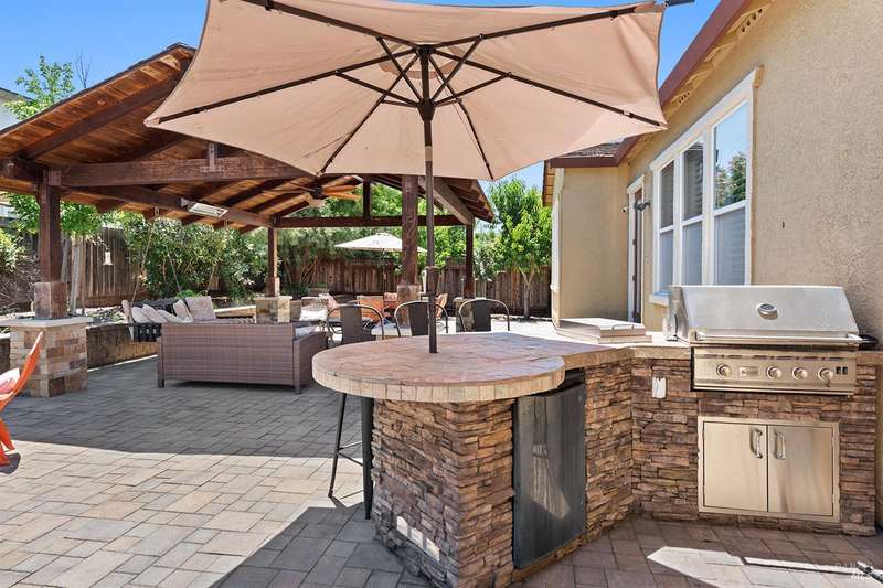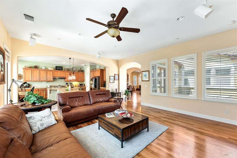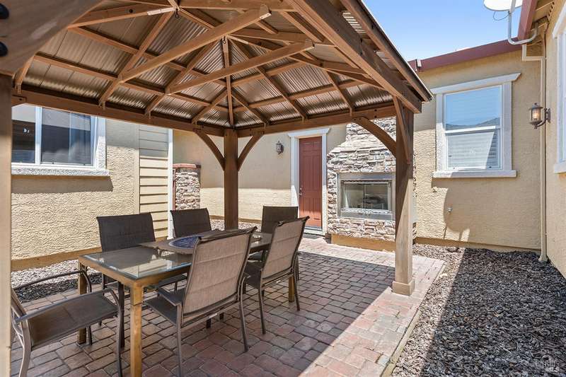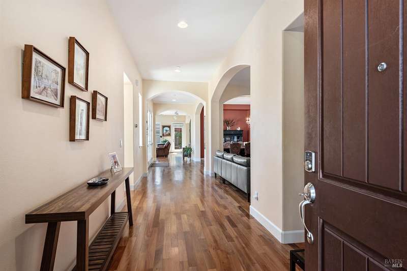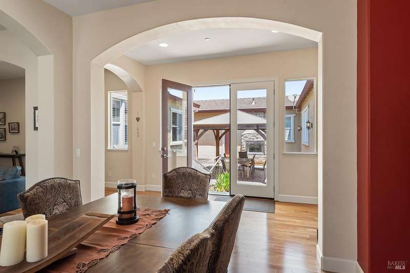 Welcome to an exceptional Windsor property, nestled in the highly sought-after Vintana Estates. This pristine single-level residence offers 4 spacious bedrooms, 3 full bathrooms across an impressive 3,300 square feet of living space and a 3 car garage, all situated on a generous third-acre lot. This semi-custom property combines refined architectural design with the serene beauty of its surroundings. Inside, sunlight floods the interior, accentuating bright paint, rich solid wood flooring, and an updated kitchen. The layout is designed for both comfort and privacy, with the primary suite thoughtfully separated from the secondary bedrooms in a dual-wing configuration. Step into the peaceful inner court yard with a cozy gas fireplace and pavered patio inviting year-round enjoyment. The professionally landscaped backyard completes this picture-perfect setting with a large built in pergola structure complete with fans, heaters, an outdoor kitchen, built-in gas fire-pit, swim spa, new fencing, and much more. Meticulously maintained and rarely available, this home is a standout opportunity in the heart of Windsor. Enjoy close proximity to the vibrant downtown, excellent schools, parks, shopping, dining, and more. Come experience the charm and elegance for yourself!