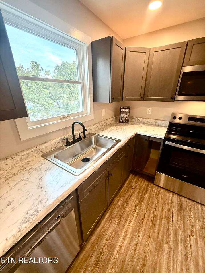 FULLY REMODELED RANCHER with an unfinished basement, ideally located just minutes from UT Hospital, University of Tennessee, and all that Downtown Knoxville has to offer! This super clean, move-in ready home features 2 bedrooms, 2 full bathrooms, and a long list of high-quality updates throughout. Enjoy cooking in the brand-new kitchen, complete with all new cabinets, stainless steel appliances, and modern finishes. The home boasts new luxury vinyl plank flooring, new carpet in the bedrooms, new plumbing, updated electrical, new energy-efficient windows, and a new roof-offering peace of mind and long-term value. The bright and open layout makes the home feel warm and inviting, while the unfinished basement provides plenty of storage space. Located in a prime area close to shopping, dining, University of Tennesse, UT Hospital and other major medical facilities, this home is perfect for first-time buyers, medical professionals, or anyone looking for a low maintenance lifestyle in the heart of the city. Turnkey and ready for new owners-schedule you private showing today. Listing is for Lot 1 and house only. Separate Lot 2 that is staked off behind the home is not part of this listing and does not convey with this property. See ''Survey 1'' in the attached documents.