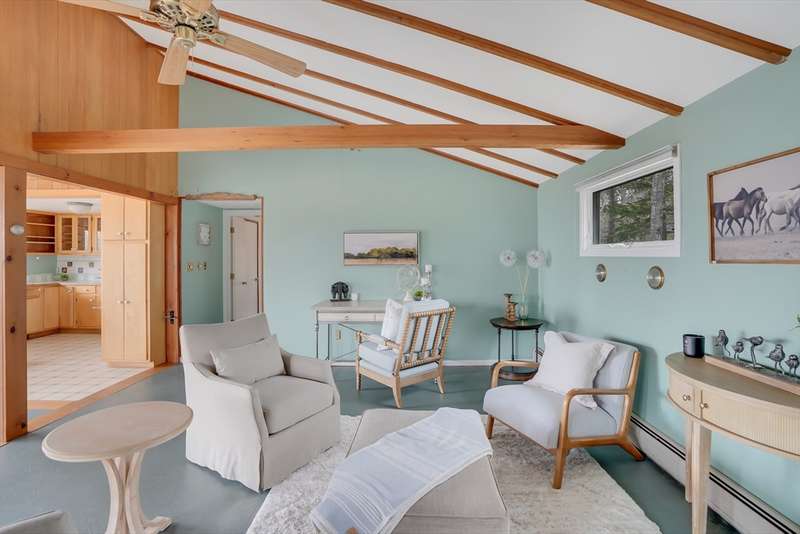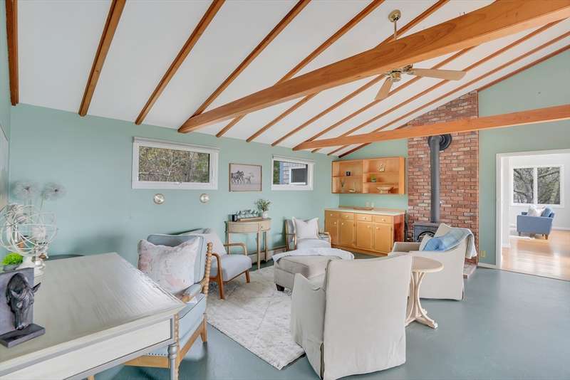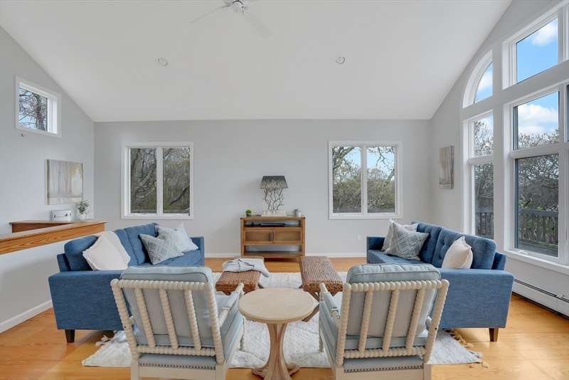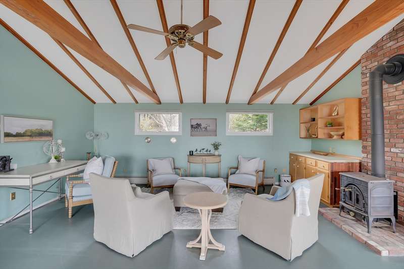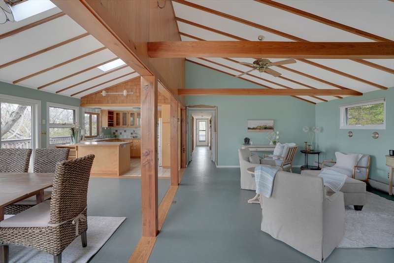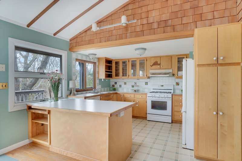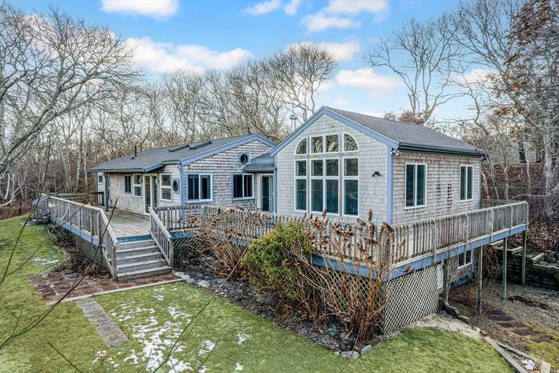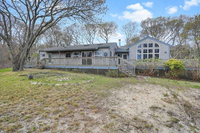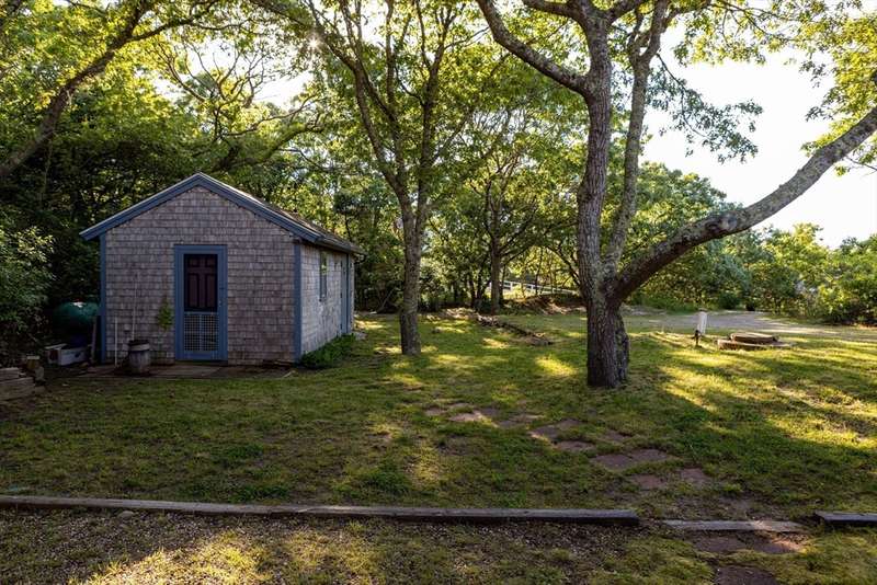 Aquinnah Retreat set on a private 1.1-acre lot! This beautiful single-family home was lovingly built and cared for by one family, offering peaceful surroundings and ocean views. Now move-in ready, it's the perfect place for new owners to relax and make it their own. The wrap-around deck provides a scenic spot to enjoy the coastal air. Inside, the kitchen and dining area are filled with natural light from skylights and large windows, flowing into a cozy sitting area with a fireplace-perfect for gathering with family & friends. The left wing features 3 bedrooms, a full bath, and a half bath. On the opposite end, a spacious great room features cathedral ceilings, oversized windows with ocean views, and a half bath with laundry hookups. The walk-out lower level offers a bathroom and bonus room—ideal for added living space, guests, or rental income. A heated studio, two sheds, and outdoor shower add flexibility. New roof (2021). This special Aquinnah property is ready for its next chapter!