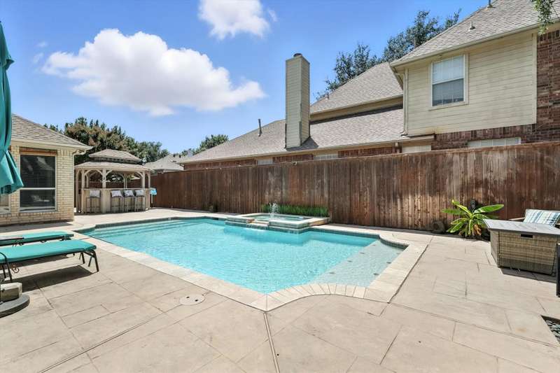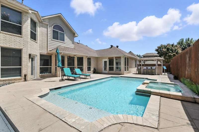Welcome to 17912 Benchmark Drivea warm, inviting home in the sought-after Villages at Frankford neighborhood in Dallas, within top-rated Plano ISD. This charming home has 3 roomy bedrooms, 2.5 baths, a flexible living-office area, a cozy breakfast nook, an upstairs loft, and a formal dining room - great for both everyday living and hosting friends. The chefs kitchen features granite countertops, cool under-island countertop lighting, top-of-the-line Viking appliances, tons of cabinet space, and a big pantry. The home is filled with natural light and calming neutral colors, giving it a bright and welcoming vibe. The living room, complete with a gas fireplace, is the perfect place to kick back or hang out with guests. The downstairs spacious primary suite overlooks the pool-patio, offering a peaceful place to unwind, with a spa-like ensuite bath with jetted tub and a rain head shower thats perfect for relaxing. Step out back to your own private oasiswith a pool, spa, and cabana, its made for soaking up the sun and enjoying the outdoors in peace. Other perks include a 2-car garage with alley access and a location thats close to everythingshops, restaurants, and parks. The HOA provides access to a community pool and playground. Its the ideal home for anyone looking for comfort, convenience, and a great neighborhood that has it all!!