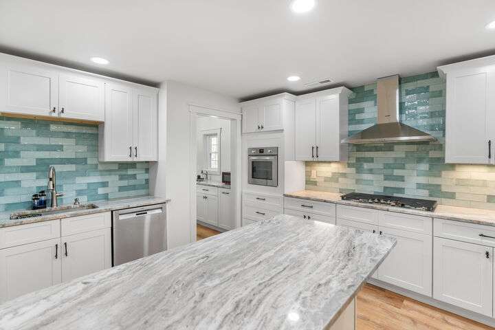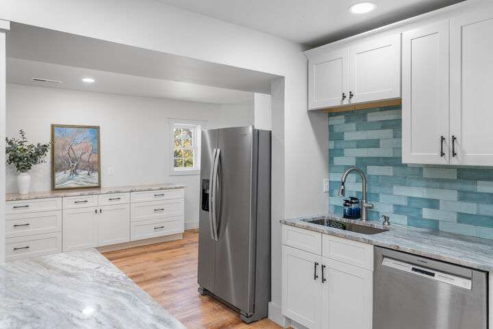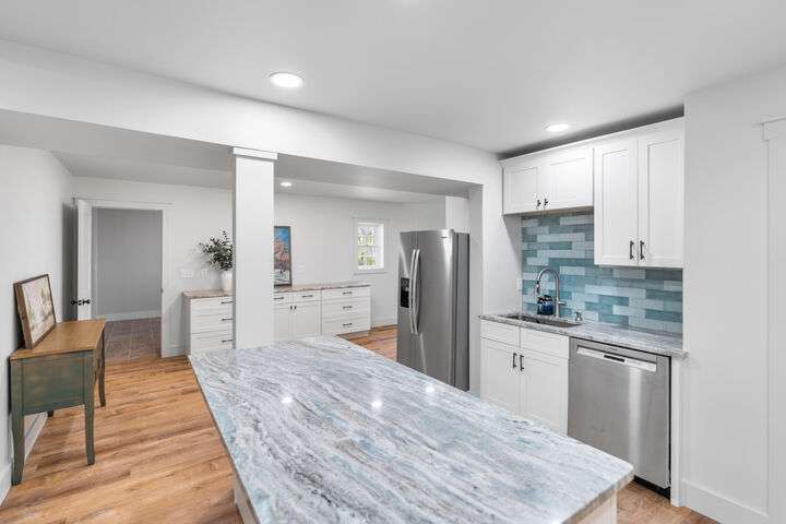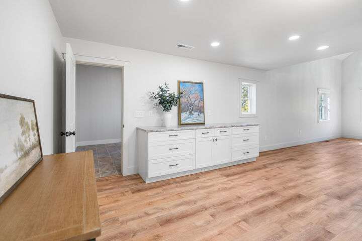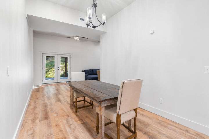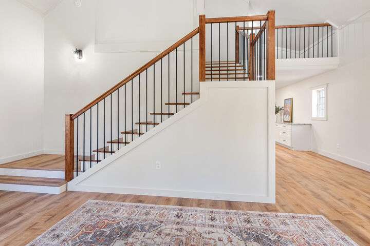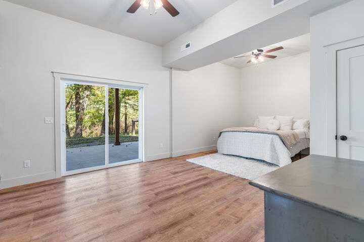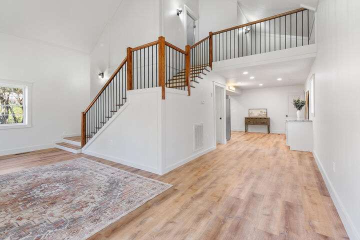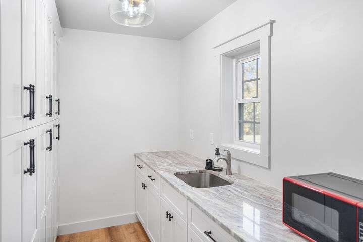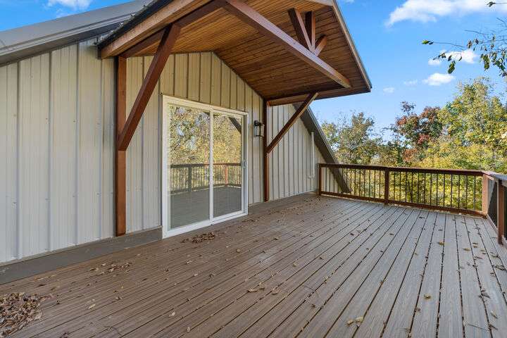 Incredible renovated home in a beautiful country setting. This property boasts a view of Lick Creek and the surrounding countryside. Upon entering, you are welcomed by a stunning staircase and soaring cathedral ceilings. The kitchen features granite countertops, a Butler's pantry, and a spacious island. The home offers two separate living areas and a large primary bedroom on the main floor. The primary bathroom includes a free-standing tub and a walk-in shower. A vast, covered patio extends from the primary bedroom, offering views of the side yard and countryside. The den features a gas fireplace and french doors that open to another covered patio. Upstairs, there are three additional rooms and another full bathroom. One room upstairs has a large walk out deck offering incredible views. The laundry room is expansive, with plenty of space for cabinetry and furniture. The garage accommodates one car and includes a sizable workshop area with cabinetry. Additionally, there is optional space on the second floor that could be developed into another entertainment area.