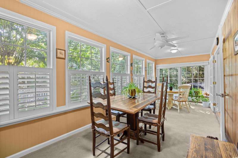 Nestled on a quiet cul-de-sac in The Bluffs at Pawleys Island, 151 Safe Harbor Road offers the perfect blend of coastal charm and everyday comfort. Just a quick golf cart ride, less than two miles, puts you on the beaches of Pawleys Island. Cruise to the shore with the salty breeze at your back and the day's adventure ahead. Inside, this 4-bedroom, 2-bath home features a split layout with the primary suite privately situated on one side and two guest bedrooms on the other. The converted garage serves as a versatile 4th bedroom, ideal for guests, a home office, fitness area, or additional living space. The great room features a cozy gas fireplace and flows into a spacious Carolina room filled with natural light. From there, step onto the deck and backyard patio designed for outdoor relaxation and entertaining. The kitchen is framed by both a dining area and a breakfast nook, offering flexible spaces for casual meals or more formal gatherings. There is ample storage both inside the home and attached outside. Recent upgrades include a new HVAC system in 2022, hot water heater in 2023, and irrigation system in 2023. The crawl space is encapsulated with a dehumidifier. Whether you’re enjoying your large front porch in a rocking chair or grilling on your deck off the back this gem of a property offers it all. Located near award-winning golf courses, celebrated restaurants, and unique shopping, this home delivers the full Lowcountry lifestyle