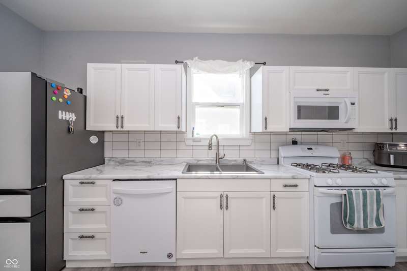 Beautifully updated 4 bedroom, 2.5 bath home offering a spacious layout and modern touches. The large, updated kitchen includes all appliances and features ample cabinet and counter space. The home features a desirable main-level primary suite along with main-level laundry for added ease. The living area is generously sized! Upstairs, you'll find additional bedrooms and a full bath, providing great separation of space. This home also features a new water filtration system, adding value and peace of mind. The fully privacy-fenced backyard includes a deck with remaining awning-from the covered front porch to the back deck it is ideal for outdoor enjoyment. Off-street gravel parking is located on the side of home.