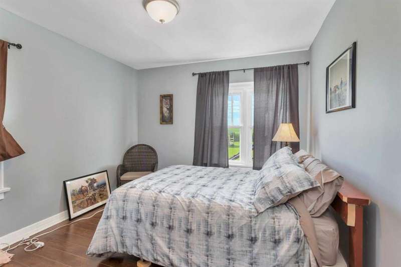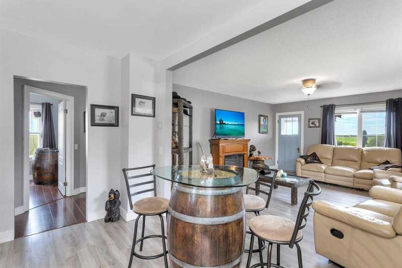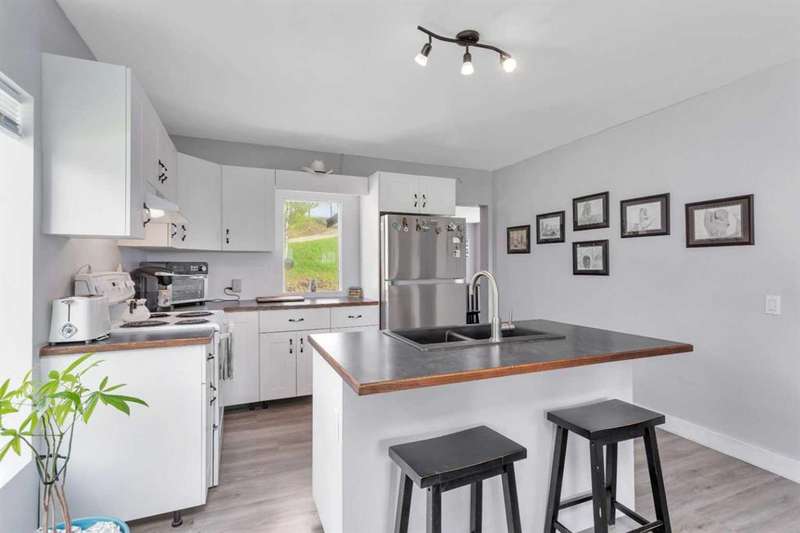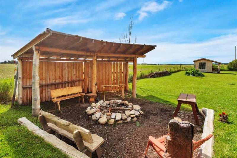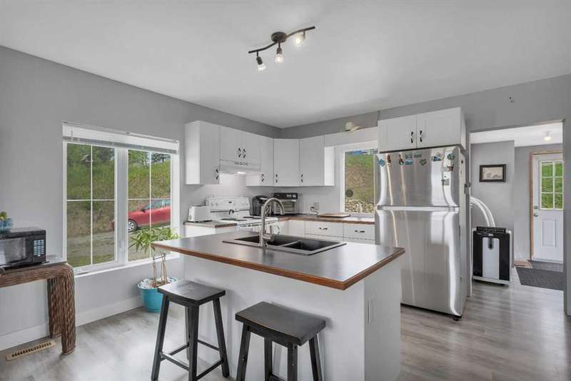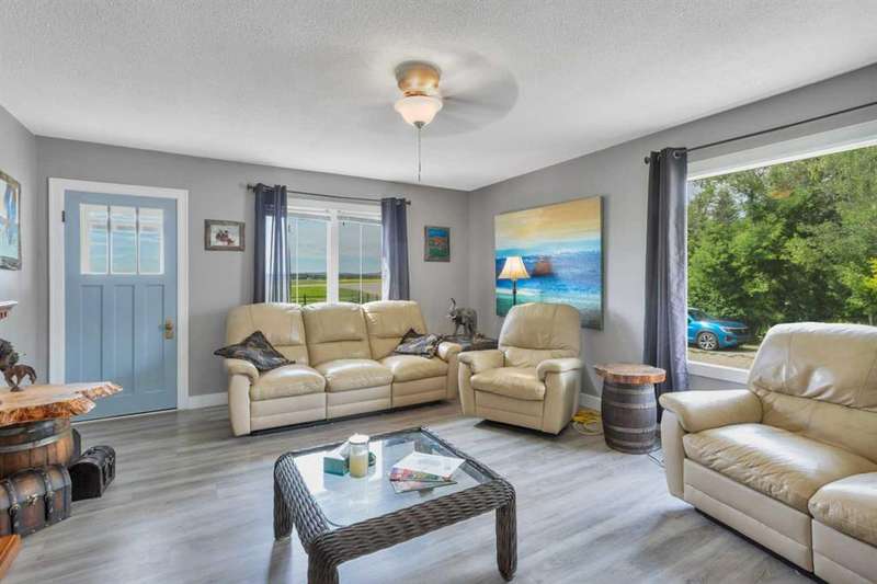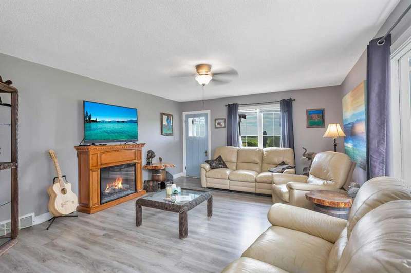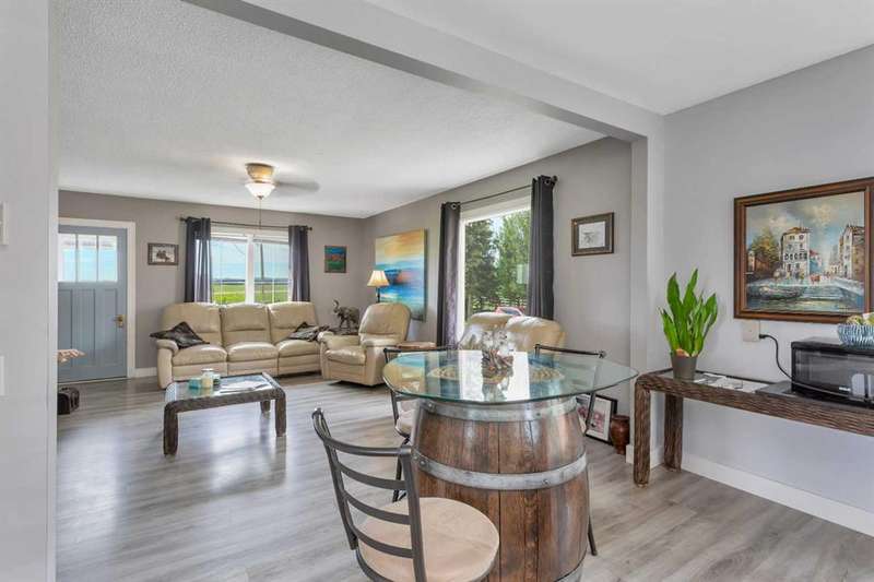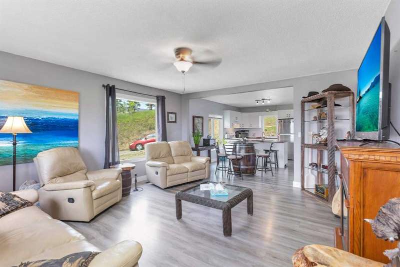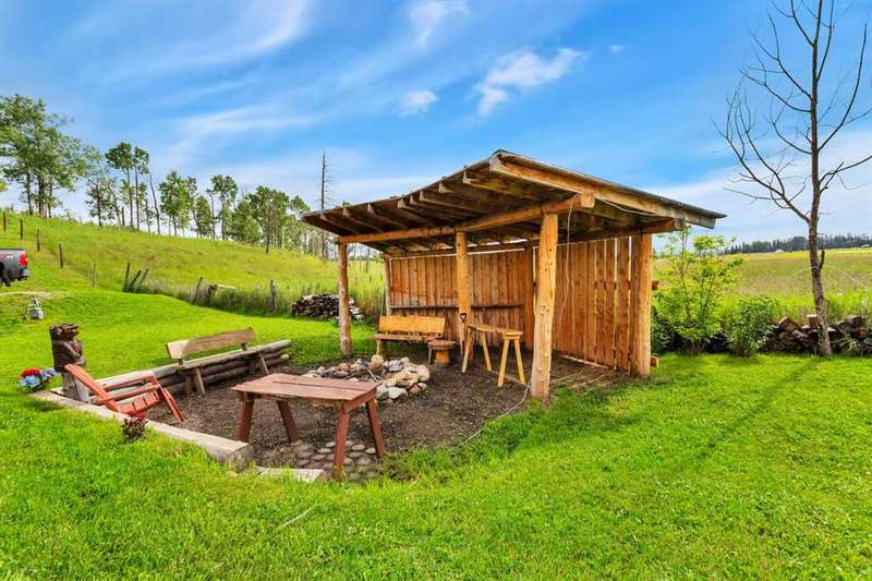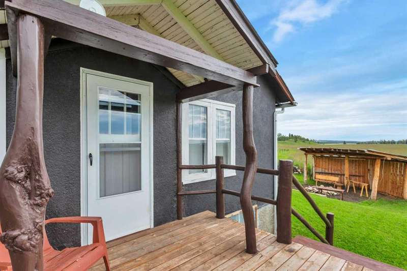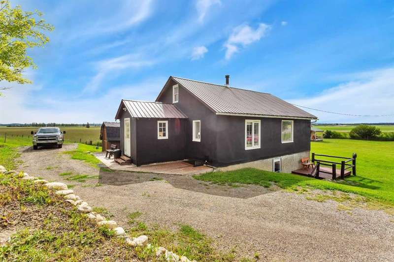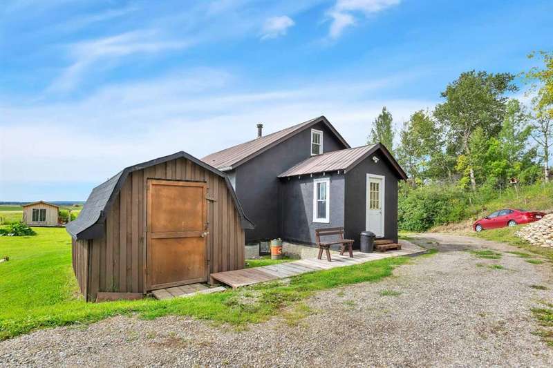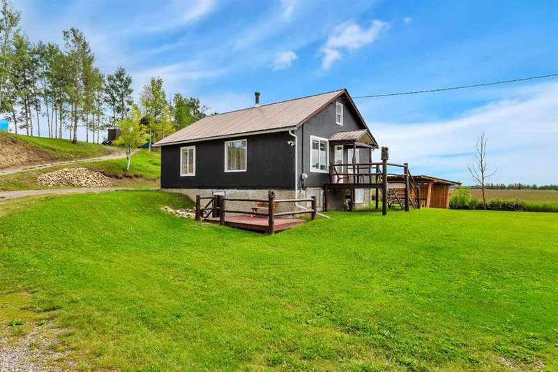 Your Search Is Over! This Is Your Little Slice of Country Paradise! Welcome to the ideal starter or retirement acreage—manageable, peaceful, & move-in ready! Nestled on a picturesque 1-acre lot just minutes from Sundre & right off pavement, this freshly renovated bungalow offers the best of rural living without the overwhelming chore of being a high-maintenance property. Whether you’re just beginning your homeownership journey or looking to downsize & unwind, this charming home is exactly what you’ve been waiting for. Step inside to discover a bright & inviting interior with a modern neutral palette, open floorplan, durable laminate flooring, & a brand-new kitchen complete with seated island. Perfect for casual breakfasts or prepping meals for family & friends. Large windows throughout flood the home with natural light & frame views of the serene countryside from nearly every room. The main floor features two generously sized bedrooms & a 4-piece bath, while the versatile loft area adds extra space for an office, reading nook, or art studio. Downstairs, the fully developed walk-out basement offers two additional bedrooms, a 3-piece bath, & a cozy family room, ideal for guests, teens, or hobbies. This home was designed with both comfort & practicality in mind. The stucco siding & a metal roof offer incredible protection from the elements, including hail, ensuring peace of mind & lower insurance rates. Outside, your personal slice of paradise continues with a detached guest cabin or dreamy art studio. A sheltered firepit area with ample seating for summer nights under the stars. A detached single garage with workshop space, perfect for projects or storage. And let’s not forget the charming deck at the top of the hill, boasting spectacular MOUNTAIN VIEWS that will take your breath away. Whether you're sipping coffee on the deck, hosting a firepit evening, or creating in the studio, this property offers everything you need to live your best country life. Must-See Property! “Home Is Where Your Story Begins.”