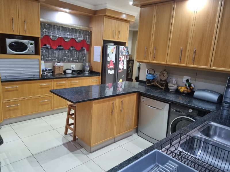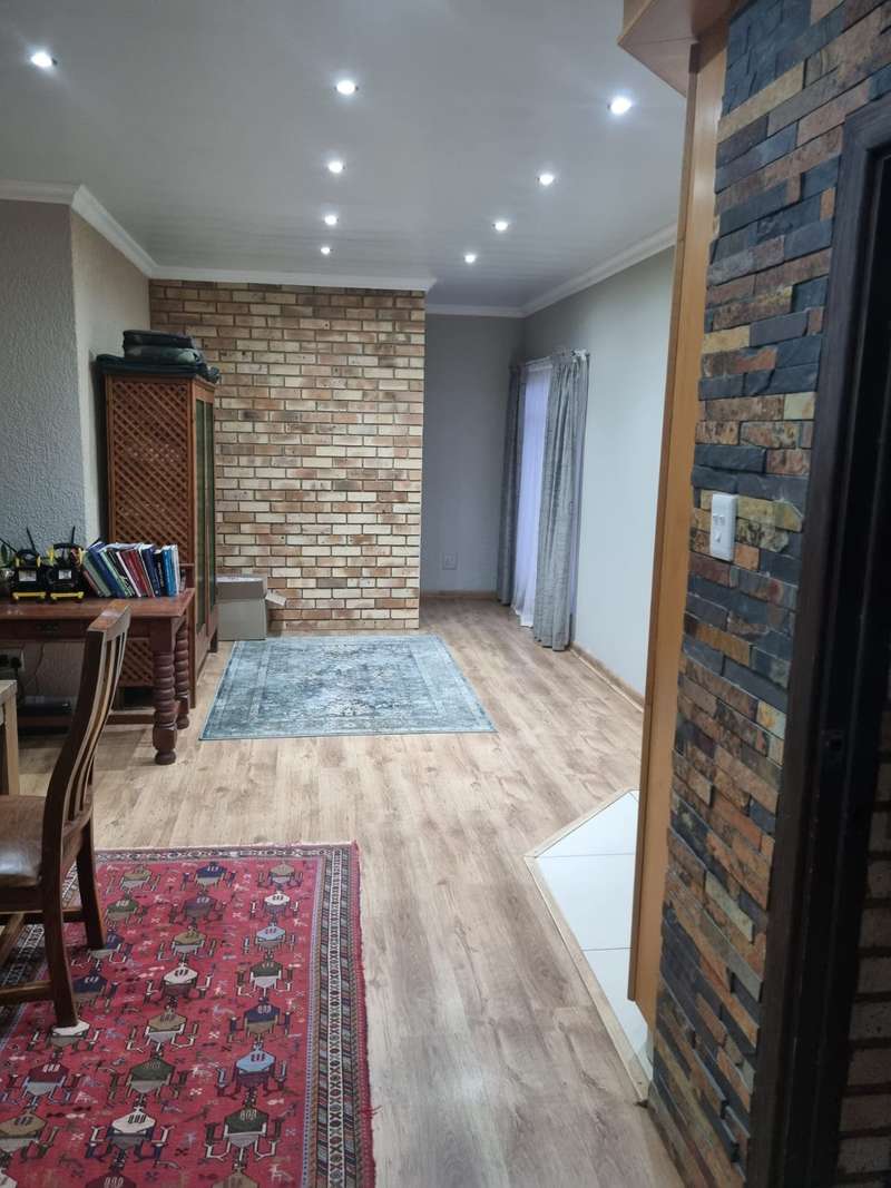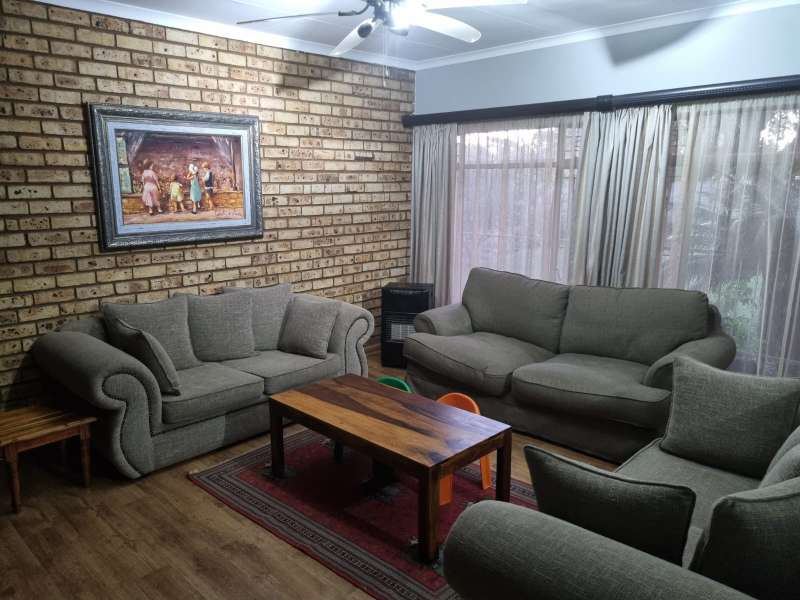 Family home situated in La hoff 3 Bedrooms with cupboards tiled floors 2 bathrooms main bedroom en suite shower basin toilet second bathroom bath basin and toilet beautiful spacious kitchen with cupboards gas stove with extractor fan lounge tiled floors dining room with tiles double garage double carport fenced bore hole with 2 jojo tanks call to view