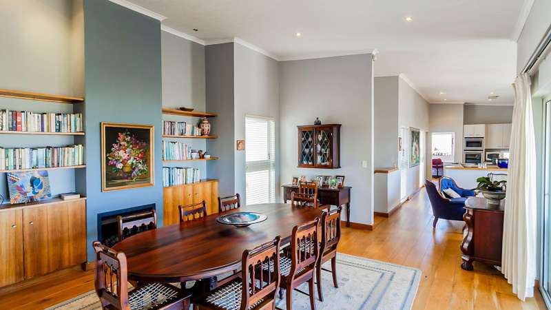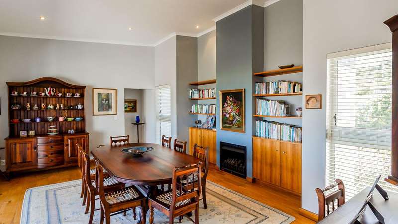 "Pleasure in the job puts perfection in the work." Aristotle JOINT MANDATE This beautifully designed family home offers generous living areas, quality finishes, and thoughtful features throughout?Çöperfect for comfortable living and entertaining. Downstairs, you?ÇÖll find a welcoming lounge area, two well-sized bedrooms, with a bathroom. The quiet study is ideal for remote work. A double, automated garage provides direct access into the home for added convenience, with an additional workshop space?Çöperfect for hobbies, storage, or DIY enthusiasts. Halfway up the beautiful wooden staircase there is a guest toilet for convenience. Upstairs opens into expansive light-filled spaces with large windows that frame beautiful views and create a warm, airy atmosphere. The open-plan family room features a built-in braai and sliding windows, ideal for year-round entertaining. The modern kitchen with pantry flows effortlessly into the dining area, complete with a cozy fireplace Off the kitchen is a versatile study or studio room?Çöperfect for creatives or those needing extra workspace. The main bedroom suite is a tranquil retreat, offering ample space, an en-suite bathroom with a luxurious free-standing bath, and sliding doors onto a balcony overlooking the garden. An enclosed patio area?Çöideal for enjoying morning coffee or a relaxing evening. Additional highlights include: A section of the indigenous fynbos garden enclosed, providing a secure space for pets. Engineered wooden flooring throughout, adding warmth and elegance. A central vacuum system, offering convenience and efficiency. This property blends practical family living with charming style and is ready for you to make it your own. Connect with me today an arrange your private viewing.