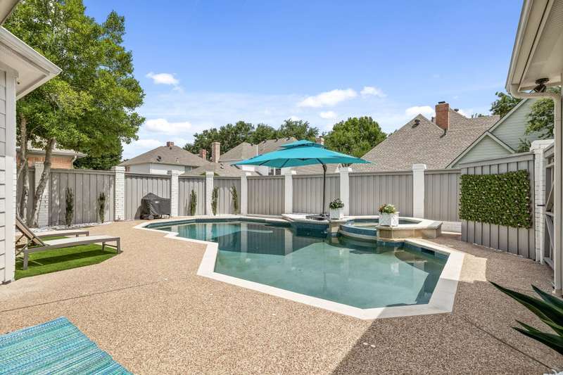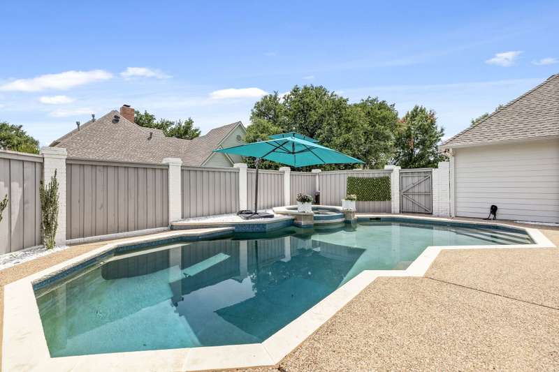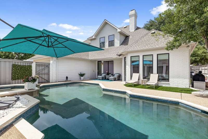 Stunningly Updated Modern Retreat tucked away on a quiet culdesac corner lot in the heart of Highly sought after West Plano! This beautifully updated home offers the perfect blend of timeless elegance and modern luxury. From the moment you arrive, the chic, repainted exterior and custom wrought-iron double doors set a sophisticated tone, welcoming you into a home where no detail has been overlooked. Step inside to discover a bright, open-concept layout filled with natural light, designed for effortless entertaining and comfortable everyday living. The fully renovated interior features wide-plank wood flooring, stylish fixtures, and a dramatic staircase with modern iron railings. At the heart of the home is the chefs kitchen, complete with sleek quartz countertops, custom white cabinetry, stainless steel appliancesincluding double ovensand an oversized island with bar seating. Whether hosting friends or enjoying a quiet night in, this space is as functional as it is beautiful.The home's smart split-bedroom layout provides privacy and flexibility. The luxurious primary suite offers a tranquil retreat, with a spa-inspired bath featuring updated finishes, dual vanities, a soaking tub and a frameless glass shower. Secondary bedrooms are spacious and well-appointed, with generous baths and storage. Outside, your private backyard oasis awaits. Enjoy a turfed play yard for fun and games with kids or pets, a shaded sitting area perfect for relaxing evenings, or host unforgettable gatherings in this thoughtfully designed outdoor retreat with a sparkling pool and spa that make every summer day feel like a vacation. Additional highlights include updated lighting, fresh paint throughout, and close proximity to Gleneagles Country Club, upscale shopping and dining, and top-rated Plano ISD schools. This is more than a homeits a lifestyle upgrade in every sense. Dont miss your opportunity to own this move-in-ready gem in an unbeatable location.