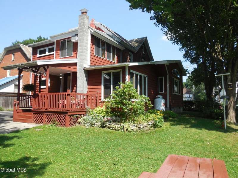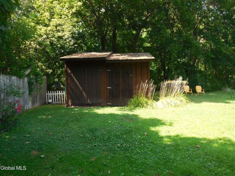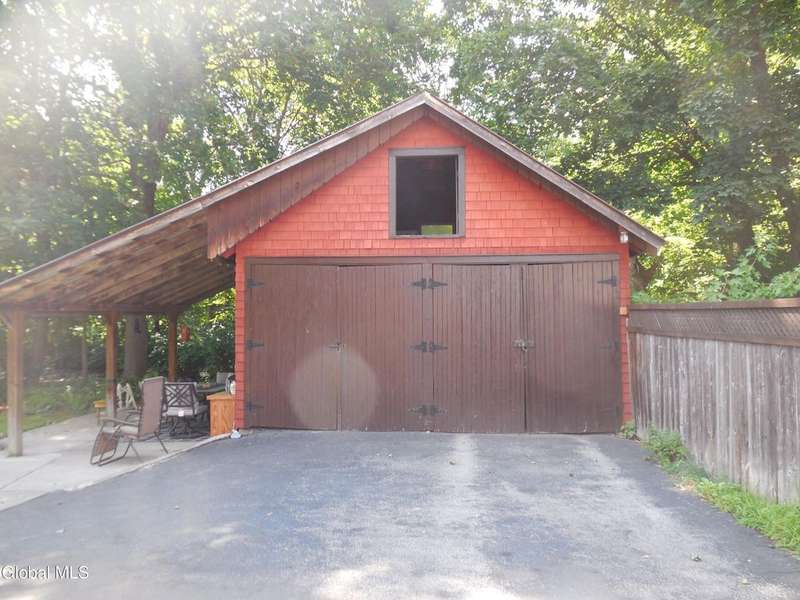 A rare opportunity. This brick home has been owned by the same family for over 53 years. The home has so much to offer with updated kitchen, a family room overlooking the beautifully landscaped yard, living room with a vaulted ceiling, 3 bedrooms, 2 full bathrooms and space for an office or 4th bedroom that is currently being used for a large walk-in closet. Outside there is a carriage house with loft area and outside sitting area to enjoy the babbling brook. There is a second garage with attached workshop and wood stove. This home has been well maintained throughout and is situated on a corner lot with a park like setting. A wonderful place to call home.
