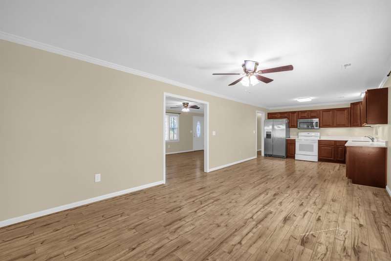 Convenient LOCATION ? one-level living at its finest at the Sedgefield Lakes lovely community! The spacious 4-bedroom, 2-bathroom home is very well-maintained and offers fresh paint, beautiful flooring throughout, quartz kitchen countertops, and rests on a substantial 0.91-acre lot, allowing for plenty of outdoor space and parking. Two detached garages provide enough storage and extra parking options. The backyard is a tranquil retreat perfect for enjoying peaceful moments in a quiet corner. It is an ideal location that allows you to be anywhere in a few minutes' driving. A must-see.