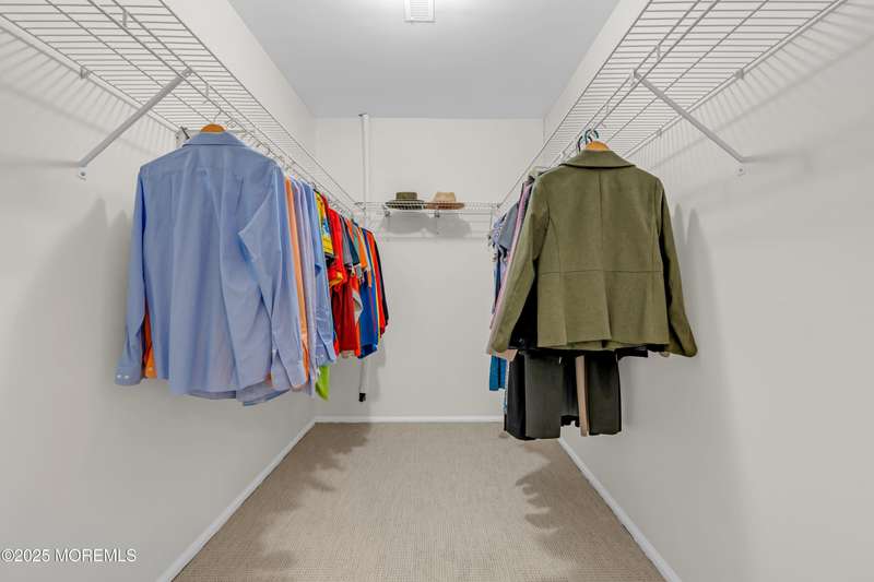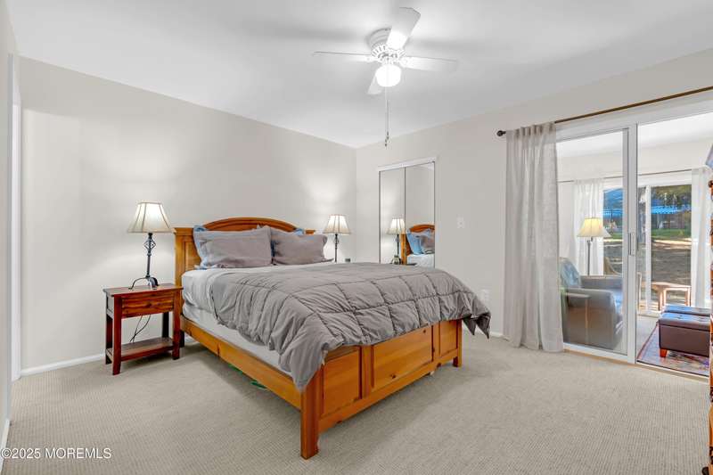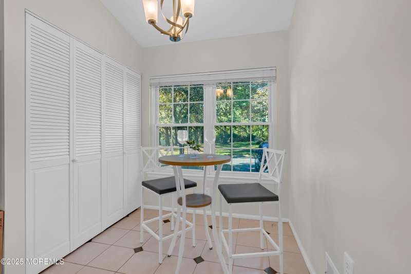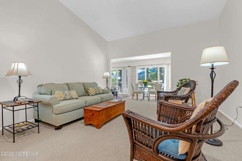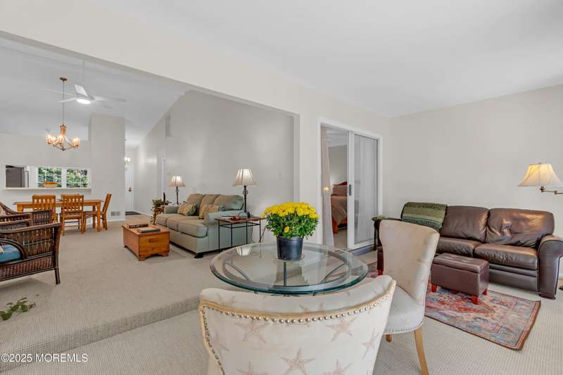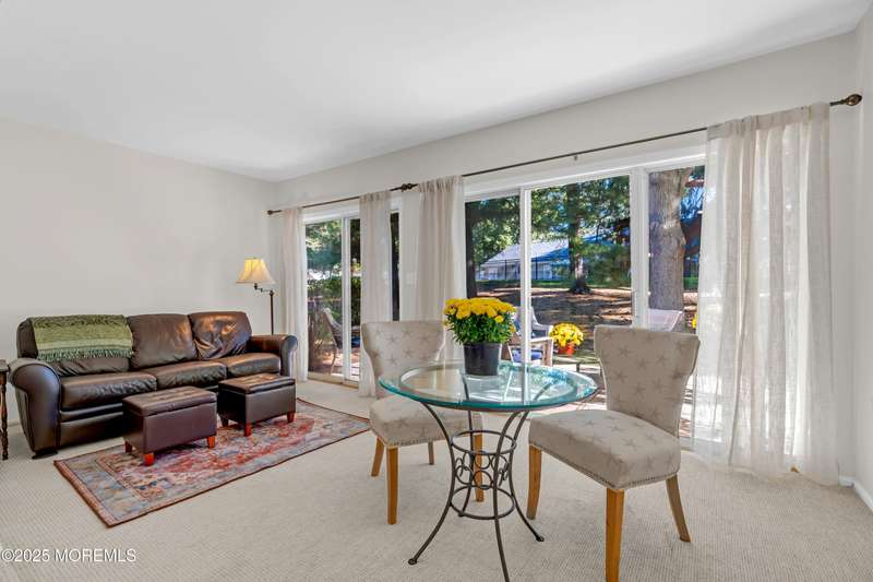 Prime 2 BR, 2 BA spacious end unit. Ranch style VILLA model, conveniently located near the clubhouse. Beautiful new wall to wall carpeting in the living room, bedrooms and closets. Freshly painted and move-in ready. Updated kitchen boasts new stainless steel appliances & an eat-in area. Light-filled sunroom with sliders offers seamless access to the rear patio, ideal for morning coffee or evening entertaining. The spacious primary suite features a large walk-in closet & an ensuite bath. Lots of storage including a huge walk-in closet off of the sunroom, a very large walk-up attic, that's tall enough to stand in, and a large storage area above the hall closet. On-site activities include pool, tennis, pickleball, bocce courts and a very large club room for socializing and entertaining. Easy access to the dining and entertainment of downtown Red Bank as well as nearby beaches. Convenient to GSP, trains, and buses. FYI, the color of the grass has been enhanced. The attic has approximately 132 total square feet of storage space and is 7.5 feet high at its highest point.