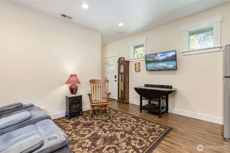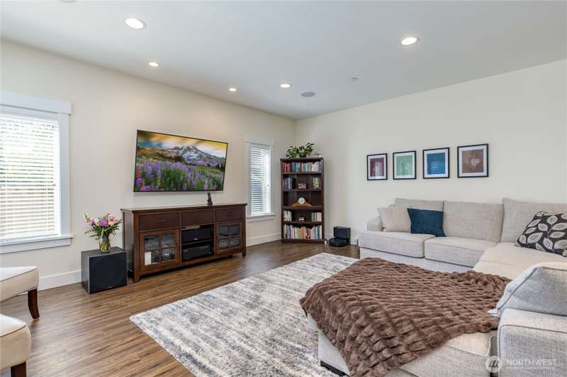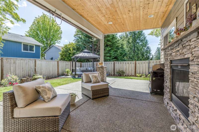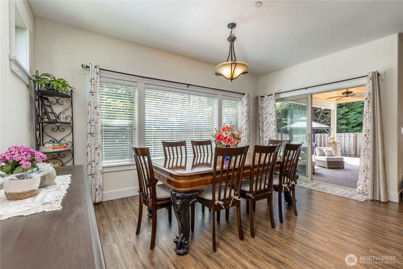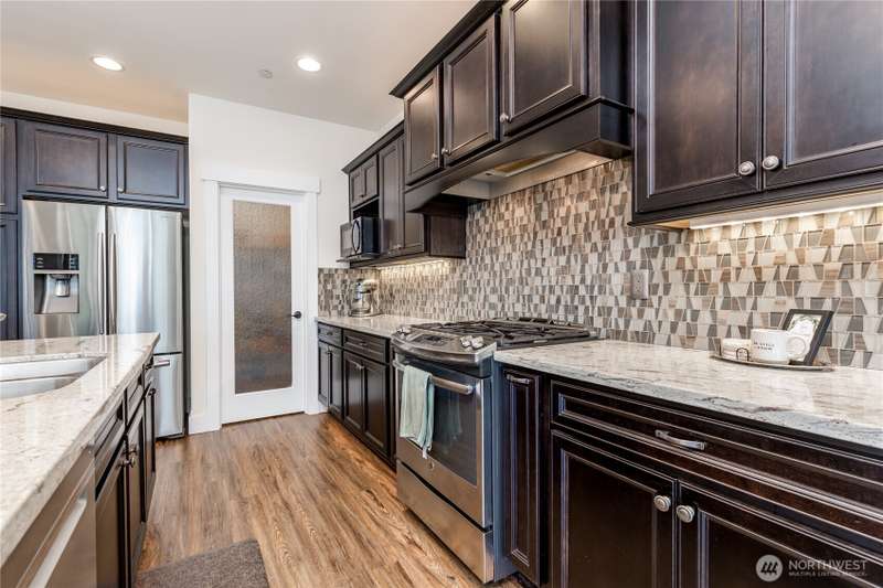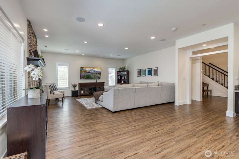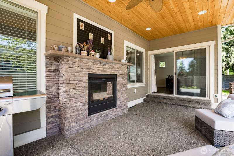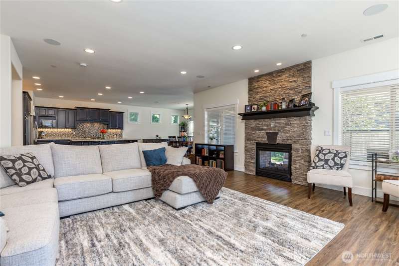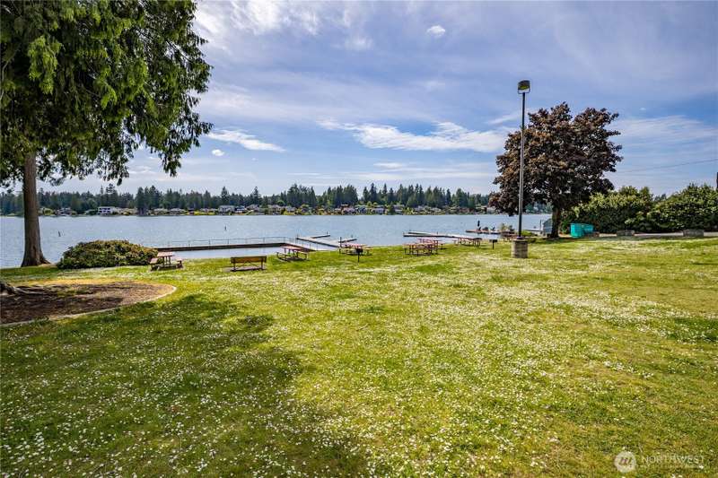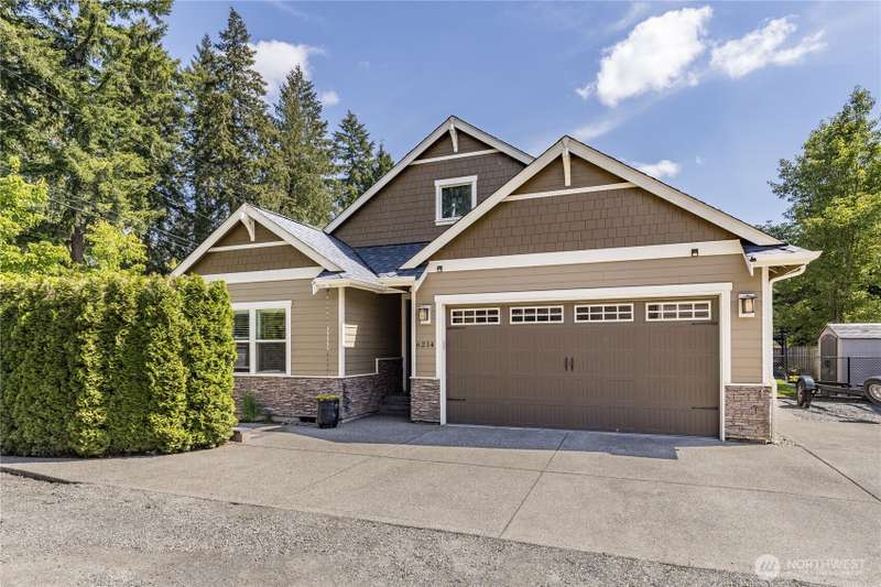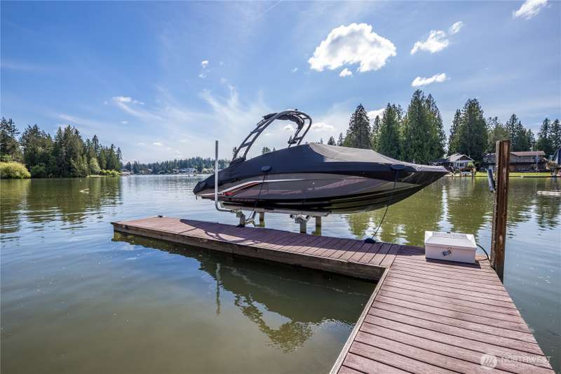 Enjoy lake living with your private dock & boat lift on beautiful Lake Tapps! Main floor 1-bed suite with private entry includes kitchenette, laundry & full bath. This stunning home features an open-concept design with a gourmet kitchen offering gas range, huge island & walk-in pantry. Entertain in the living area with surround sound & double-sided fireplace or unwind outdoors under the covered patio. Elegant finishes include wainscoting, designer tile, quartz counters, LVP flooring & luxurious primary suite. Fully-fenced yard has metal gazebo and newly refreshed landscaping. Central A/C, EV ready, 3-car garage, RV parking, wired for generator, plus Inlet Island park access (boat launch, playground, tennis & more) all in a great location!