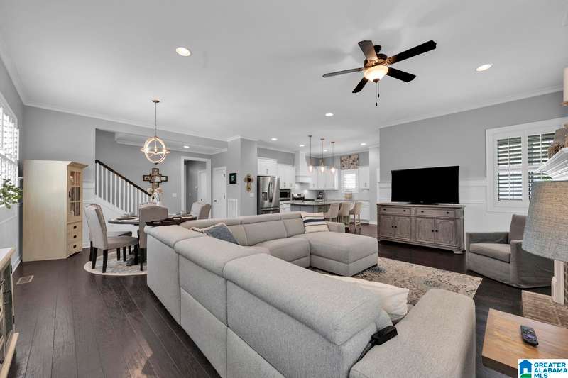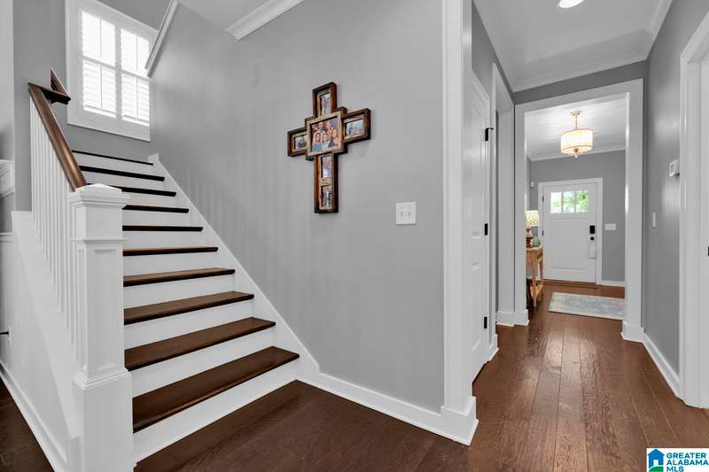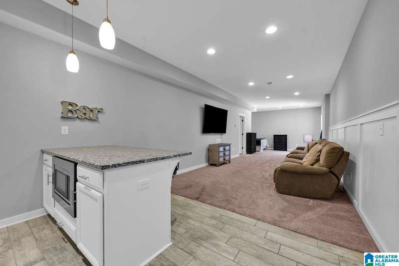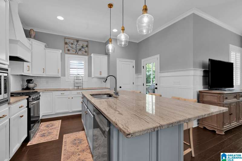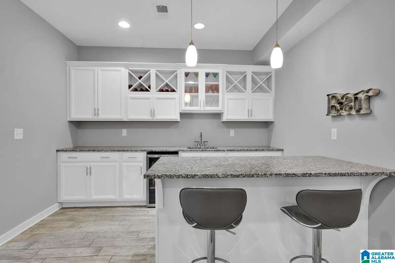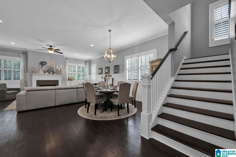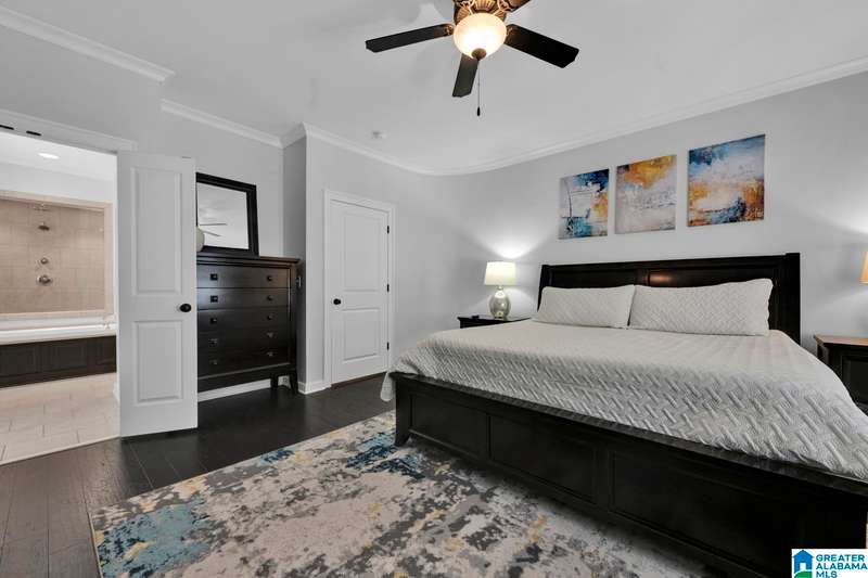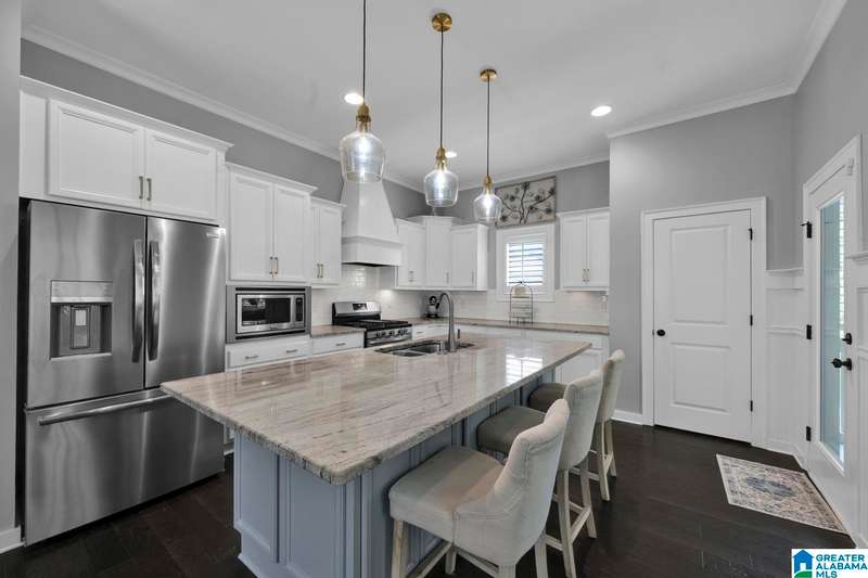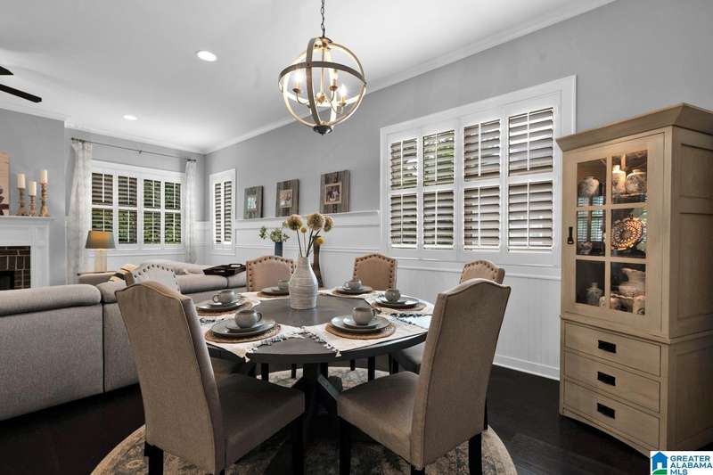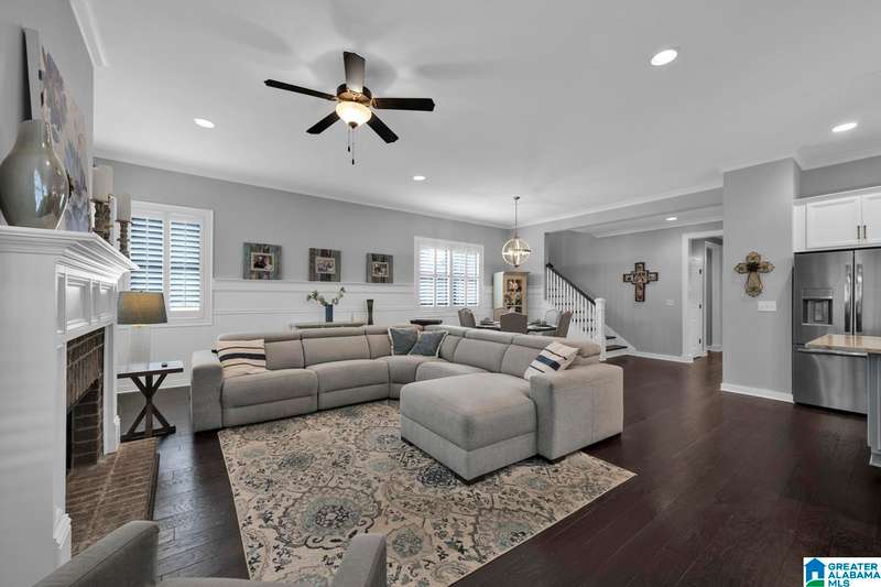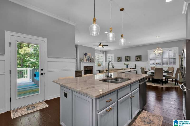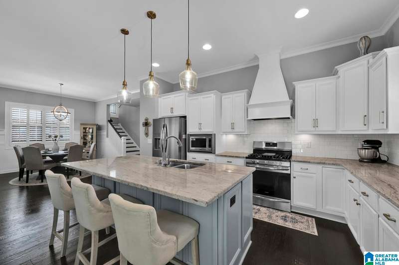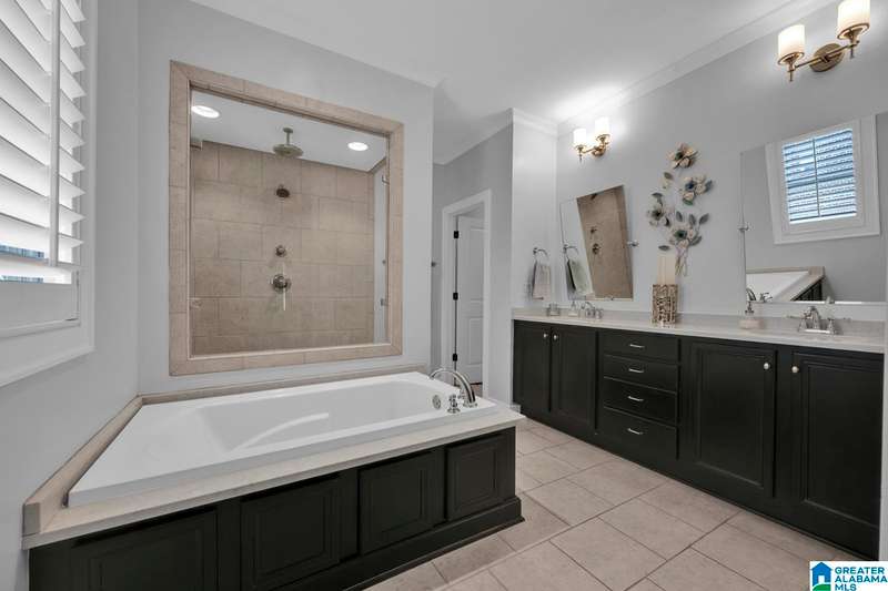 Nestled in the Hamptons neighborhood of Ross Bridge, this 5-bedroom, 5-bathroom home offers over 3,700 sq ft of luxurious living space, including a finished BASEMENT! The open-concept design connects the gourmet kitchen, expansive living areas & the serene outdoor spaces, ensuring both functionality & flow without sacrificing character. Hardwood floors, plantation shutters & designer lighting add to the home's charm. The Gournet Kitchen includes stainless steel appliances replaced in 2023, granite countertops, a gas stove & a generous island. The master suite features a newly enlarged walk-in closet & a spa-like bathroom with a soaking tub, separate shower & dual vanities. The FINISHED BASEMENT includes a large living space complete with a full bathroom, wine frig & microwave. Enjoy Alabama's beautiful weather on the COVERED DECK overlooking the private fenced in backyard. Living in Ross Bridge means more than just a beautiful home; it's a lifestyle.