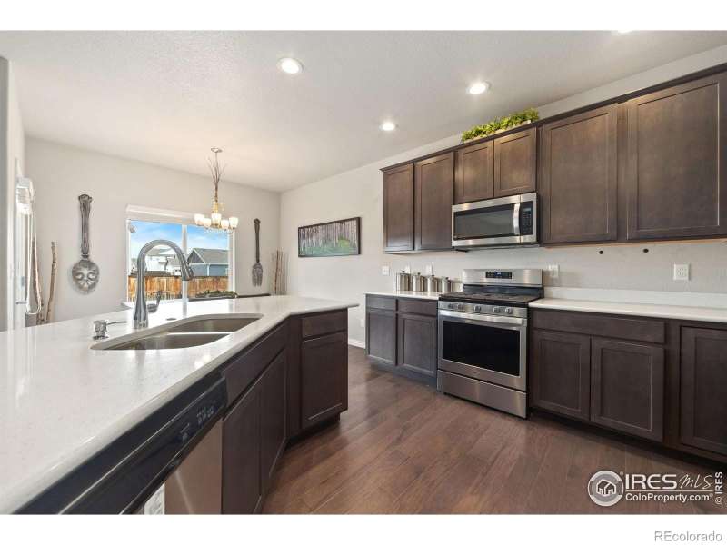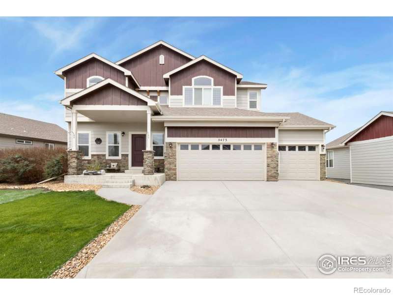 Welcome to this stunning 4-bedroom, 3-bathroom home with a 4-car garage for sale in Loveland, Colorado, built in 2020 and designed with modern living in mind. This spacious home features an open-concept floor plan, perfect for today's lifestyle, with stylish finishes and flexible spaces throughout. On the main floor, you'll find a private home office/study, ideal for remote work or a quiet retreat. The bright and inviting living room flows seamlessly into the gourmet kitchen, showcasing abundant cabinetry, sleek countertops, and a large center island that's perfect for entertaining or casual family meals. Upstairs, the oversized primary suite serves as a true retreat with a spa-inspired en-suite bathroom featuring dual vanities, a soaking tub, and dual walk-in closets. Three additional bedrooms provide plenty of space for family, guests, or hobbies. The unfinished basement offers endless potential for future expansion, storage, or a custom-designed living space. Car enthusiasts and hobbyists will love the rare 4-car garage-with space for three vehicles plus a tandem bay that's ideal for a workshop, storage, or recreational equipment. Outside enjoy your beautifully landscaped backyard oasis, complete with both covered and uncovered patio areas, perfect for outdoor dining, entertaining, or simply relaxing. The charming covered front porch is perfect for enjoying peaceful mornings. Even better-a hot tub is included!