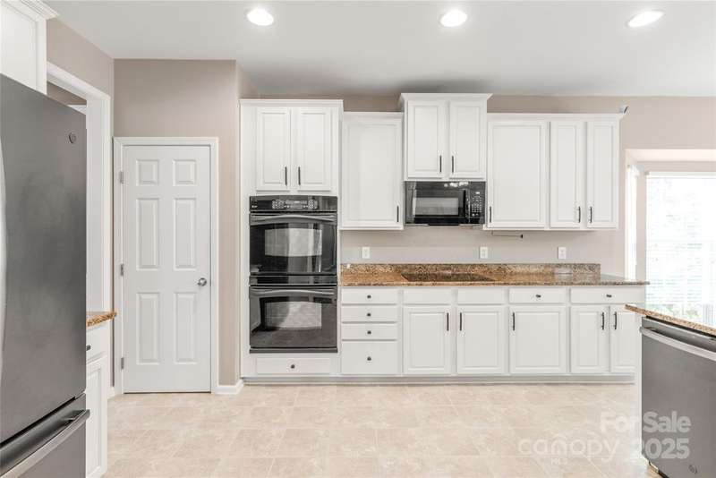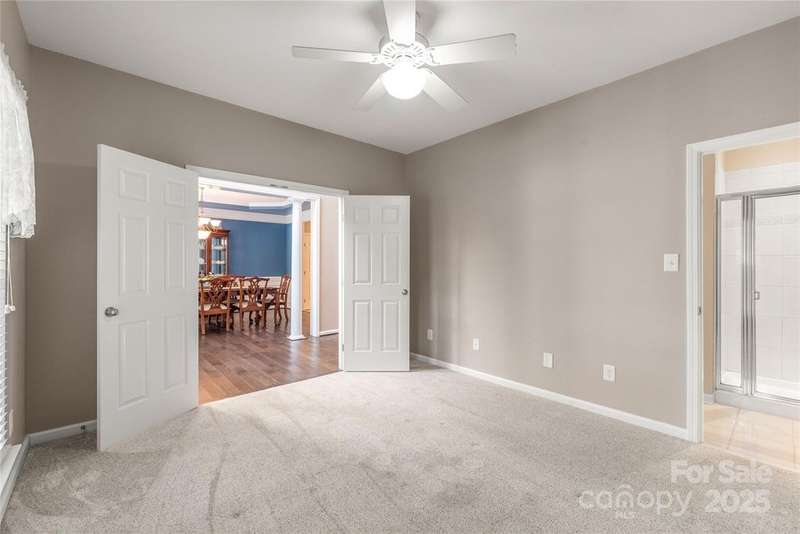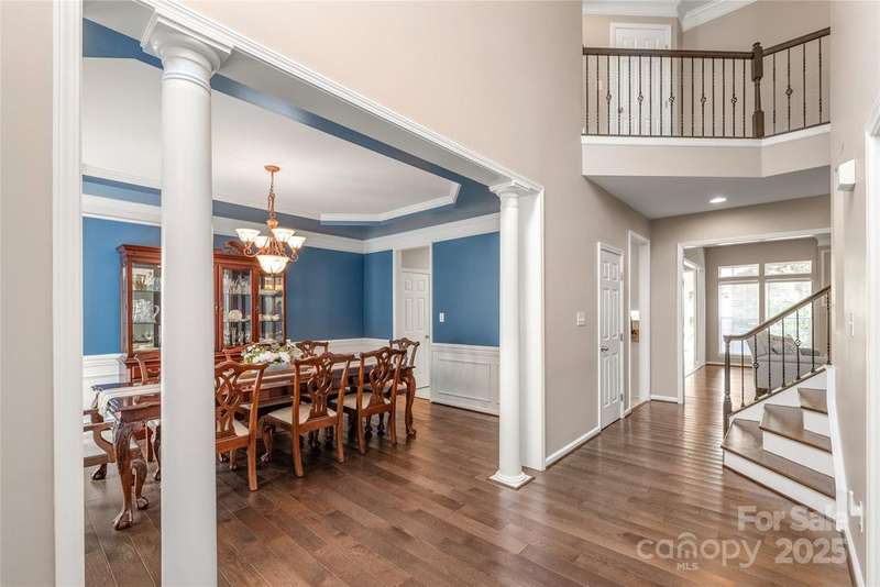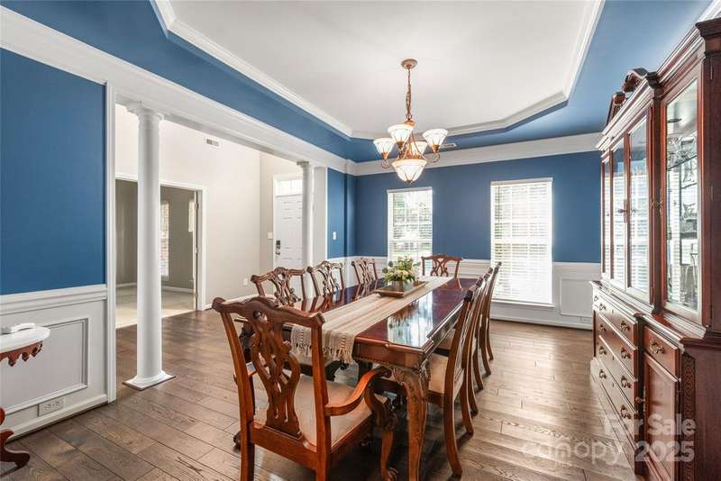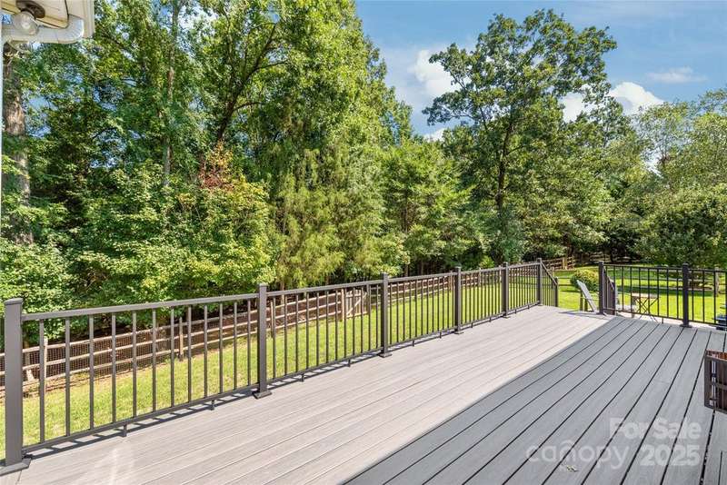 Welcome to Canterbury Place! This stunning 5-bedroom, 4-bath home sits on a premium lot backing to a private tree preserve. The open floor plan includes a dining room, office, and a main-level owner's suite with two walk-in closets and a spa-like bath. The kitchen features all appliances, and upstairs you'll find a large bedroom with an attached bath along with generous storage. Recent updates include a new roof (2025) and new hardwood floors on the main level. Additional highlights include a tankless water heater, whole-house water filtration system, smart home security, a finished 3-car garage with shelving and a 30-amp outlet. Outdoor living is enhanced with a composite deck, stamped patio, covered front porch, irrigation system, and an extended driveway. Conveniently located near schools, shopping, dining, and interstate access, this home combines comfort, style, and function in an unbeatable location.