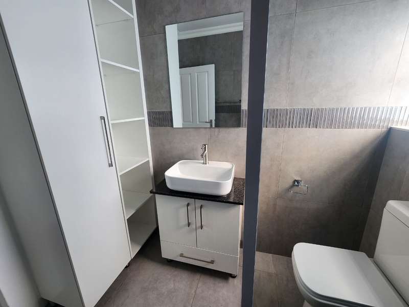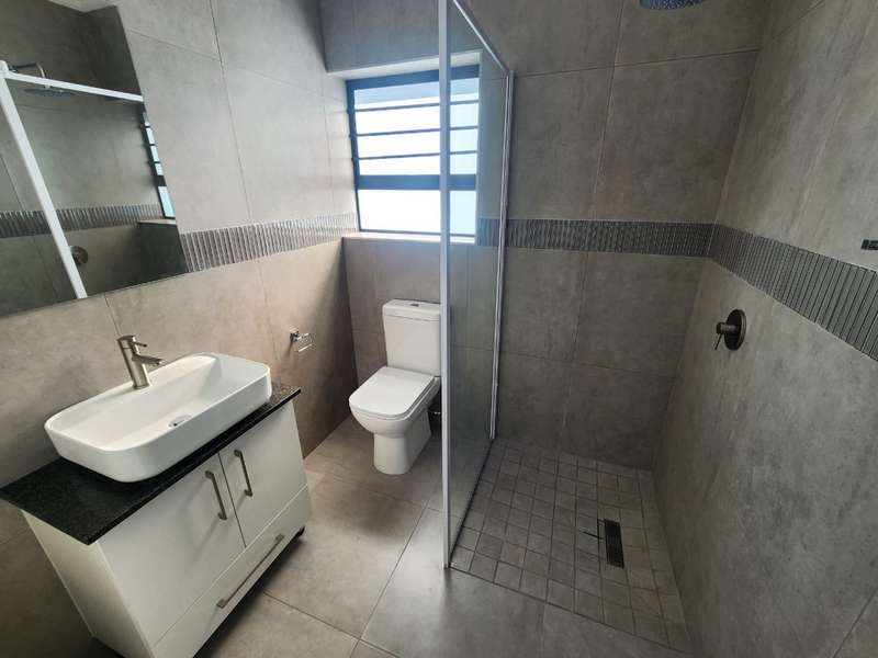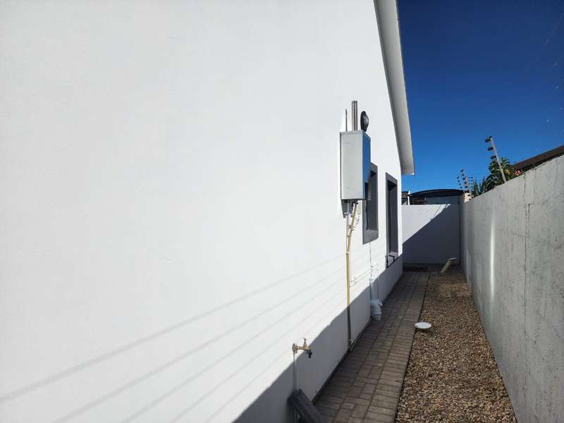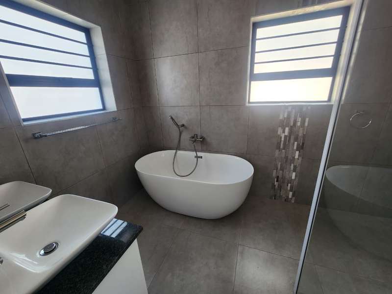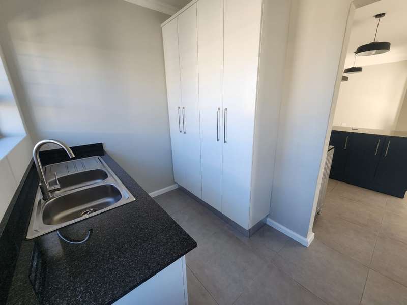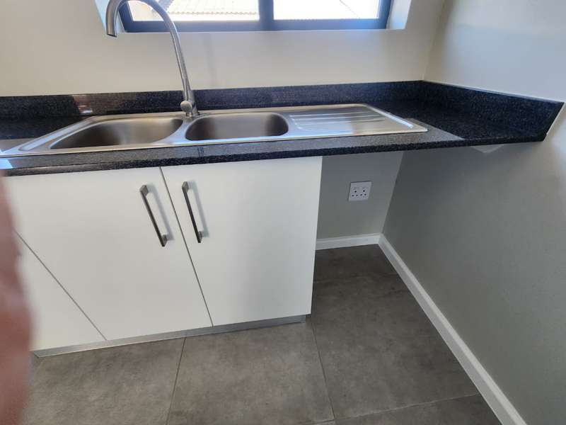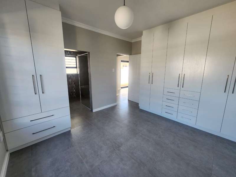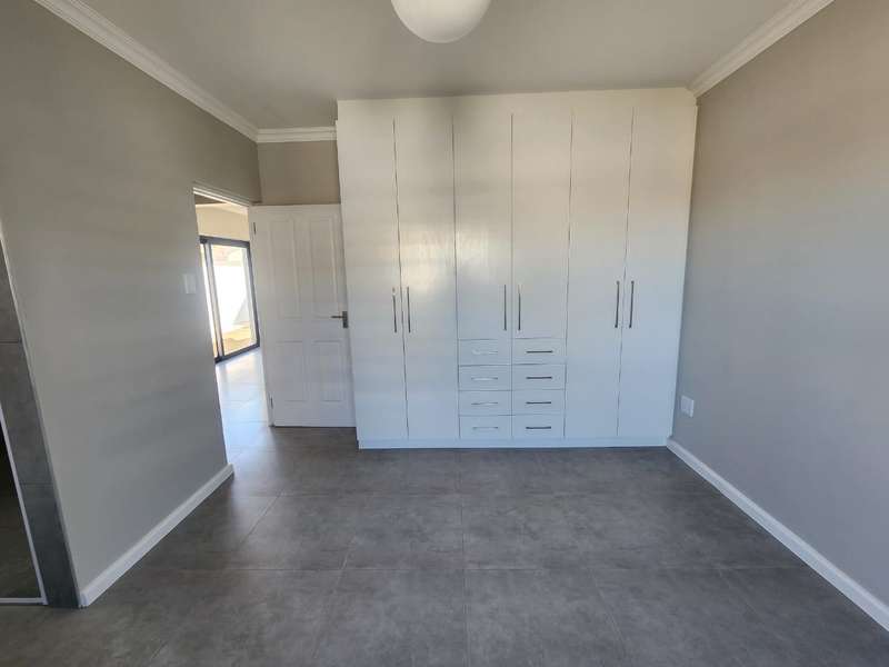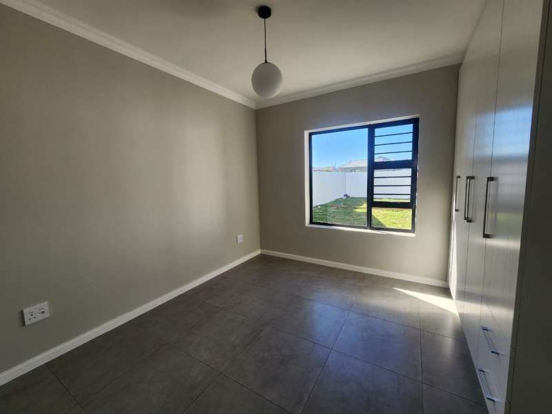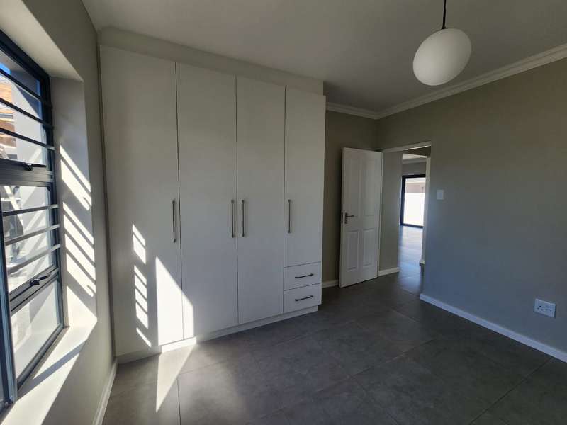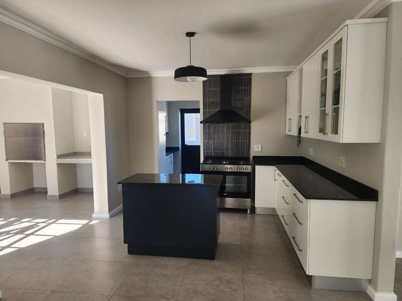 Newly built family home in Fountains Estate with approved building plans, occupation certificate and NHBRC certificate. Enter this airy open plan lounge, dining and kitchen area. The kitchen has a movable island, gas stove top (Defy) and separate scullery with connections for dishwasher and washing machine. The kitchen leads to the entertainer’s area with built in braai, opening onto a sunny patio with pergola. This area also gives direct access into the double garage with automatic doors. The house has three spacious bedrooms all have built-in cupboards and the two modern bathrooms. The main bedroom has an en-suite bathroom. The house is fully walled, has a gas geyser, water tank and burglar bars. This new house will sell quickly, act soon!