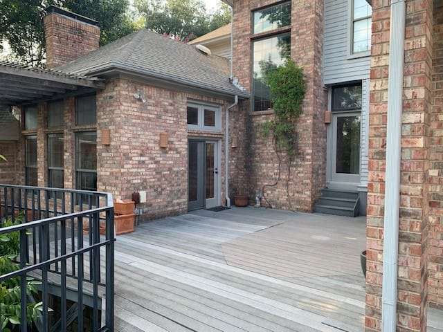 Hard to Find ZERO-LOT-LINE property designed with large room sizes . This One Owner, Custom Built Home features big windows viewing a wooded greenbelt landscape. Tall ceiling in most rooms plus a wonderful banquette seating breakfast room with easy access to the patio and deck area. The Open Flexible-Use Floor plan includes a large Living-Den, Formal Dining, Kitchen and Breakfast Bar area at the kitchen peninsula. The Primary Suite and a Second Bedroom are both located on the first floor level. Upstairs features a huge Game room with quality built- ins. The 3rd Bedroom is also located upstairs with a private bath. A separate Study-Desk area is located next to the game room. This heavy duty Pier & Beam foundation was engineered for this particular lot with 30 ft piers. See photos