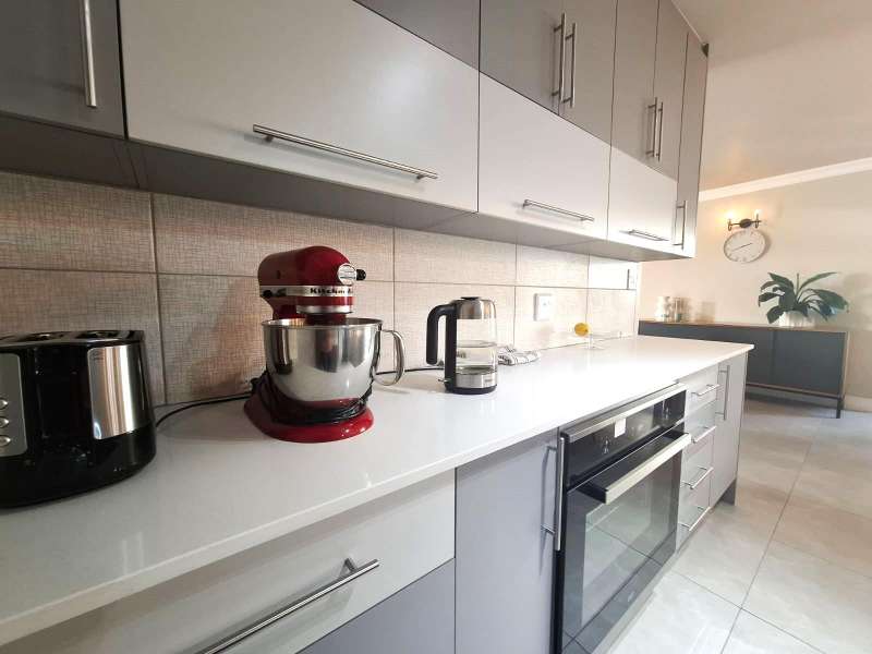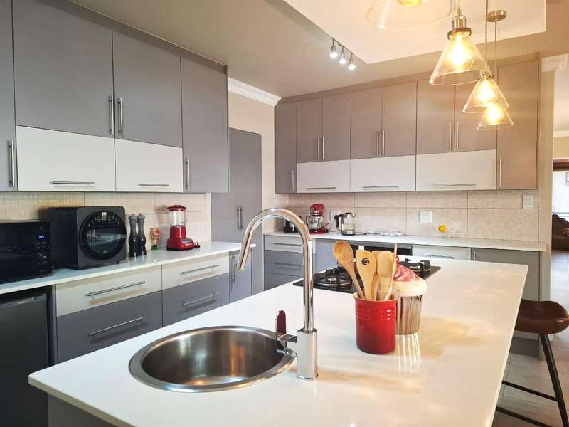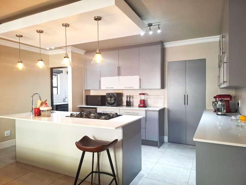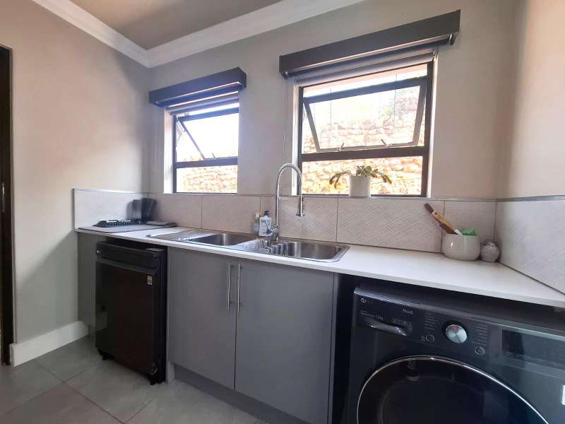 MODERN LUXURY | SECURE ESTATE | BEN FLEUR | 621m?? Step into elegance with this flawless 4-bedroom home in one of Ben Fleur?ÇÖs most sought-after secure estates. Boasting 470m?? under roof on a 621m?? stand, this residence combines sophistication, space, and practical design ?Çô perfect for the modern family. Interior Highlights: ?Çó Grand entrance: Double-volume hall with a sparkling chandelier and light, neutral tones. ?Çó Open-plan living: Spacious lounge, dining room, and a show-stopper kitchen with grey and white cabinetry, white granite tops, island with gas stove, modern lighting, walk-in pantry, plus separate scullery & laundry. ?Çó Guest suite: Ground-floor bedroom with aircon, stack doors to the garden ?Çó Private guest toilet. Upstairs retreat: o 2 generously sized bedrooms with abundant built-in cupboards. o Full family bathroom + additional guest toilet. o Main suite with breathtaking views, walk-in closet with dresser/office nook, and a luxurious ensuite featuring a freestanding bath, his & hers basins, and large shower. Outdoor & Lifestyle Features: ?Çó Small but beautifully landscaped garden with irrigation and ClearVu fencing (ideal for pets). ?Çó Carport + double automated garage. ?Çó Roll-door storage container and storage room. ?Çó 150L electric geyser (mounted outside). ?Çó 4 x 1000L JoJo tanks. Security & Convenience: ?Çó Solar system with 2 inverters & 5 batteries for uninterrupted power. ?Çó Full security setup: electric fencing, outside beams, alarm system. ?Çó Wifi internet access with LAN cables installed in upstairs rooms. Location: Within a prestigious, secure estate in Ben Fleur ?Çô close to schools, shopping centres, and main routes. This home is the perfect blend of modern elegance, functionality, and peace of mind. Book your private viewing today and experience the lifestyle you deserve!