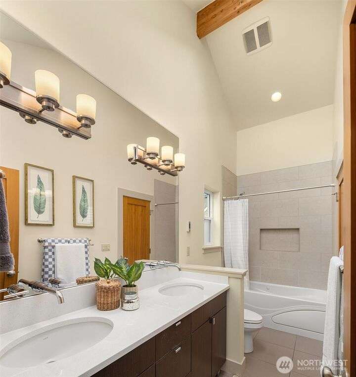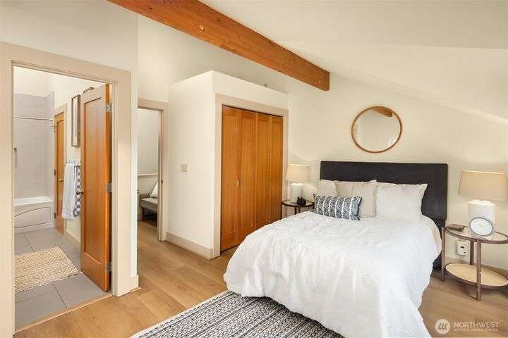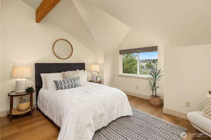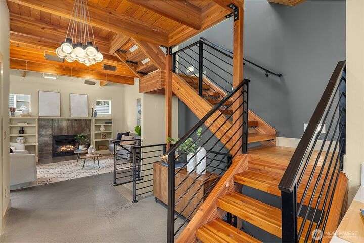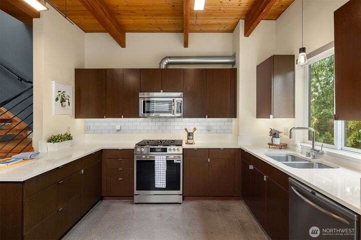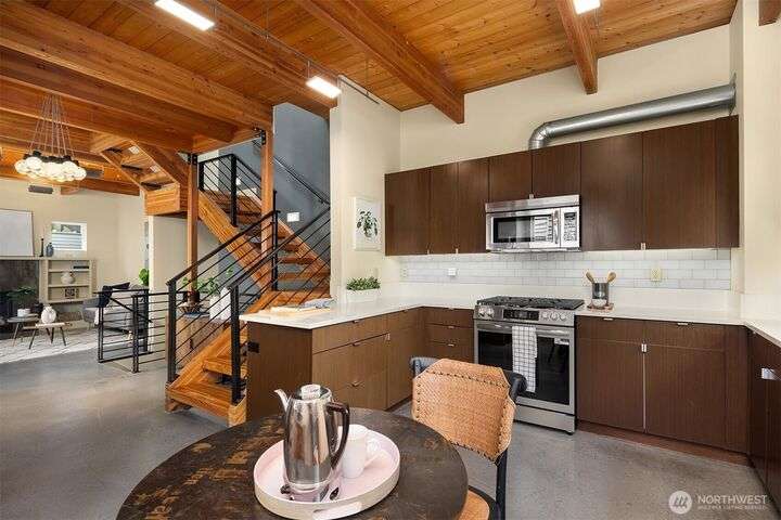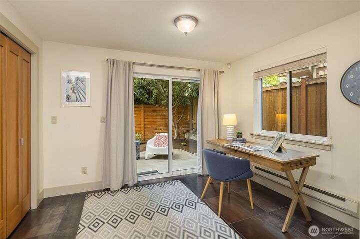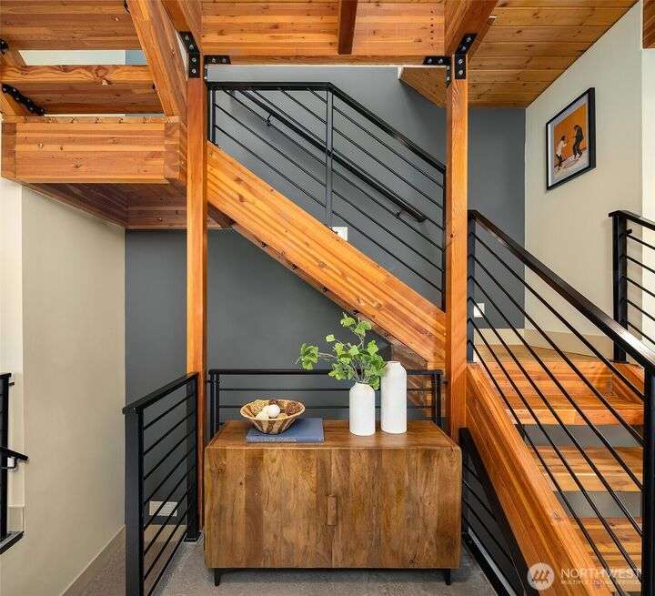 Located in the desirable Wallingford neighborhood. Close to excellent schools, parks, area restaurants, coffee shops and convenient access to downtown. Walk score of 88. Built in 2008, this townhome features an open floor plan, 10’ exposed beam ceilings, radiant heated concrete floors, gas fireplace and an open wood staircase with custom metal railings. Generous size kitchen with custom wood cabinets, quartz counters and stainless-steel appliances. The upper-level features two good size bedrooms with vaulted ceilings and a spacious full bath with jacuzzi tub. Lower level features a den/office space with slider access to rear yard and access to one car garage with extra storage. Private, fenced rear yard with entertainment size patio.
