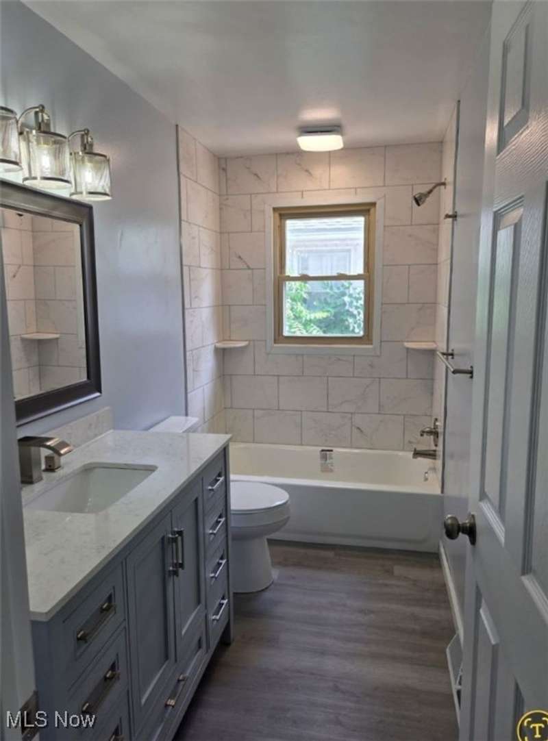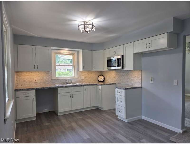 The fresh smell of newly painted walls and brand new carpeting is a great way to be introduced to this newly remodeled turn-key ranch home that underwent some major improvements just over the past 4 months, inside & out. So much has been done throughout, its basically like NEW CONSTRUCTION. The spacious eat-in kitchn and main bathrm were both gutted with all new plumbing, electrical, light fixtures, & vinyl plank flooring installed. The kitchn is bright, has soft close cabinets w/undercabinet illumination, laminate countertops, tile backsplash, and a SS over-the-stove microwave installed too. The gorgeous main floor bathroom has an extra wide single sink vanity w/ solid surface countertop, new toilet, tub/shower combo w/tile surround. A large picture window brightens the living room with all new carpeting, a decorative glass front door & ceiling fan/light. All 3 bdrm's have plush new carpeting, new light fixtures and new closet doors. The Master bdrm has an exterior door that leads out to the back yard too. The bsmt floor & walls have been freshly painted for extra living space, with glass block windows to help bring in the natural light, and the convenienience of a second remodeled full bathroom too. The utility area has an electric dryer power source and a large double sink stationary tub. The back door steps were recently rebuilt and a new motion sensor flood light installed. Other noteworthy improvements include a brand new garage man door (Oct 2025), Central Air unit (July 2025), Hot water tank (2019), Furnace (2016), All new windows throughout & Vinyl siding (2015), the concrete driveway was replaced (2017), The oversized 1-1/2 car detch'd garage door was replaced in 2017, the roof is approx 17yrs old, and the entire first floor was just recently painted too. This home is in a convenient location, just minutes from the highway, I-480, a variety of shopping amenities and restaurants. Has very affordable utilities, & easily maintained. NICE!