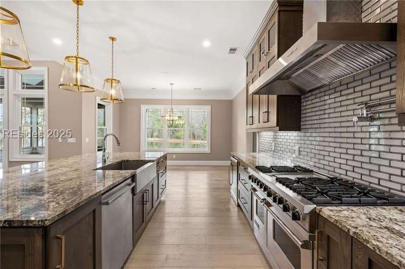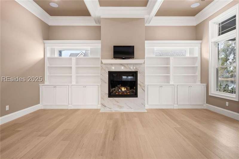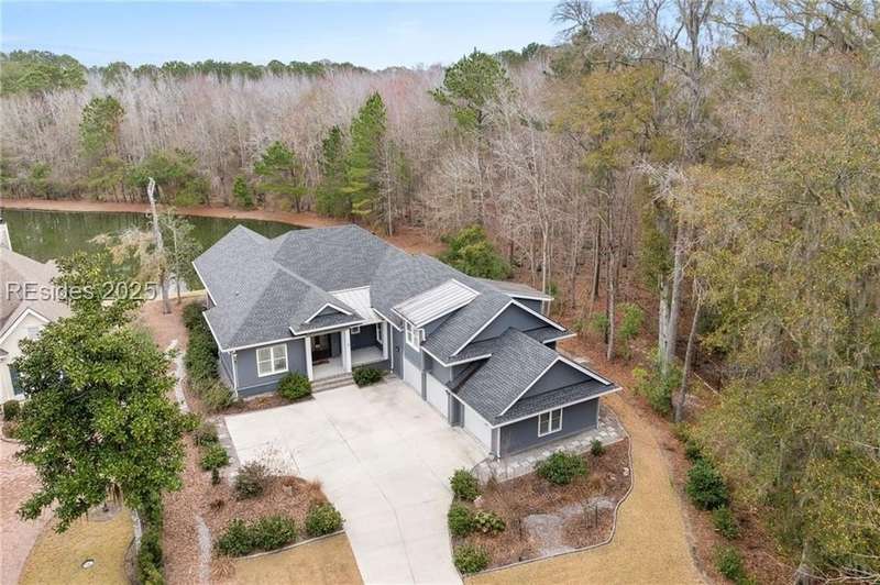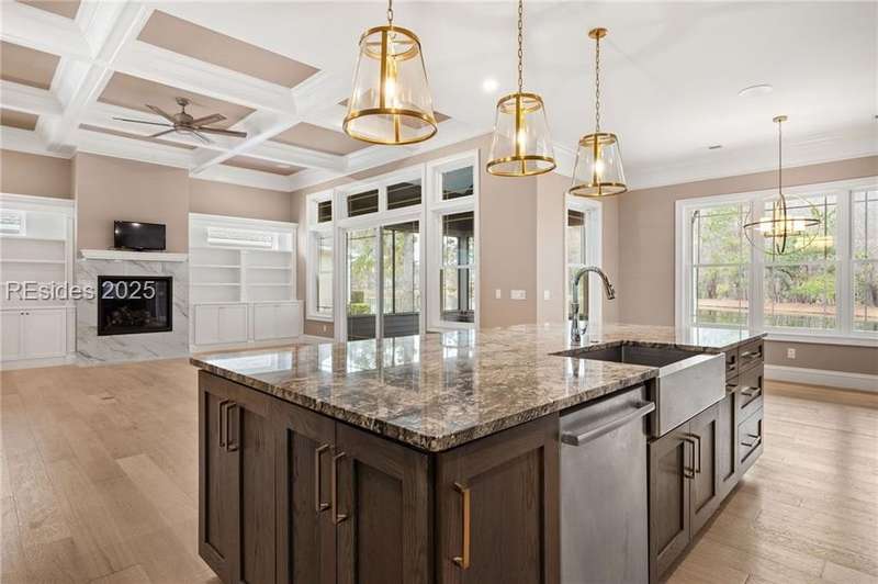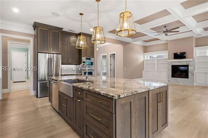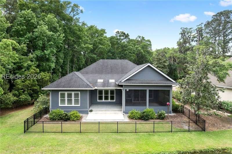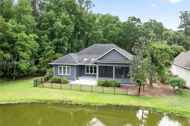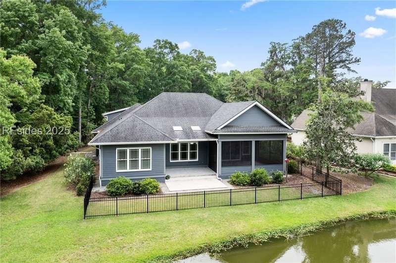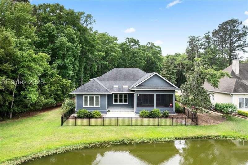 BETTER THAN NEW! Built in 2020 and now upgraded with custom, high-design finishes. Seamlessly, flowing, open-concept design features 10 ft. coffered ceiling, 5-piece crown trim, white oak wood floors, 8 ft. doors, and built-ins flanking gas fireplace with heat efficiency blower. The chef's kitchen is equipped with Viking and Bosche appliances, pot filler, huge island for laid back entertaining and seating. Walk-in pantry w/ built-ins, big laundry w/sink, storage galore. Over-sized, covered screen porch, New FENCED IN back yard! 3 car AC garage. Beautifully set back on end of cul-de-sac street with nature filled long lagoon views.