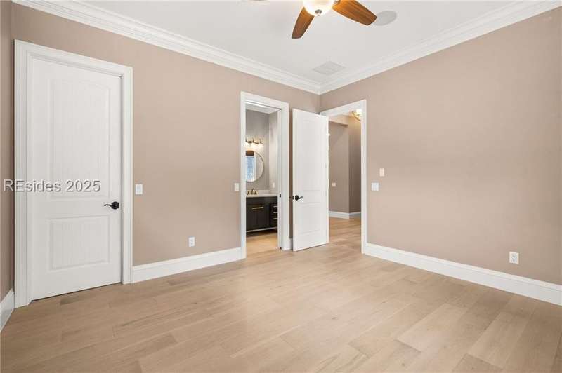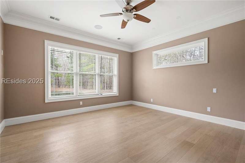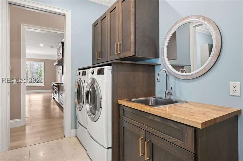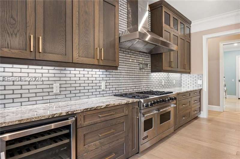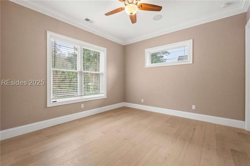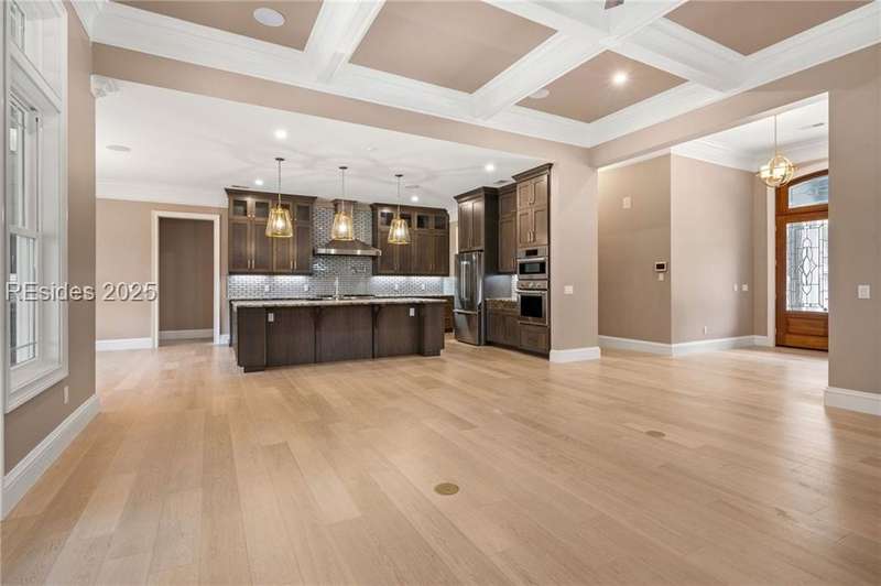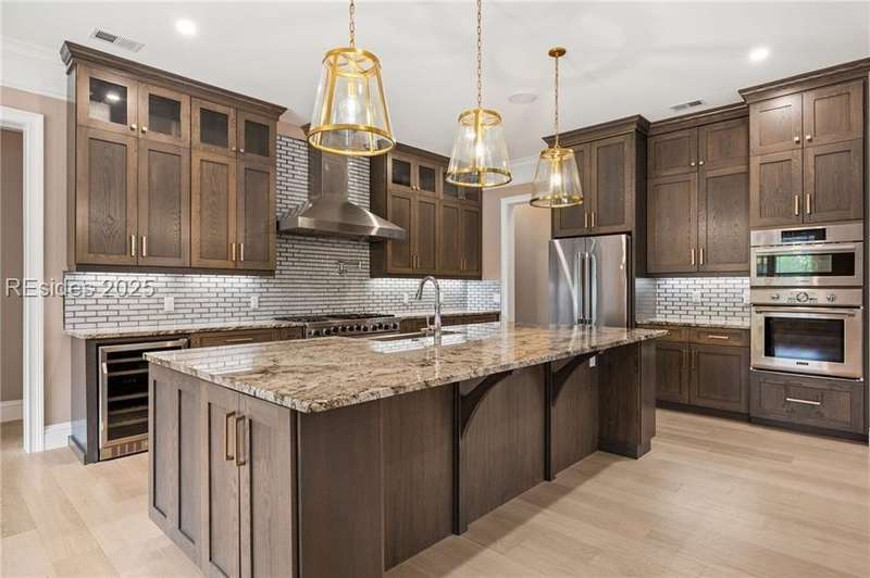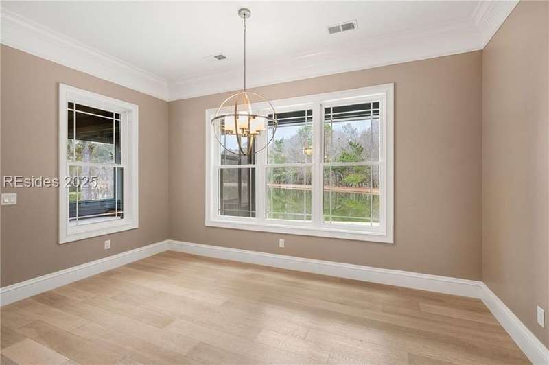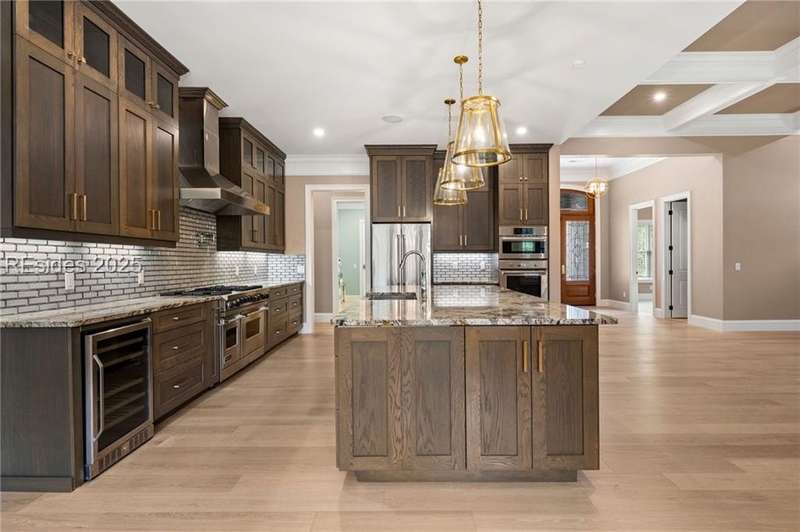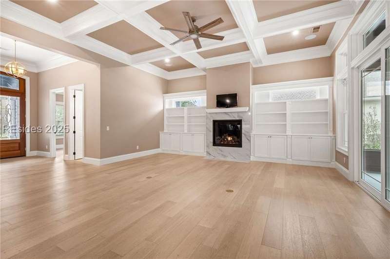 BETTER THAN NEW! Built in 2020 and now upgraded with custom, high-design finishes. Seamlessly, flowing, open-concept design features 10 ft. coffered ceiling, 5-piece crown trim, white oak wood floors, 8 ft. doors, and built-ins flanking gas fireplace with heat efficiency blower. The chef's kitchen is equipped with Viking and Bosche appliances, pot filler, huge island for laid back entertaining and seating. Walk-in pantry w/ built-ins, big laundry w/sink, storage galore. Over-sized, covered screen porch, New FENCED IN back yard! 3 car AC garage. Beautifully set back on end of cul-de-sac street with nature filled long lagoon views.
