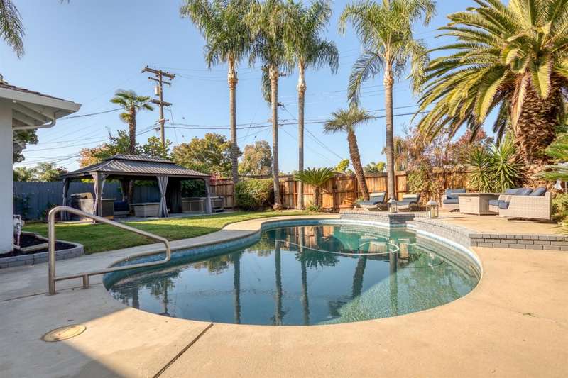 FABULOUS PRICE ADJUSTMENT!!! This charming single-level Sherwood Manor home offers four bedrooms and two and a half bathrooms, with 1,882 square feet of thoughtfully designed living space. It features two fireplaces, perfect for cozy evenings or entertaining guests. Recent updates enhance its appeal, including a renovated kitchen, upgraded bathrooms, and new windows. Beautiful hardwood floors run throughout the home, adding warmth and elegance. Located within walking distance of restaurants and shopping, the property also boasts a stunning pool set in a large, beautifully landscaped 10,000-square-foot lot with a spacious covered patioideal for outdoor enjoyment.