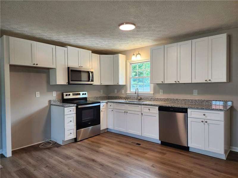 Welcome to 43 Creek Bank Road! This delightful home offers the perfect blend of cozy living and serene natural beauty. Nestled on a peaceful lot in Aragon, this two-bedroom, one-bathroom cottage is an ideal starter home, a perfect downsize, or a wonderful retreat property. Step inside to a bright and inviting living space that flows seamlessly into the eat-in kitchen. The kitchen is ready for your personal touch, with ample cabinet space, granite counter tops with a functional layout. Both bedrooms are comfortably sized, providing a quiet retreat at the end of the day . Enjoy your morning coffee or evening relaxation, in the backyard overlooking a tranquil creek. The lush backyard is perfect for gardening, playing, or simply unwinding in nature. Located in the friendly community of Aragon, this home offers a peaceful rural feel while being just a short drive from local amenities, parks, and schools. Welcome home!