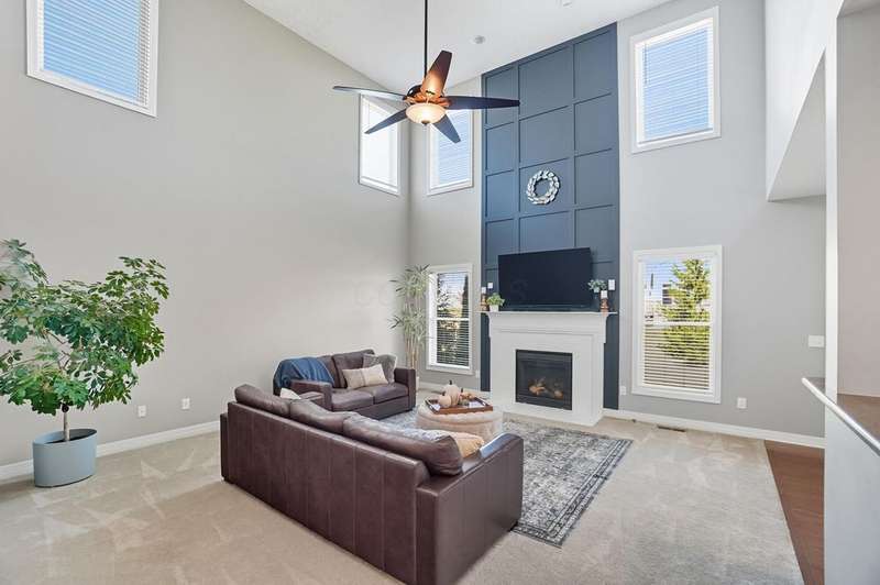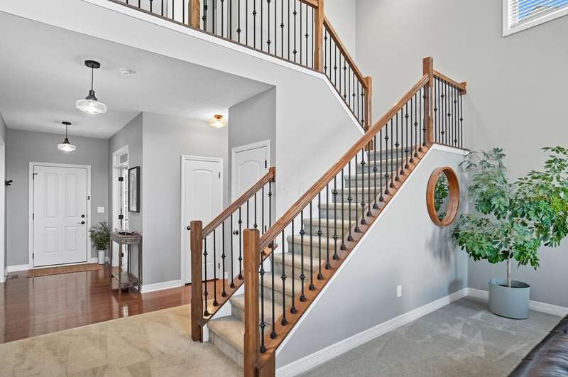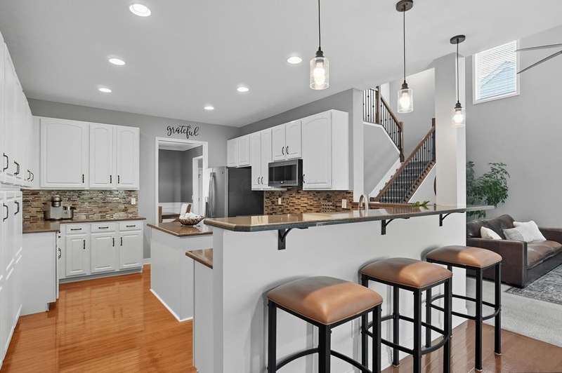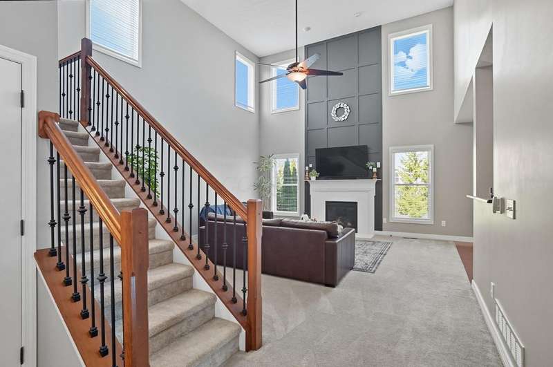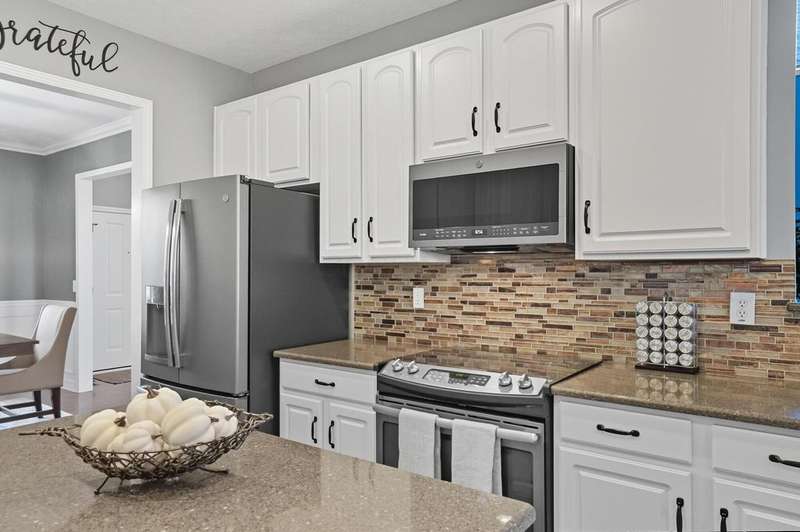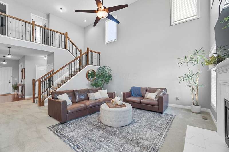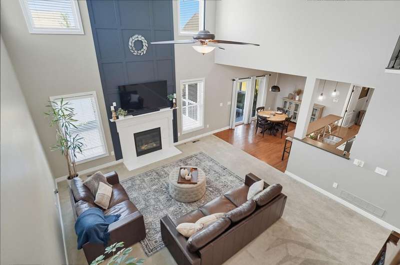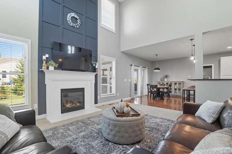 Welcome to this beautiful 4 bedroom, 2.5 baths open concept home with soaring cathedral ceilings! The home is conveniently located in a nice community with a pool, basketball courts, park sidewalks and schools. The home suits today's lifestyles! It offers high end finishes throughout, including hardwood floors., custom woodwork, built ins, glass tile backsplash, granite counters in kitchen & baths, an extra deep garage and a full basement which is already plumbed for a bath. The main level includes a den with built in desk and bookshelves, dining room with wainscoting and crown molding & a two-story great rm. with a feature wall and gas log fireplace. The kitchen offers tons of storage and counterspace along with a center island, granite countertops, new dishwasher, glass tile backsplash and slate appliances. A first-floor utility room too.The upstairs offers a versatile large loft which could be another home office or place to relax. There are 4 bedrooms and 2 full baths. The owner's suite has vaulted ceilings, a deluxe bath with a shower, soaking tub, double sinks and a walk-in closet. The other rooms are a nice size with excellent closet space. The full basement has sturdy built in shelves and tall ceilings with plenty of potential for additional finished space. It currently is being used daily for a play area, workout area and TV room. Outside enjoy the newly screened in porch, brick paver patio and the spacious yard!
